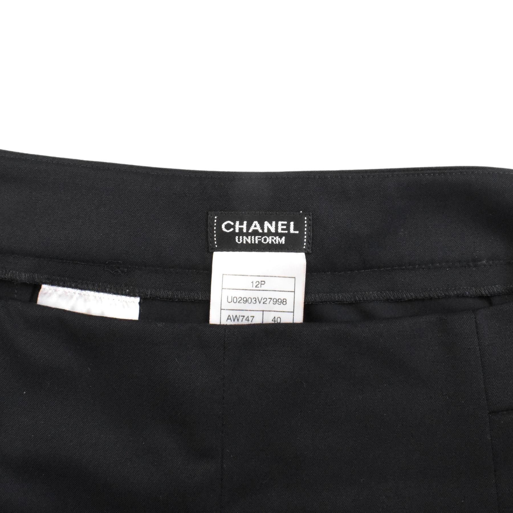 Chanel Uniform black straight-leg trousers with a side zip closure.