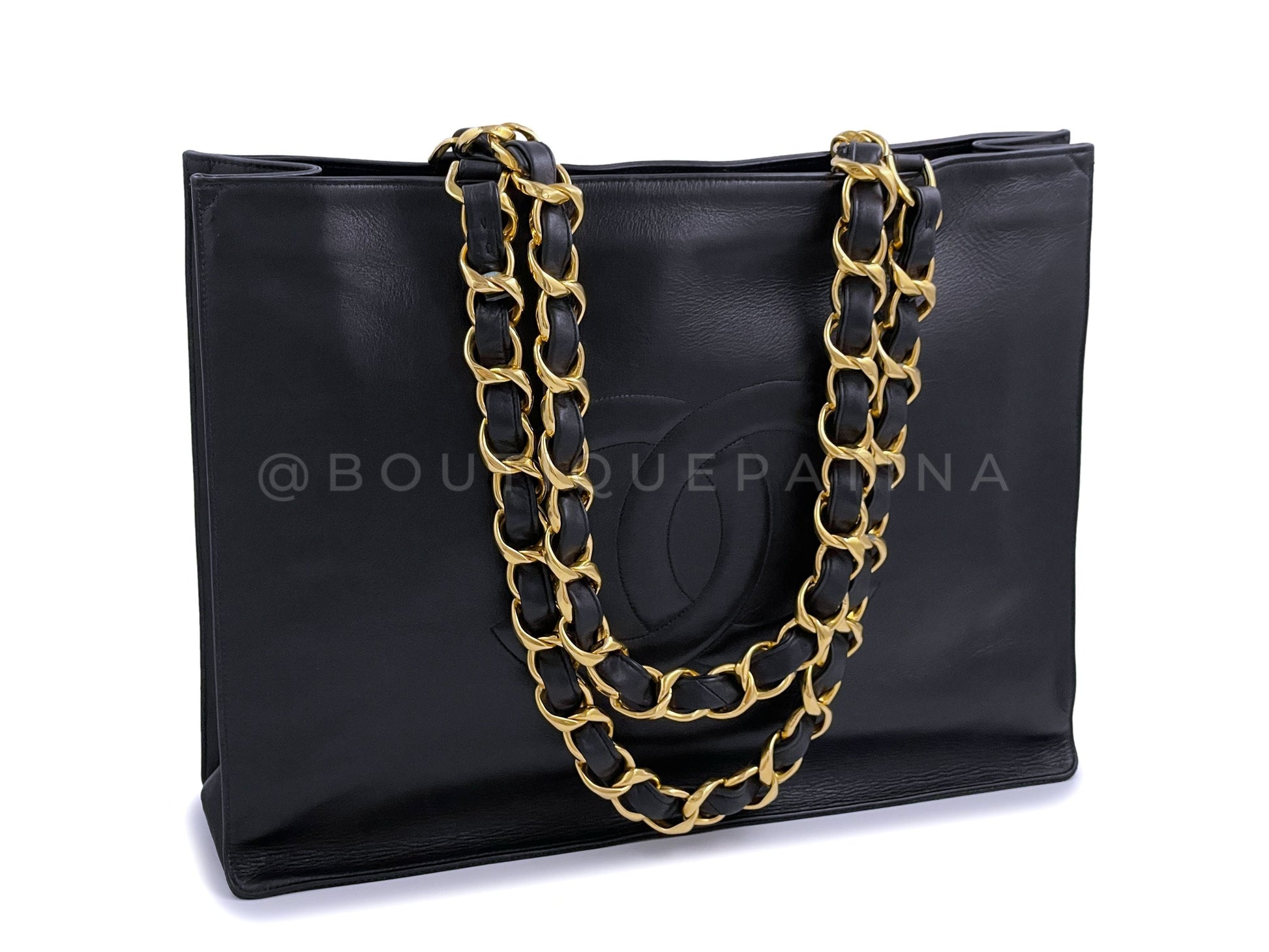 Chanel Vintage 1994 Timeless Shopper Chunky Chain Tote Bag 24k GHW Black