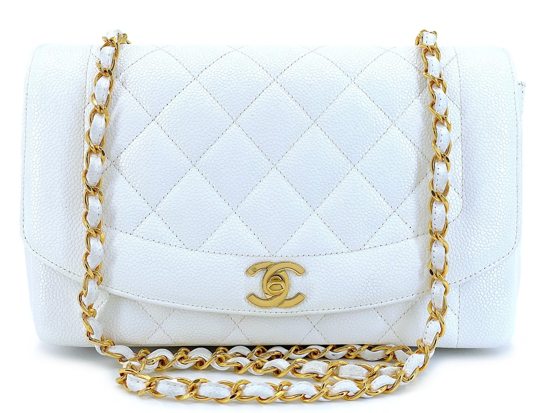 Chanel Vintage 1994 White Caviar Medium Diana Flap Bag 24k GHW 247