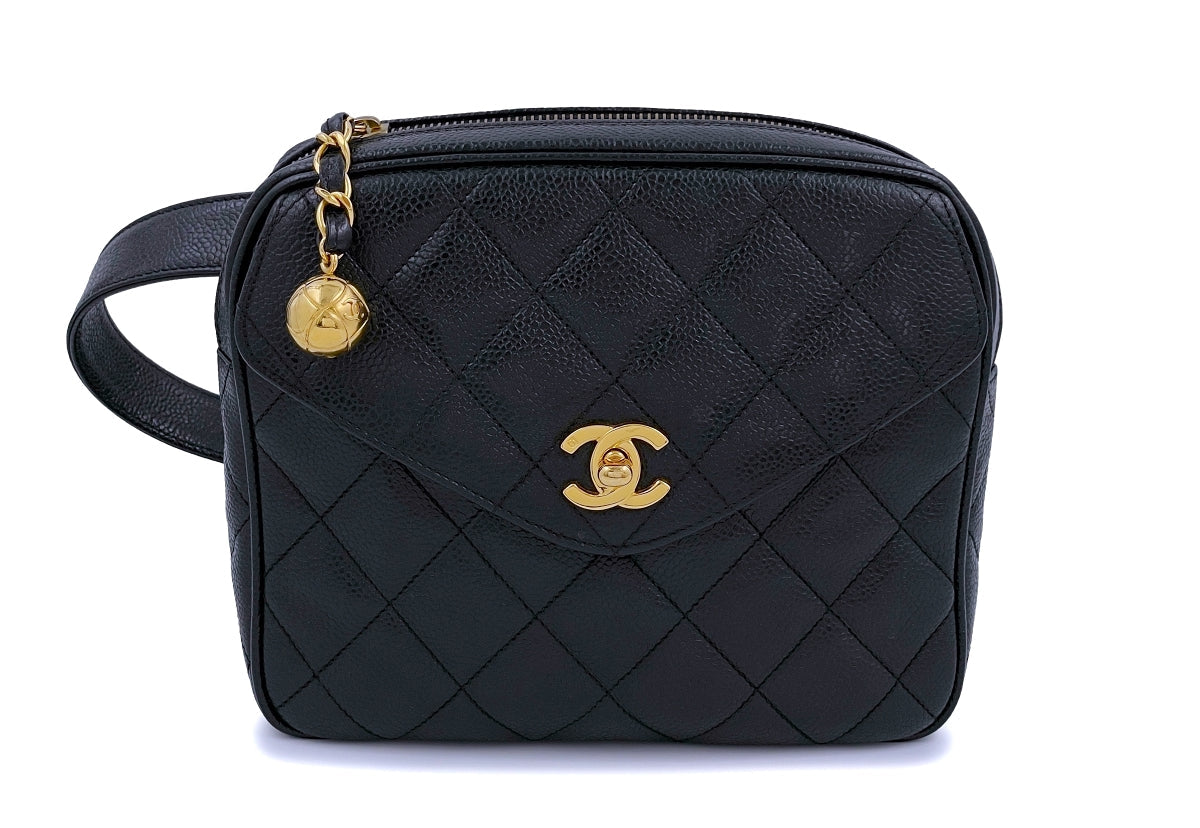 Chanel Vintage 1995 Black Caviar Waist Belt Bag Fanny Pack 24k GHW