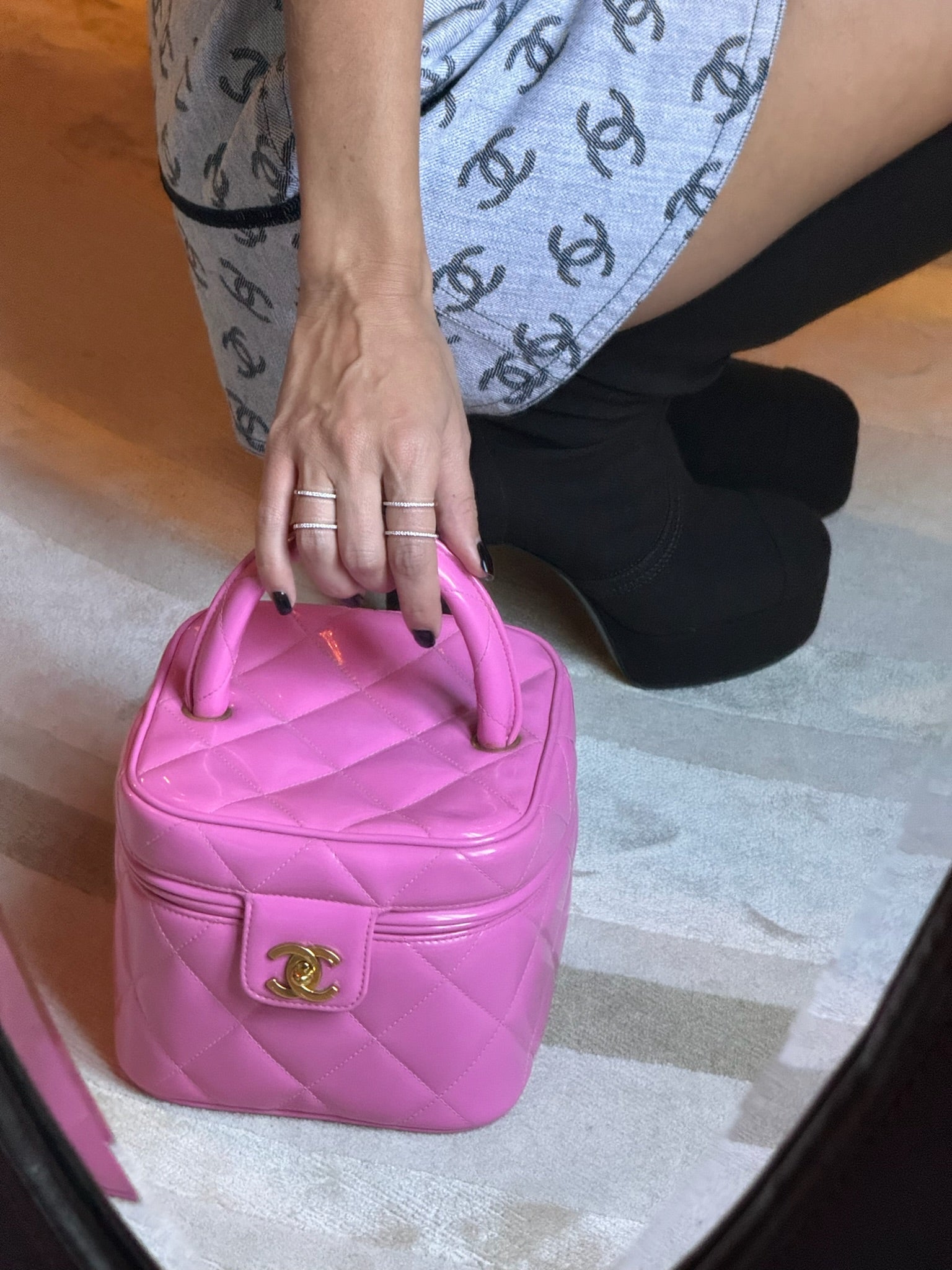 Chanel Vintage 1995 Barbie Collection Pink Heart Mirror Vanity Case and Bag