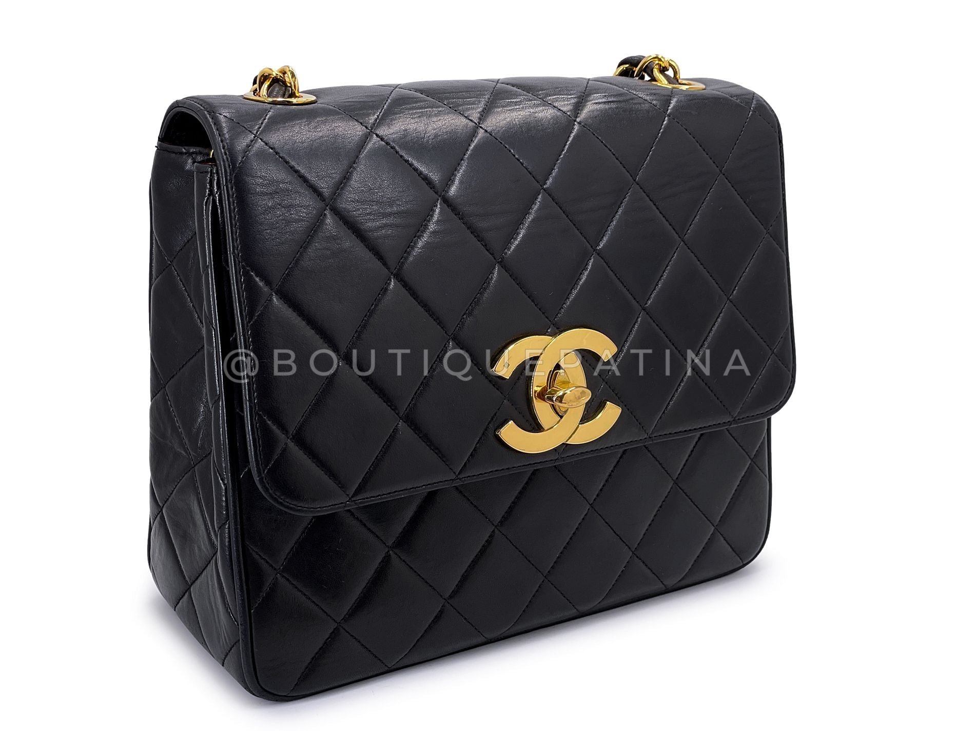 A stunning bag that is hard to find and no longer available in boutiques, this Chanel vintage classic flap with oversized 24k gold-plated CC's from the timeless quilted classic collection.
