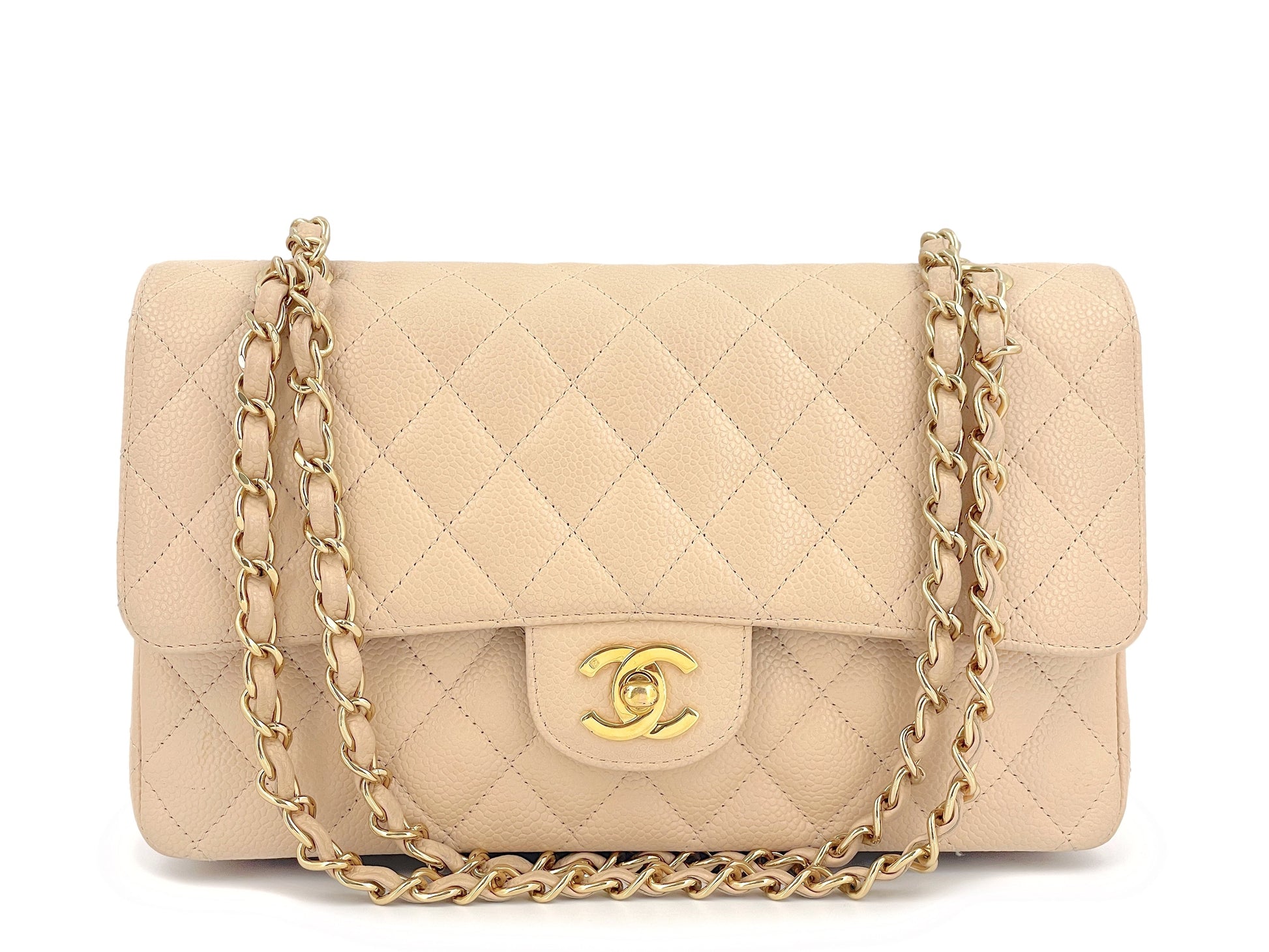 Chanel Vintage Beige Caviar Medium Classic Double Flap Bag 24k GHW