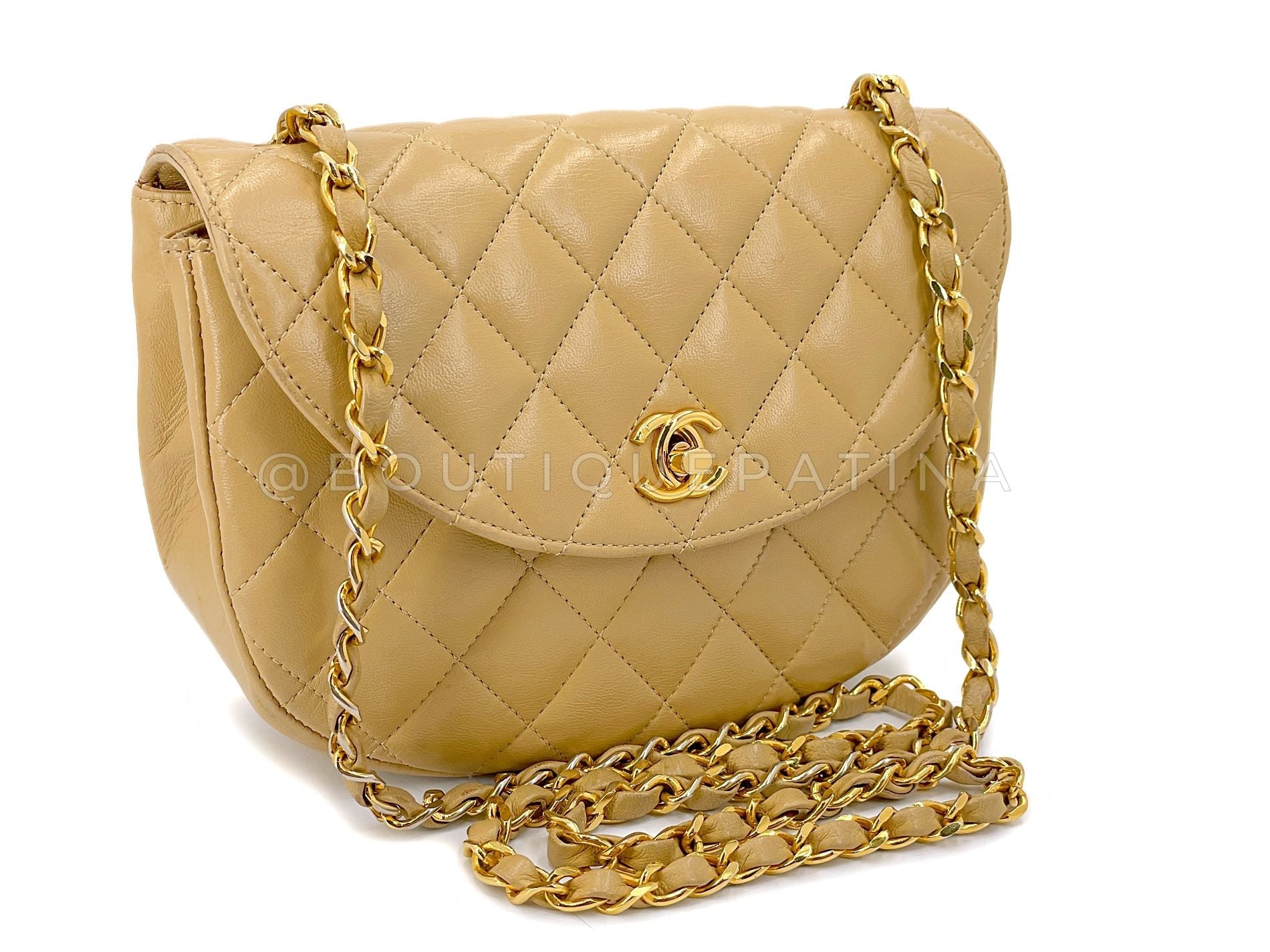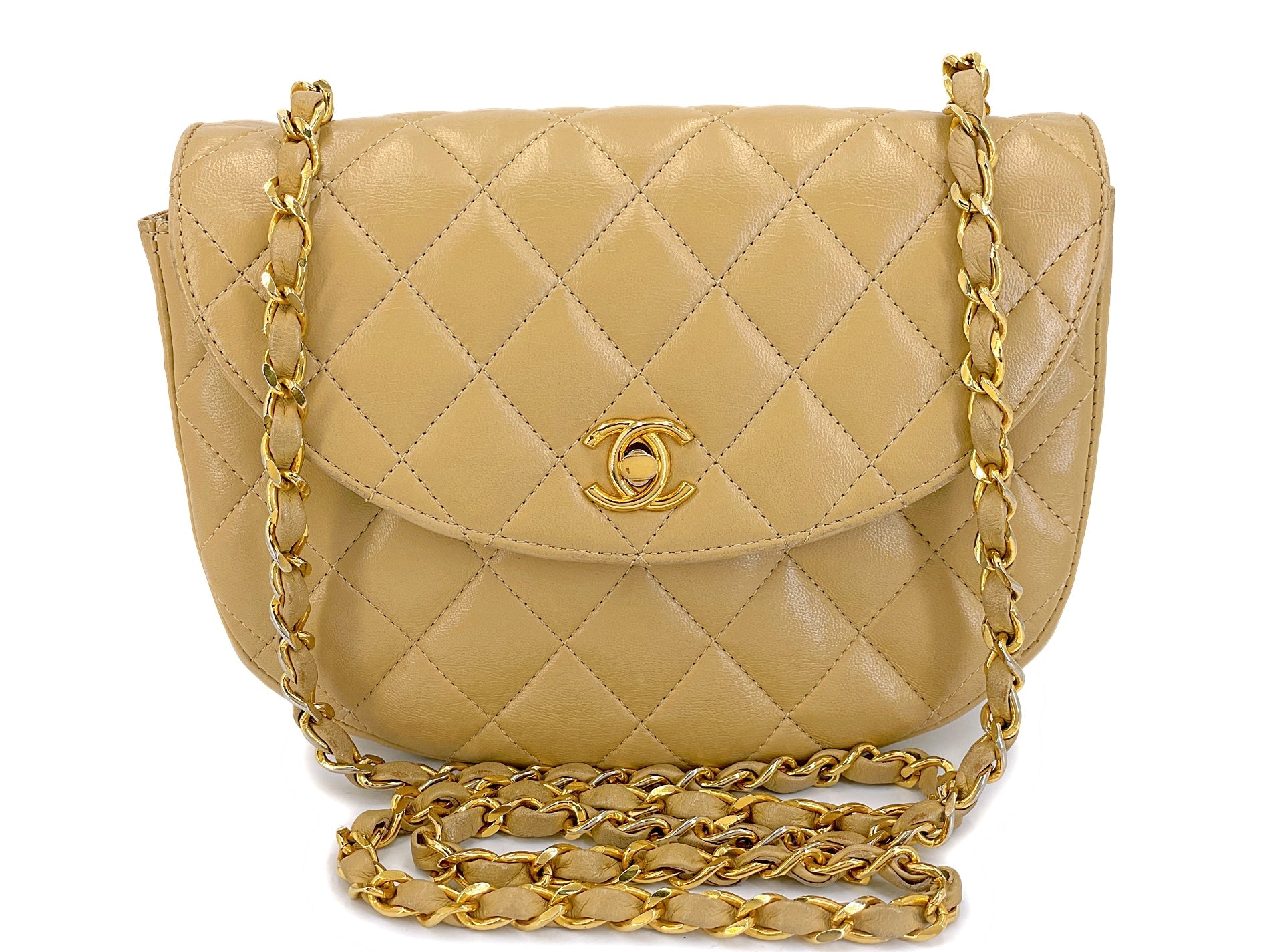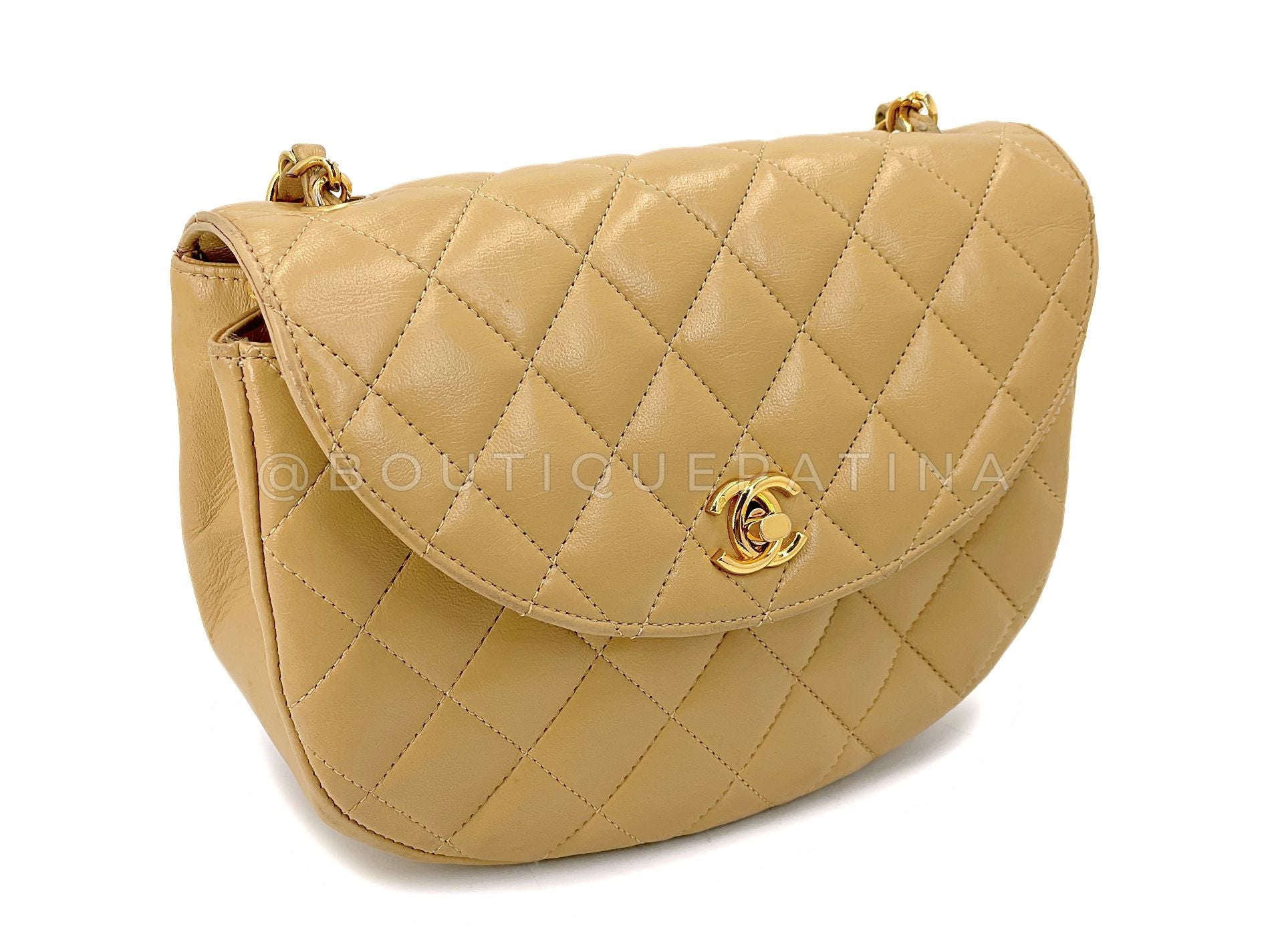 Chanel Vintage Beige Lambskin Half Moon Flap Bag 24k GHW V4O