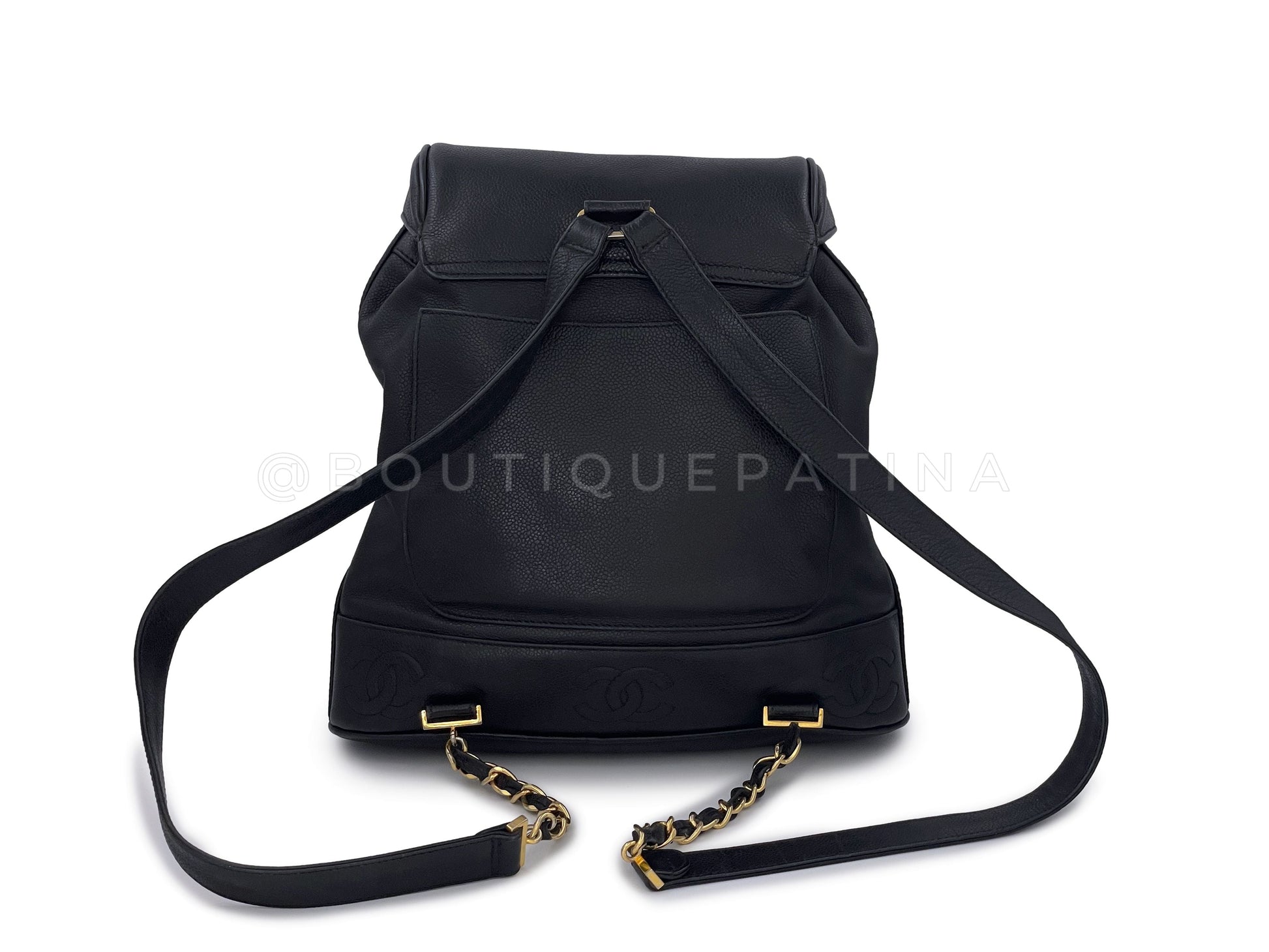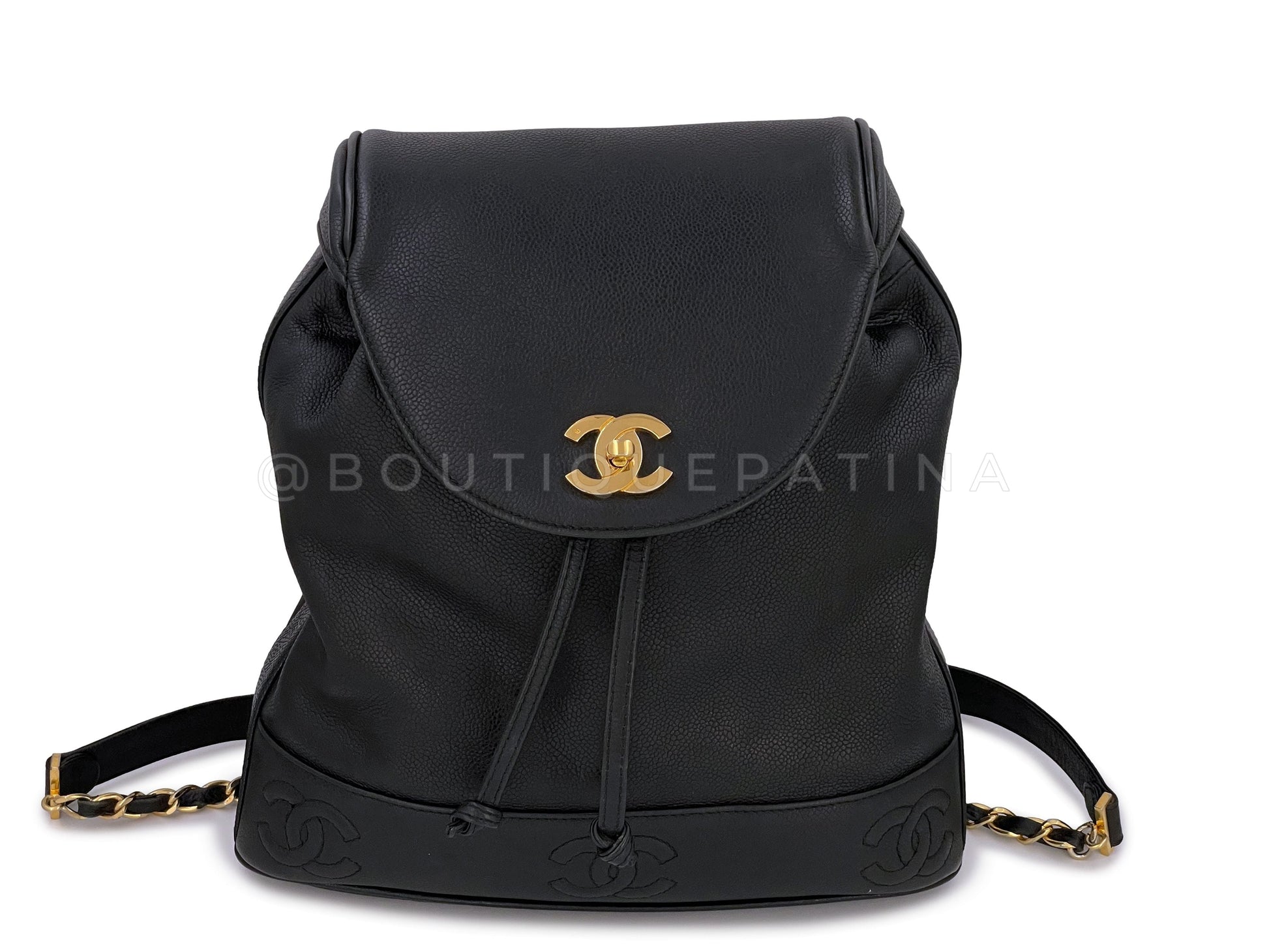 In Black caviar leather and 24k gold plated hardware. Boutique Patina specializes in sourcing and curating the best condition preowned vintage Chanel leather treasures by searching closets around the world.
