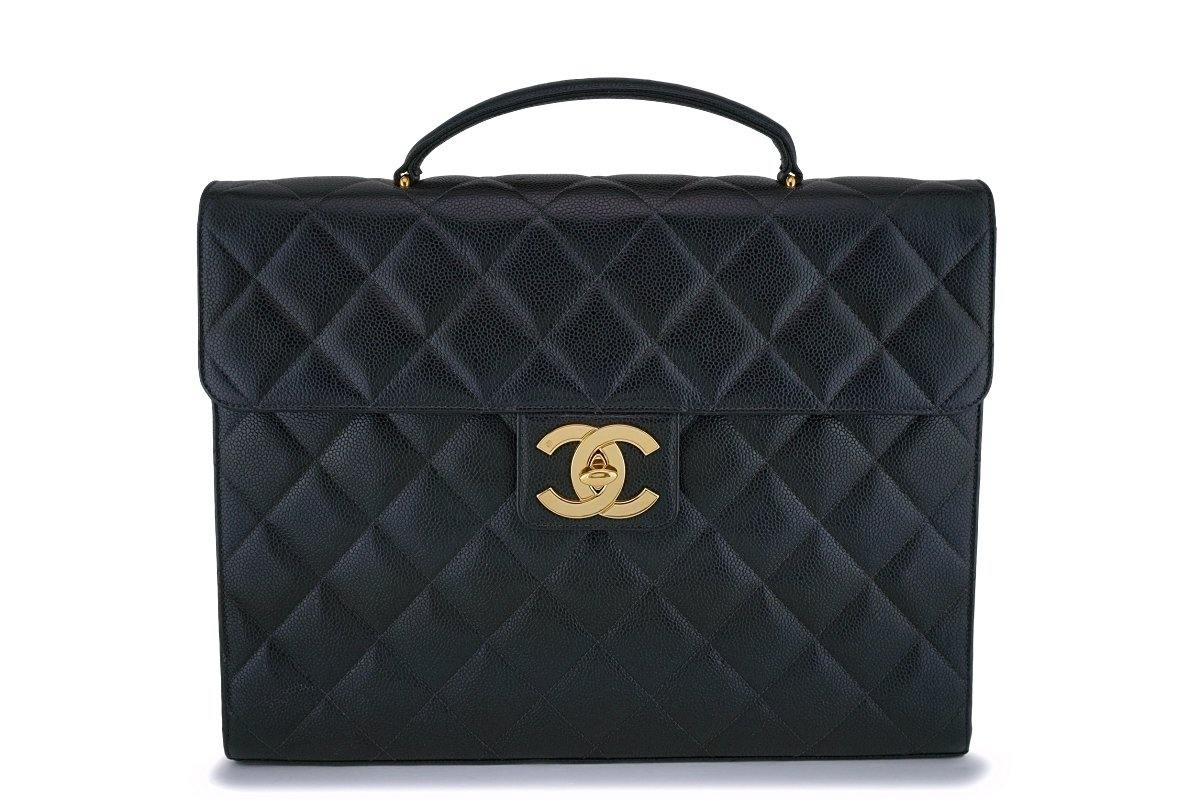 Chanel Vintage Black Caviar Briefcase Tote Bag 24k GHW