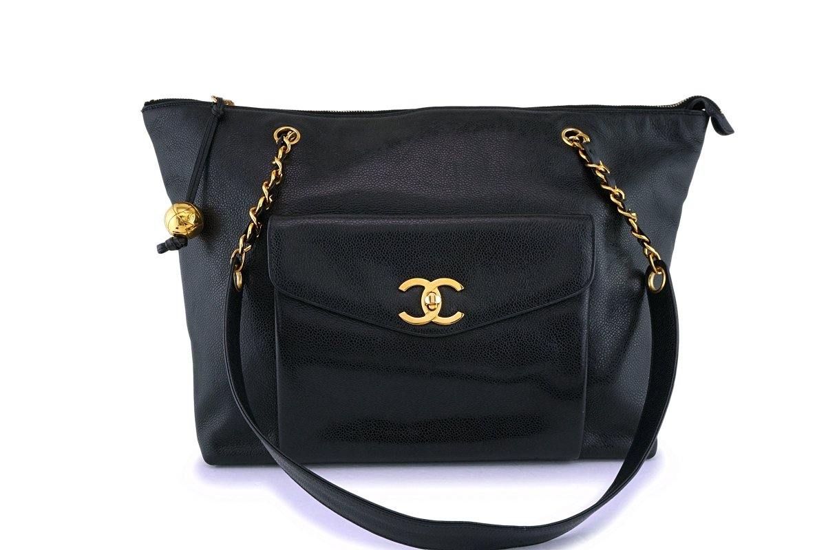 Chanel Vintage Black Caviar Flap-Tote Shopper Bag 24k GHW