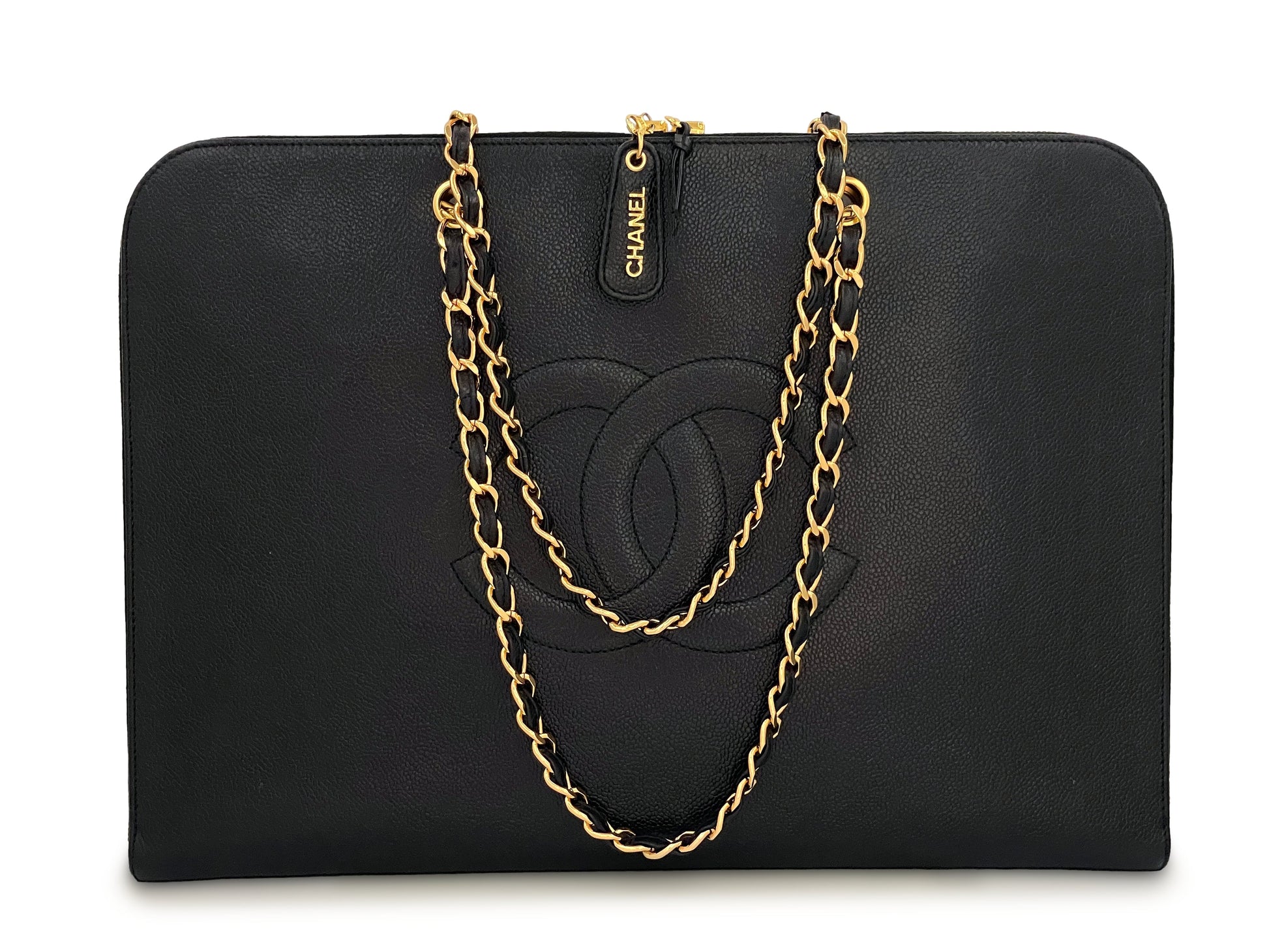 Chanel Vintage Black Caviar Portfolio Work Tote Bag 24k GHW