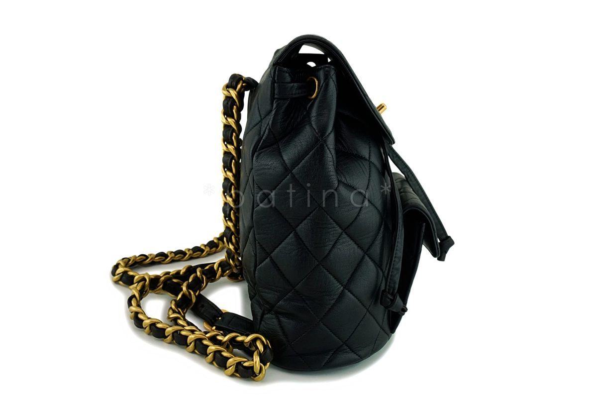 Chanel Vintage Black Lambskin Classic Quilted Backpack Bag 24k GHW