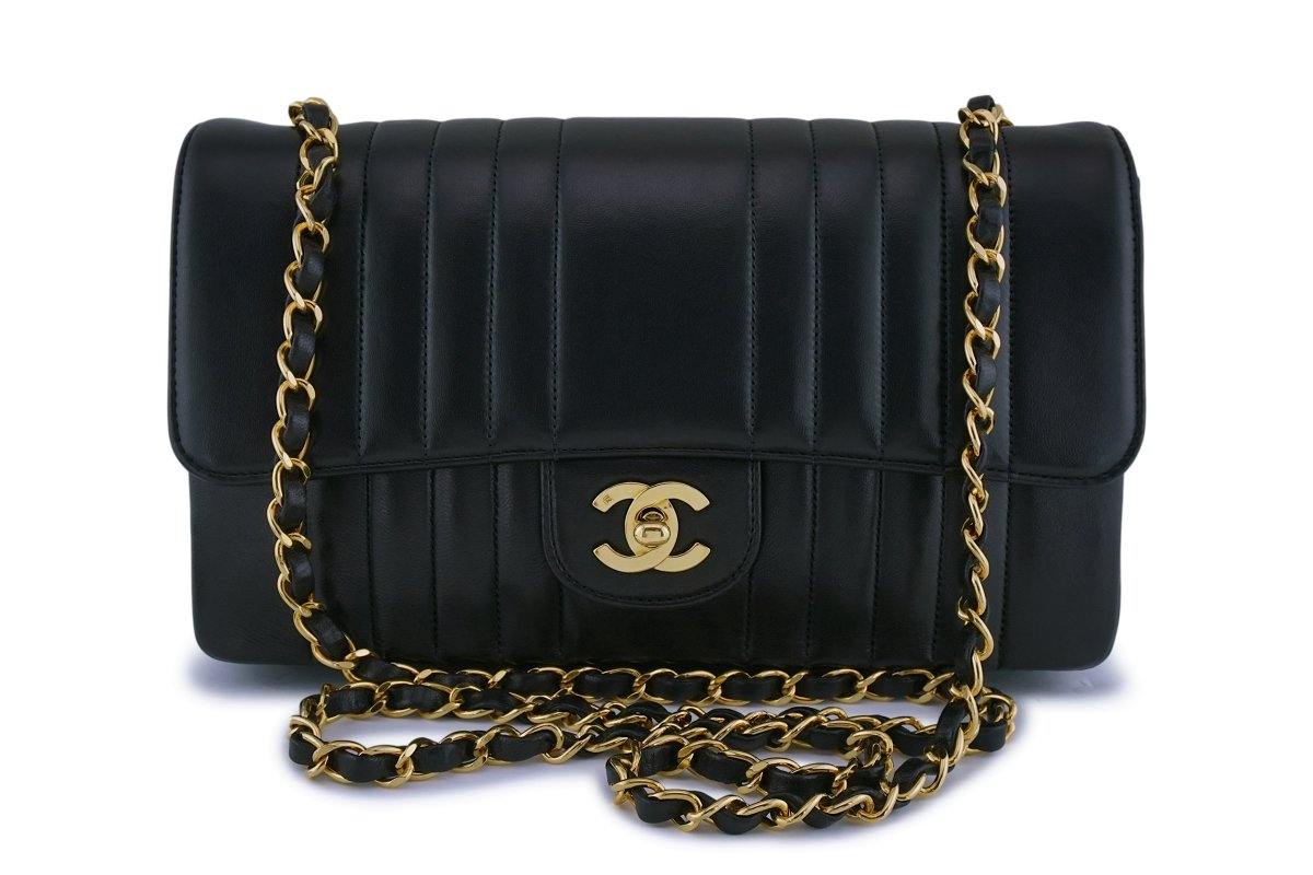 Chanel Vintage Black Lambskin Medium Mademoiselle Classic Flap Bag 24k GHW