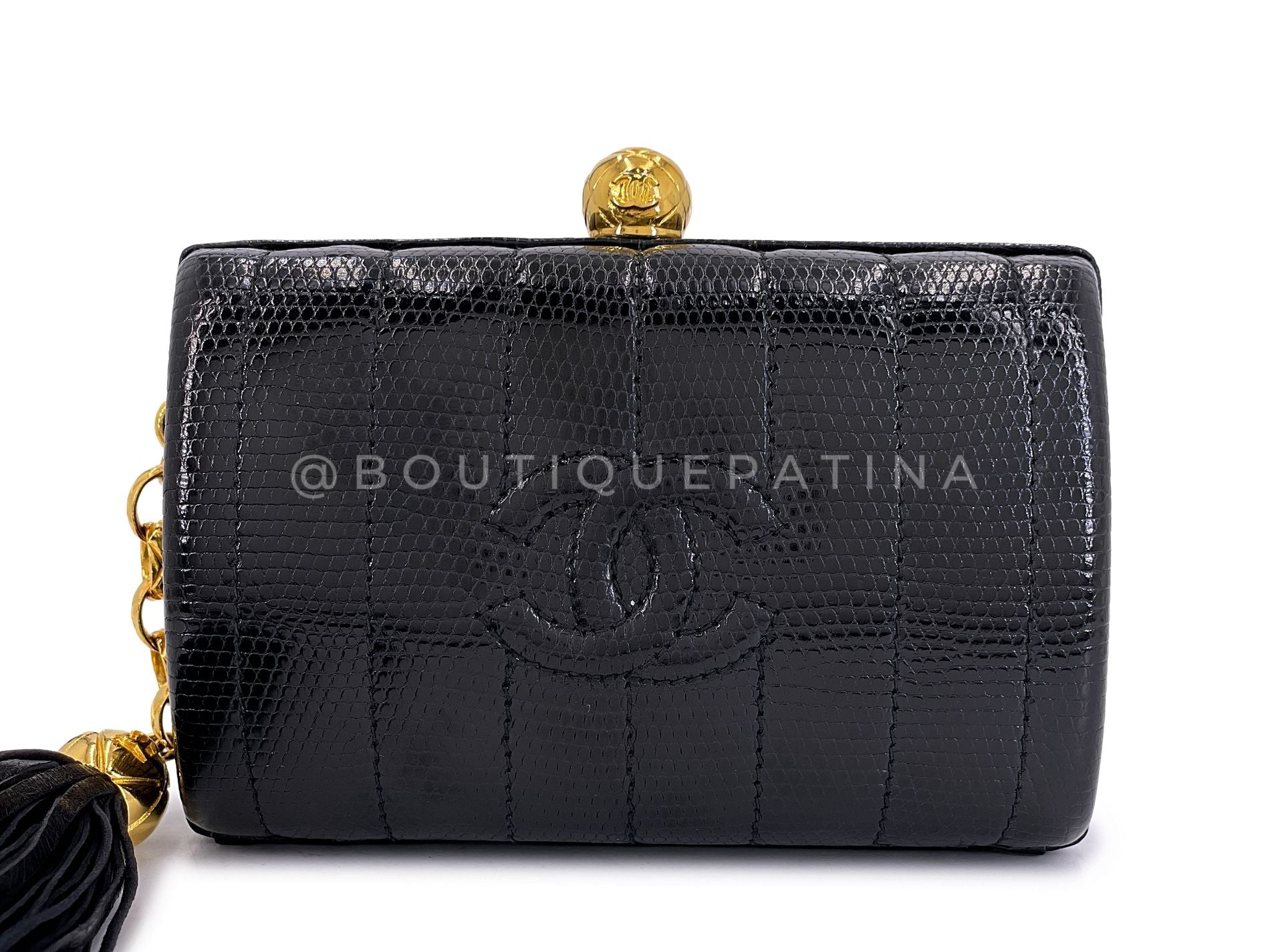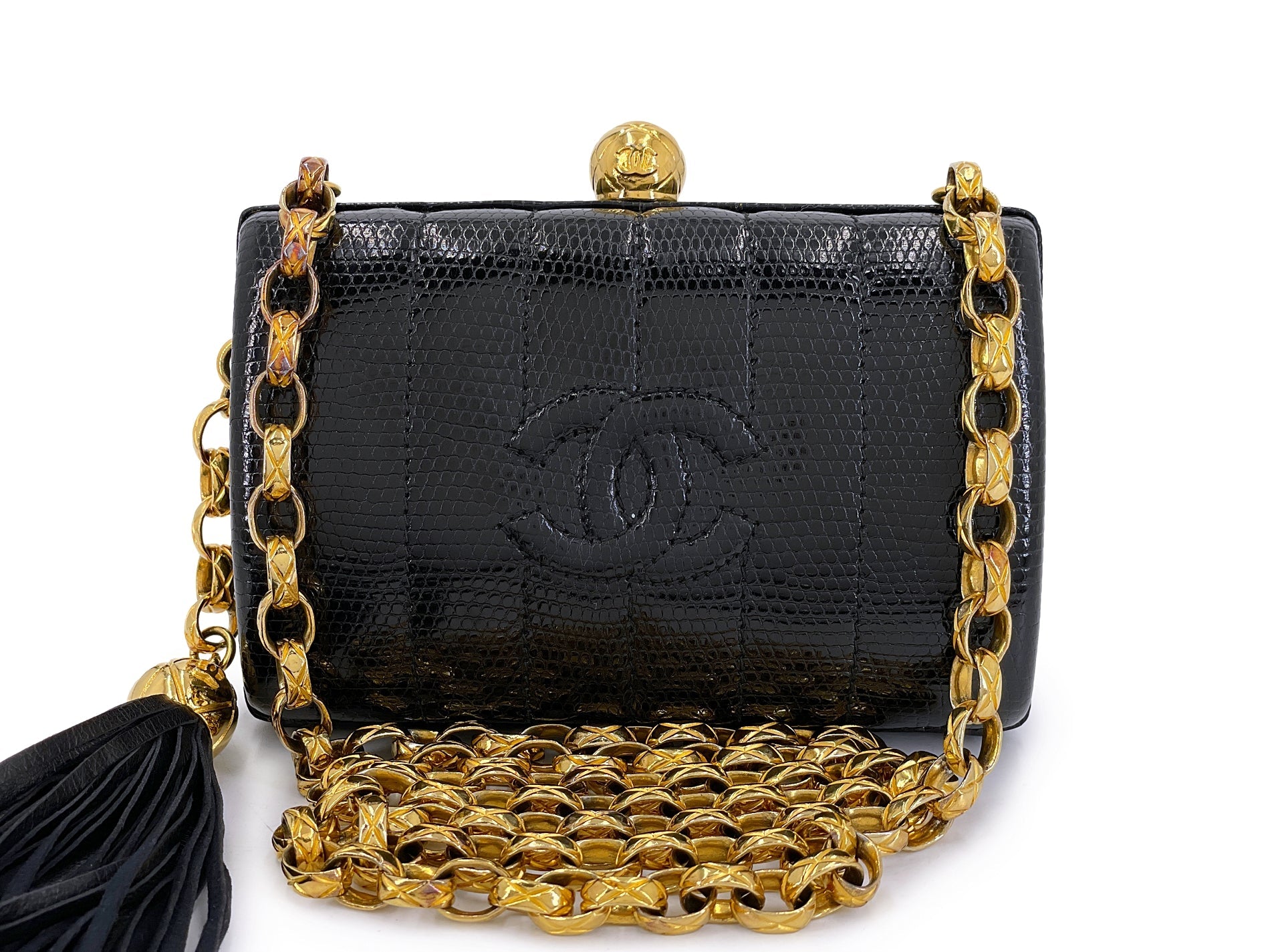 Chanel 1994 Vintage Black Lizard Rolo Chain Evening Clutch Bag 24k GHW W8Y