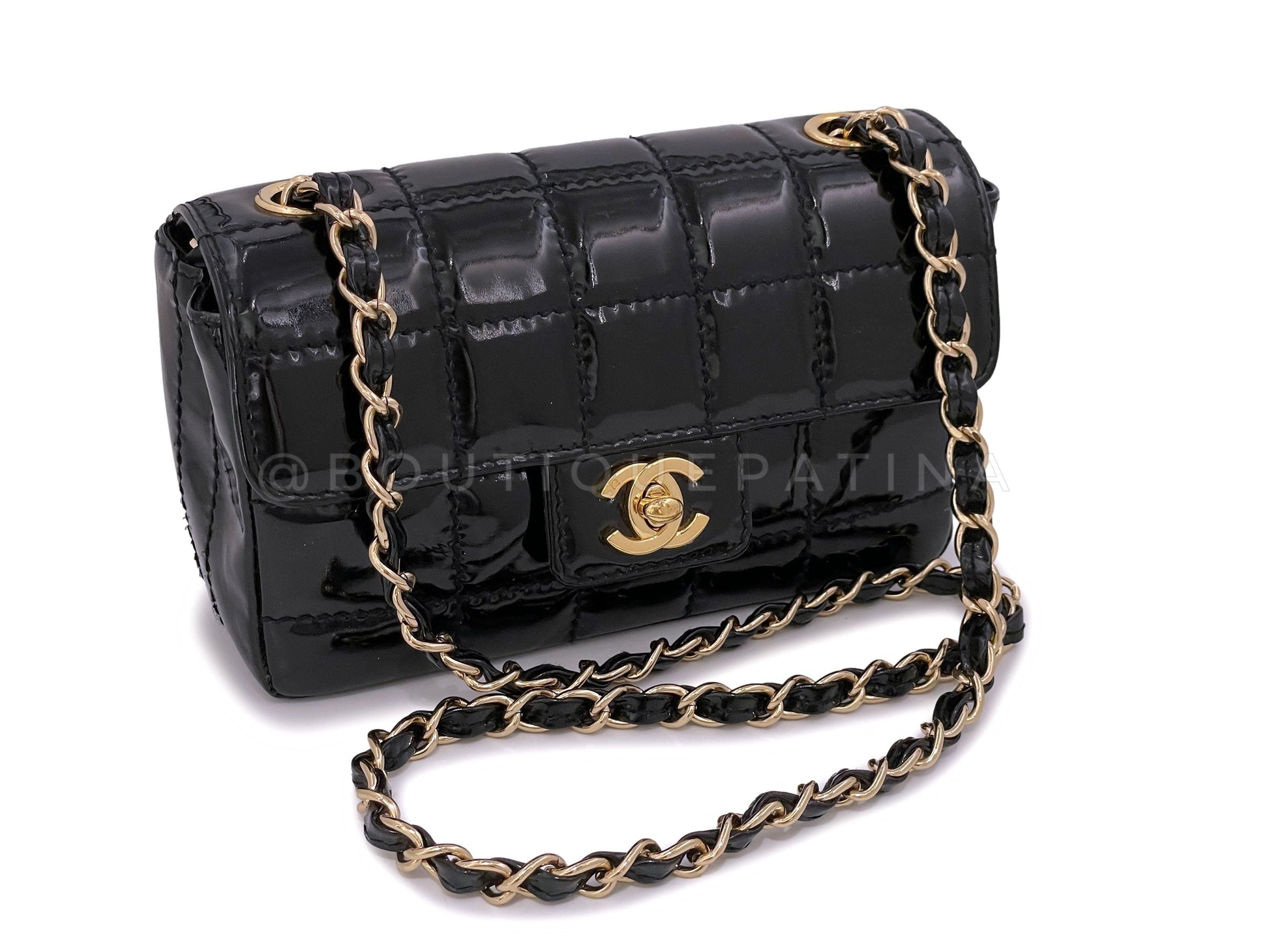 Chanel Vintage Black Patent Extra Mini Flap Bag 24k GHW Chocolate Bar