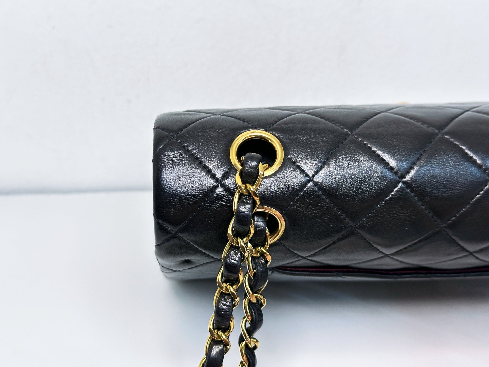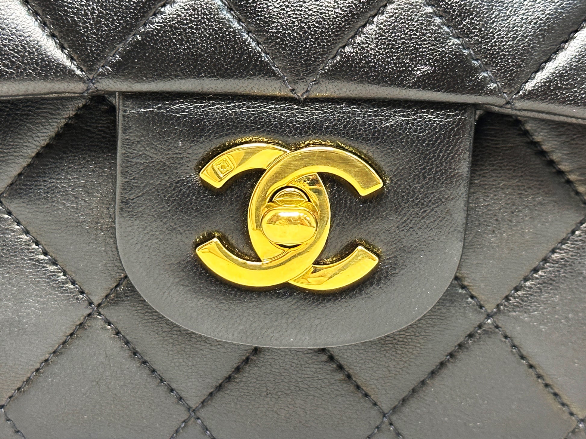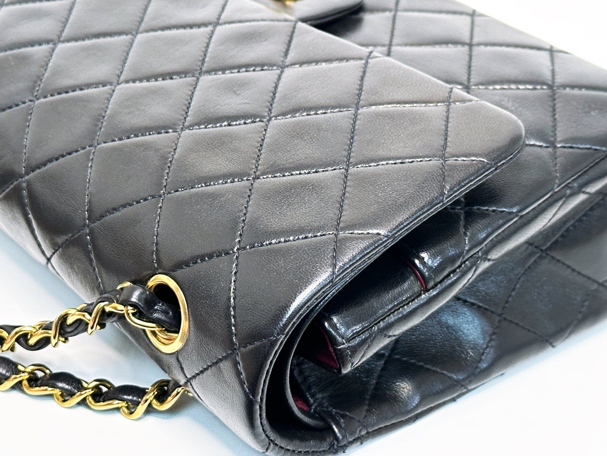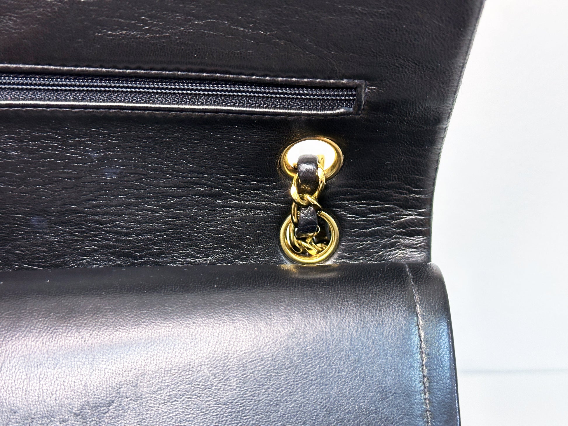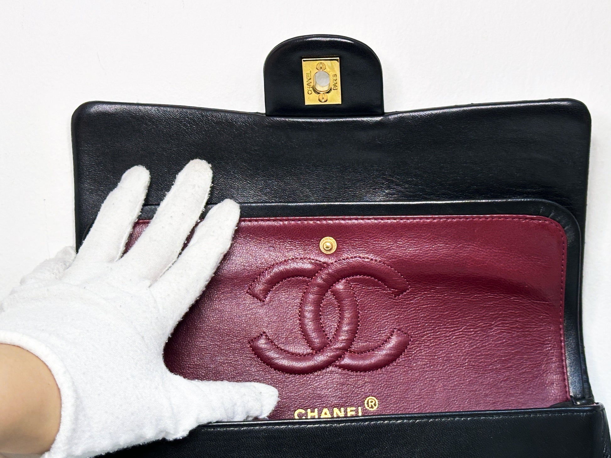 Chanel Vintage Black Quilted Lambskin Medium Classic Double Flap Bag 2843 holo card