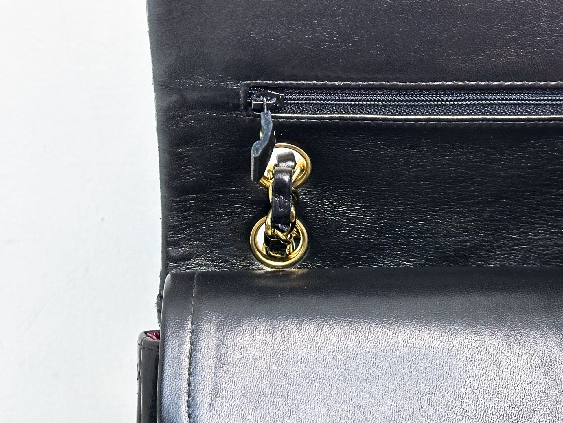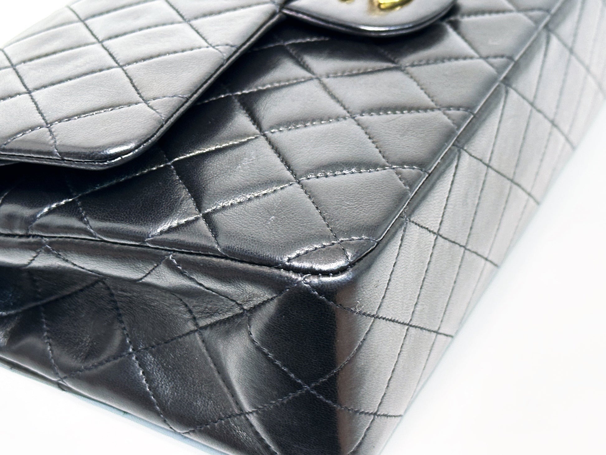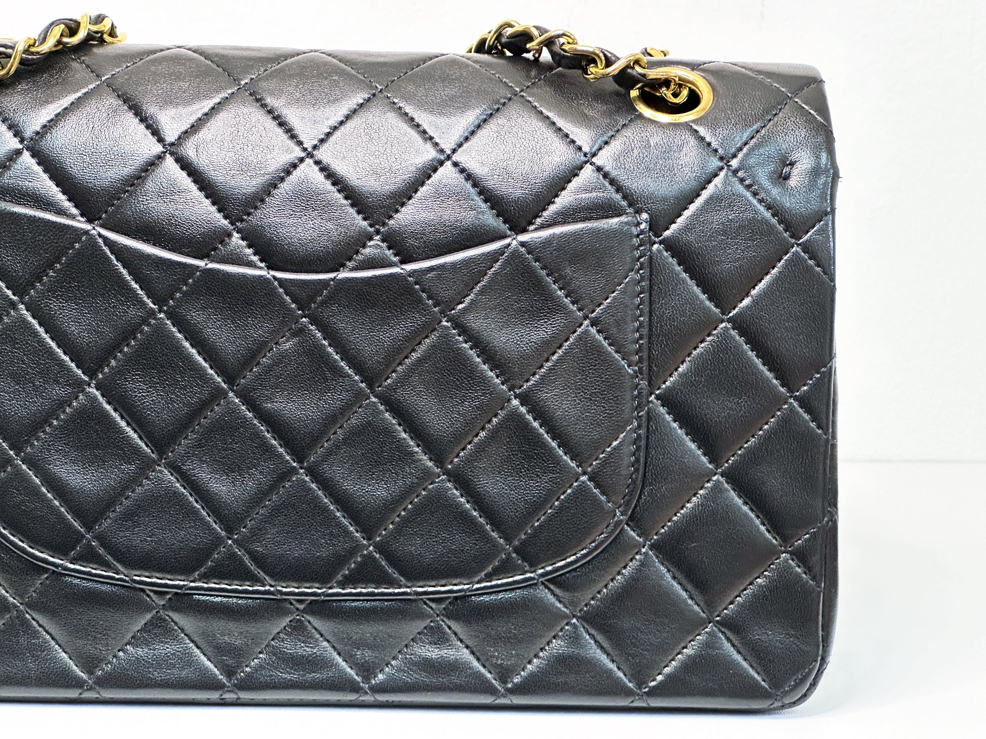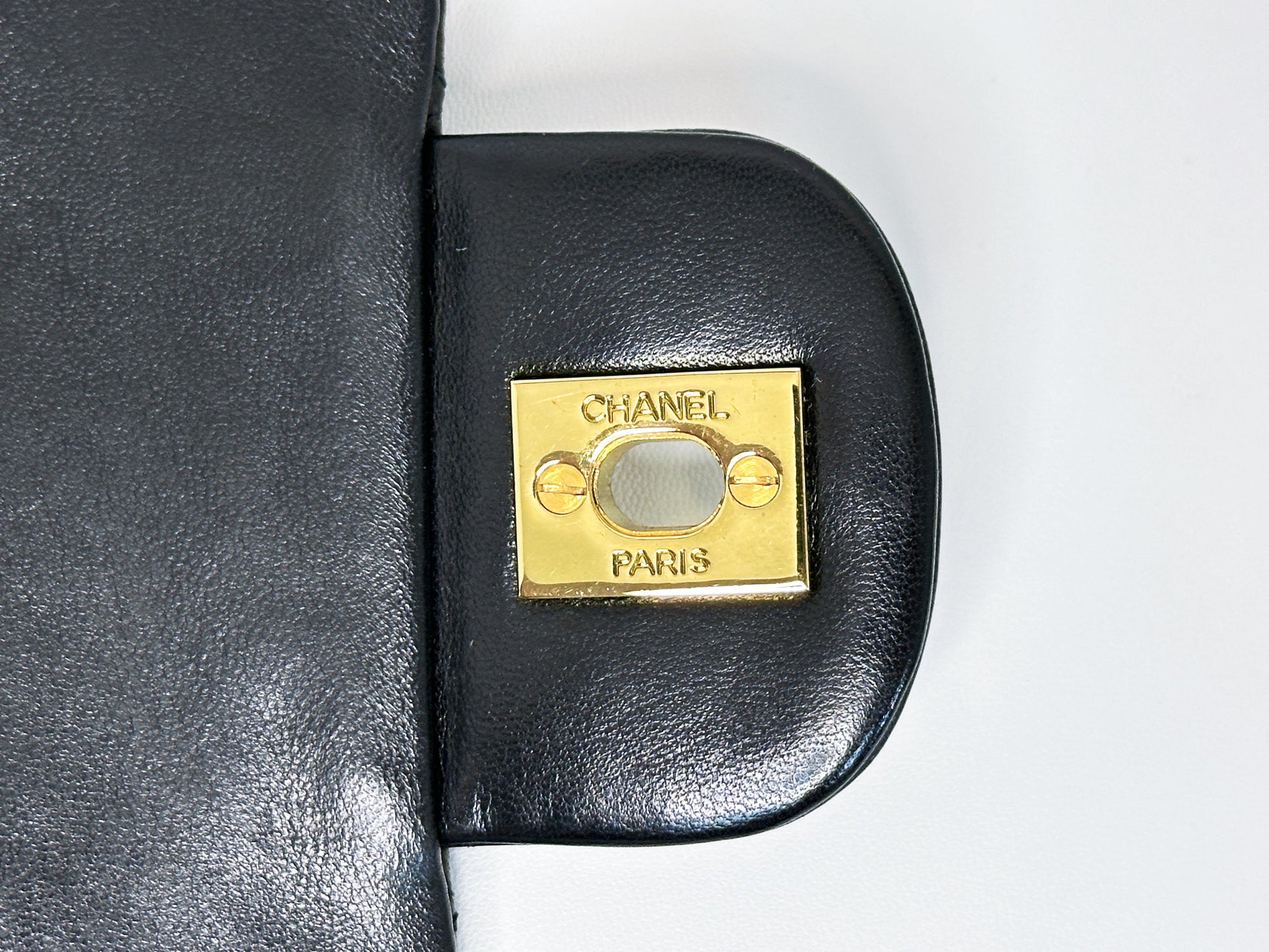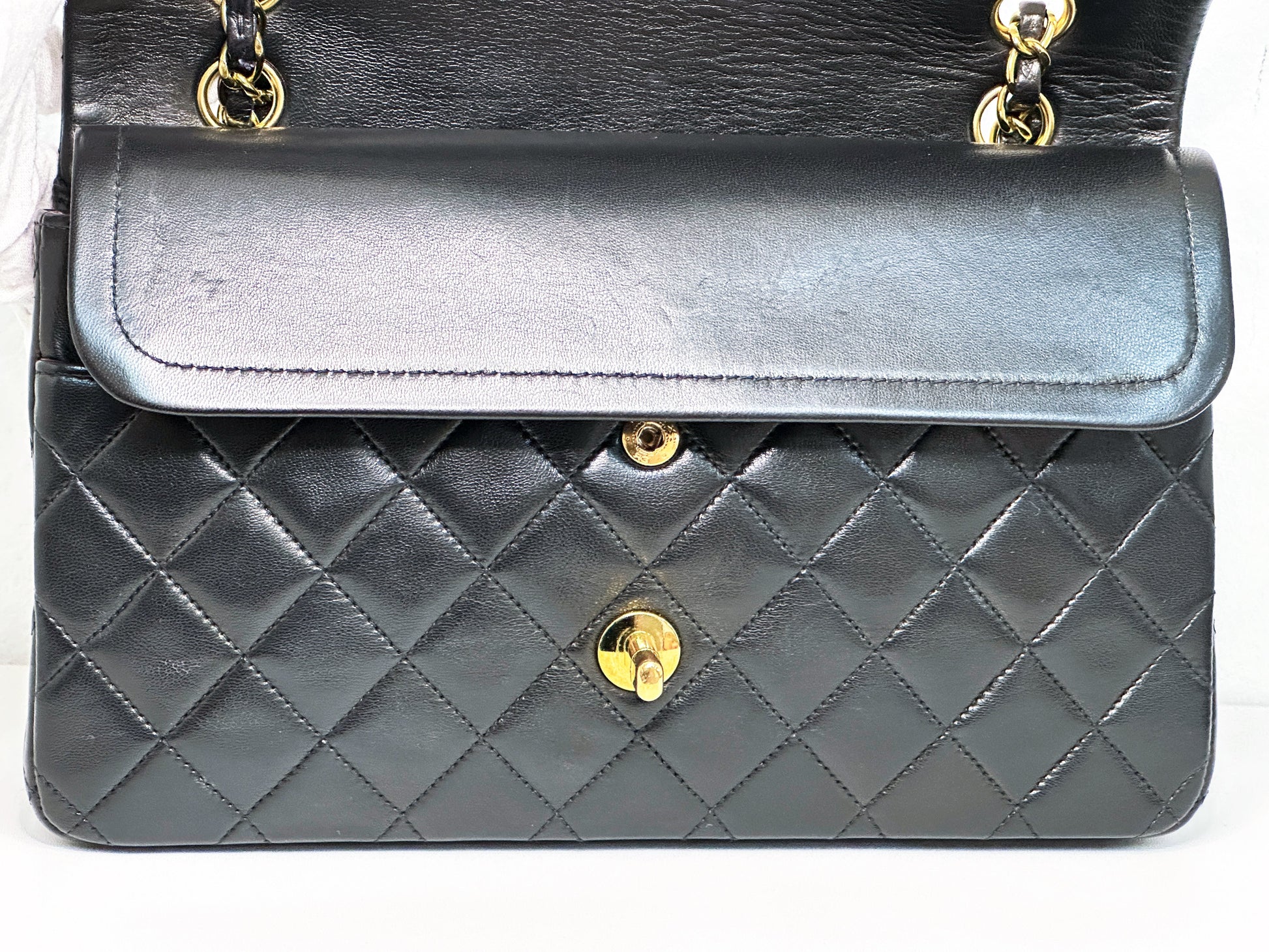 Chanel Vintage Black Quilted Lambskin Medium Classic Double Flap Bag 2843 holo card