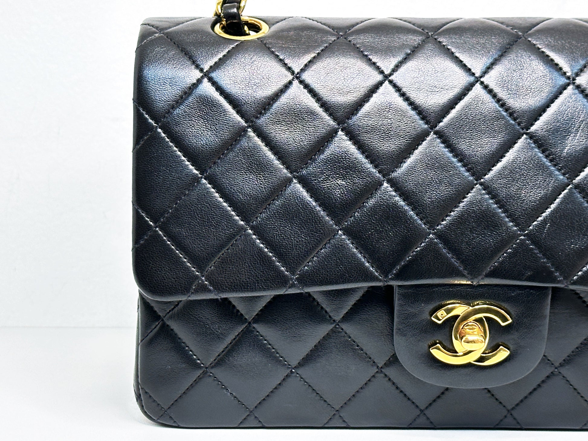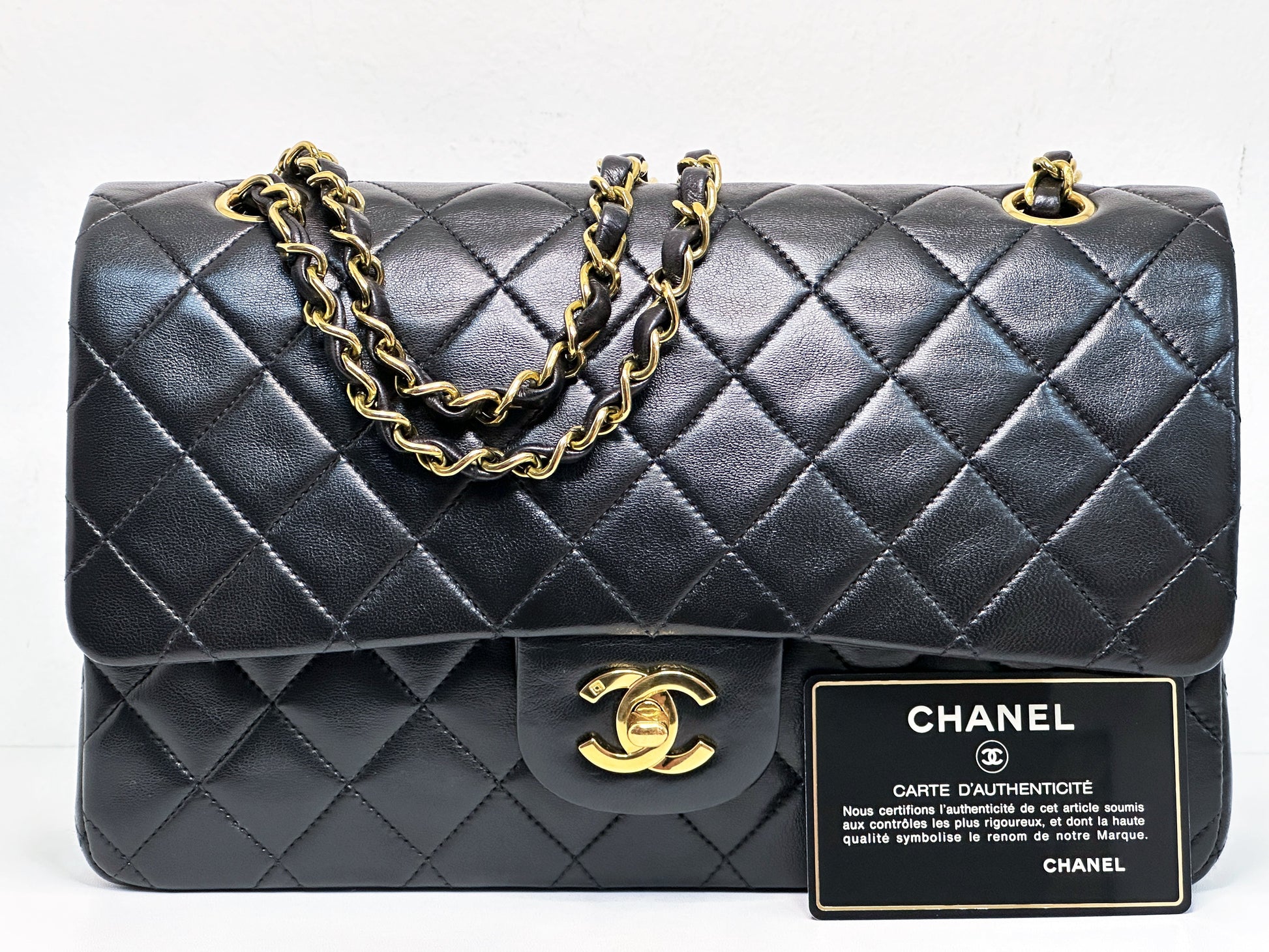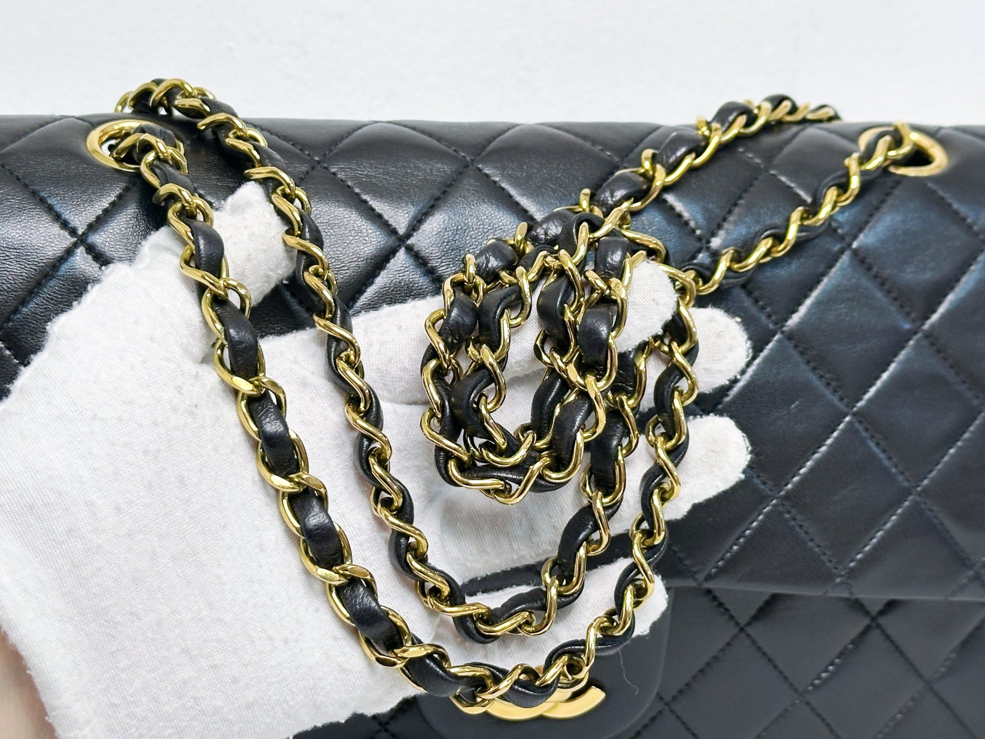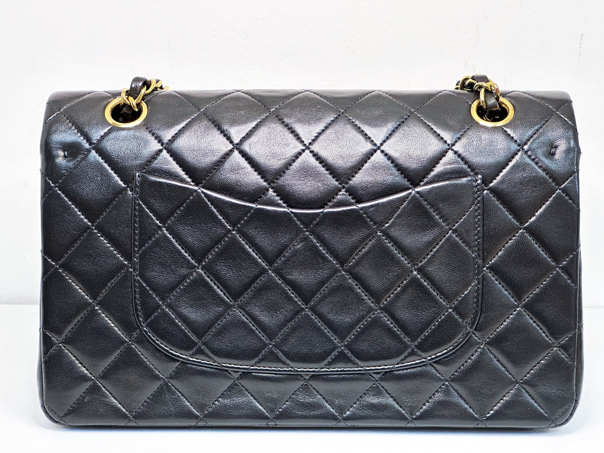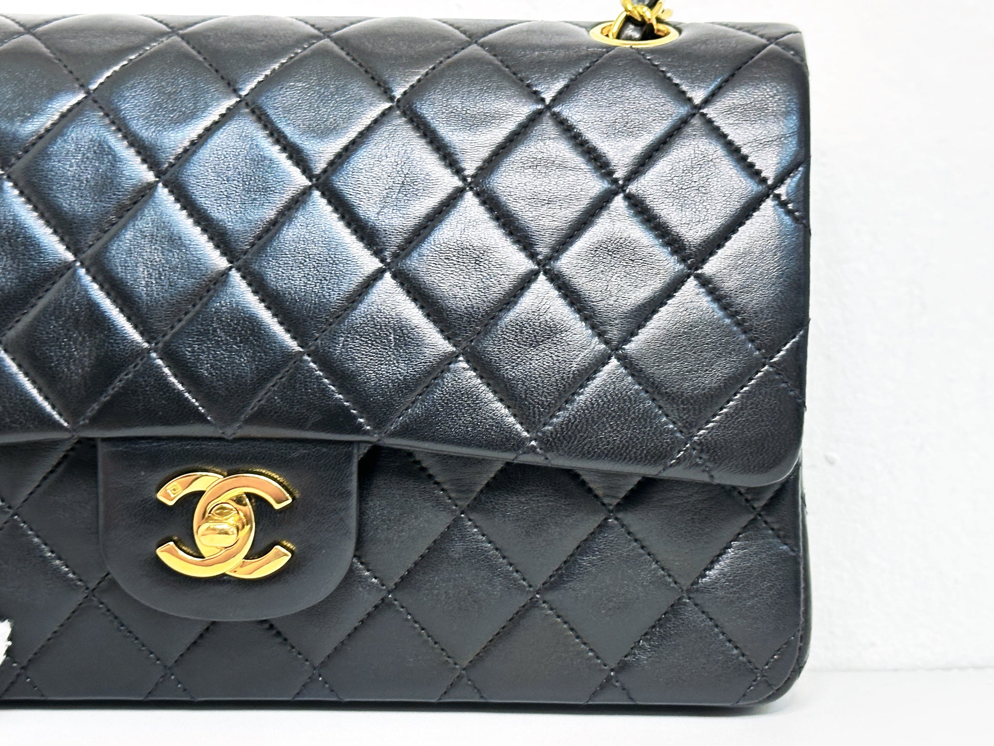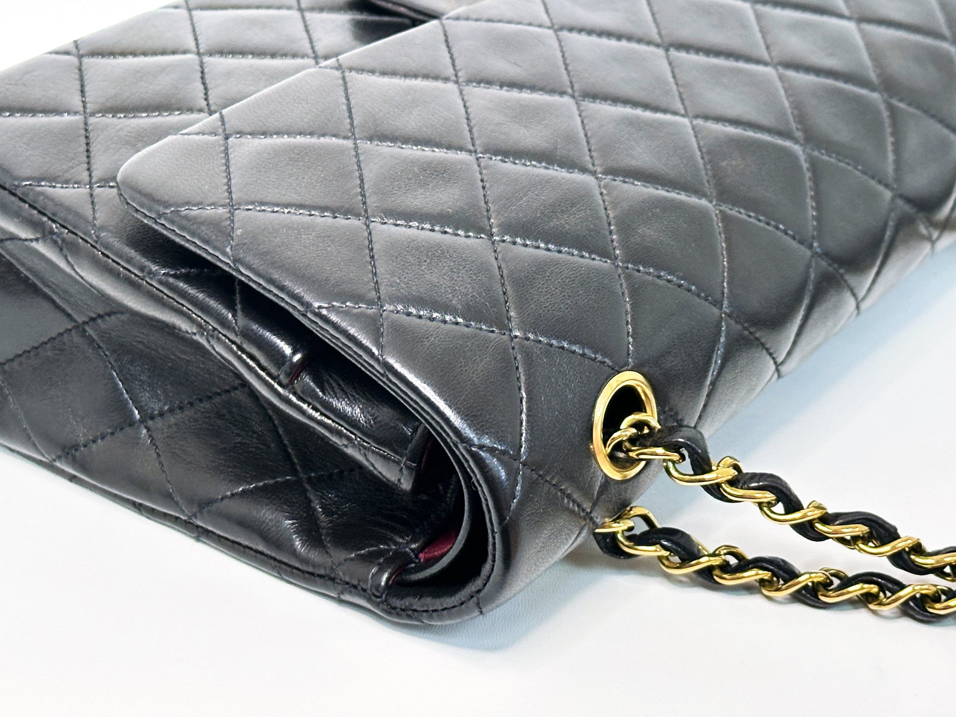 Chanel Vintage Black Quilted Lambskin Medium Classic Double Flap Bag 2843 holo card