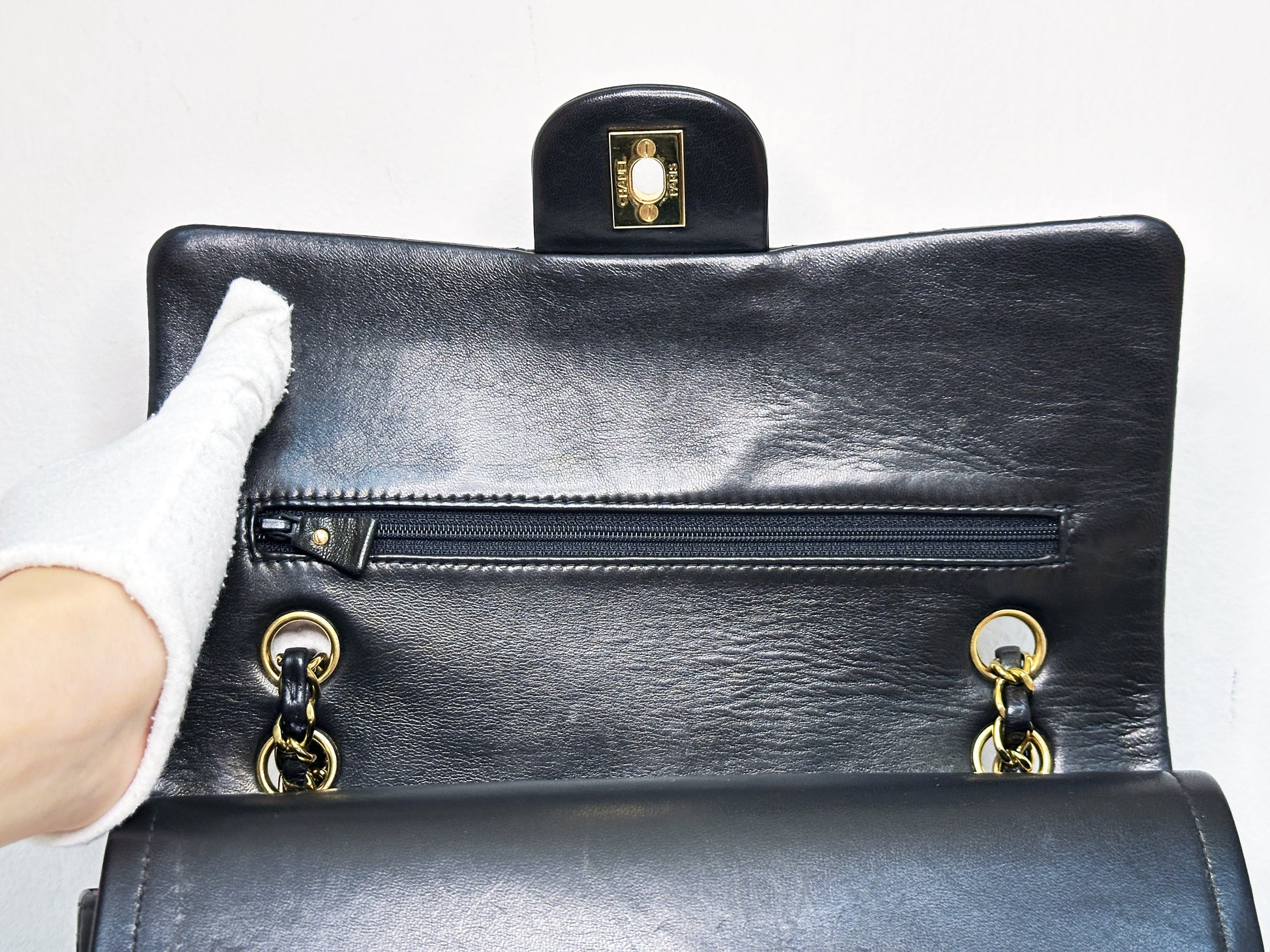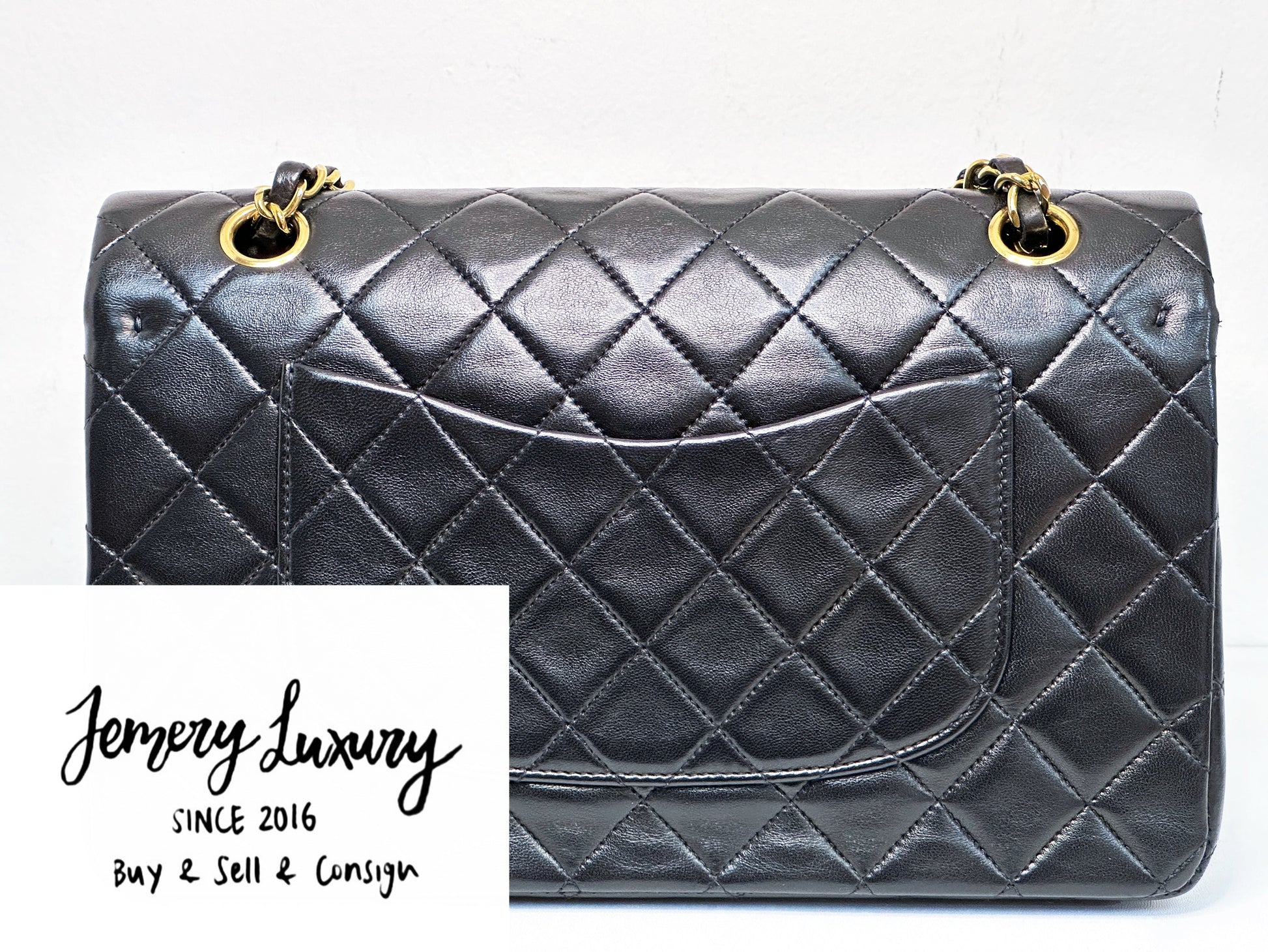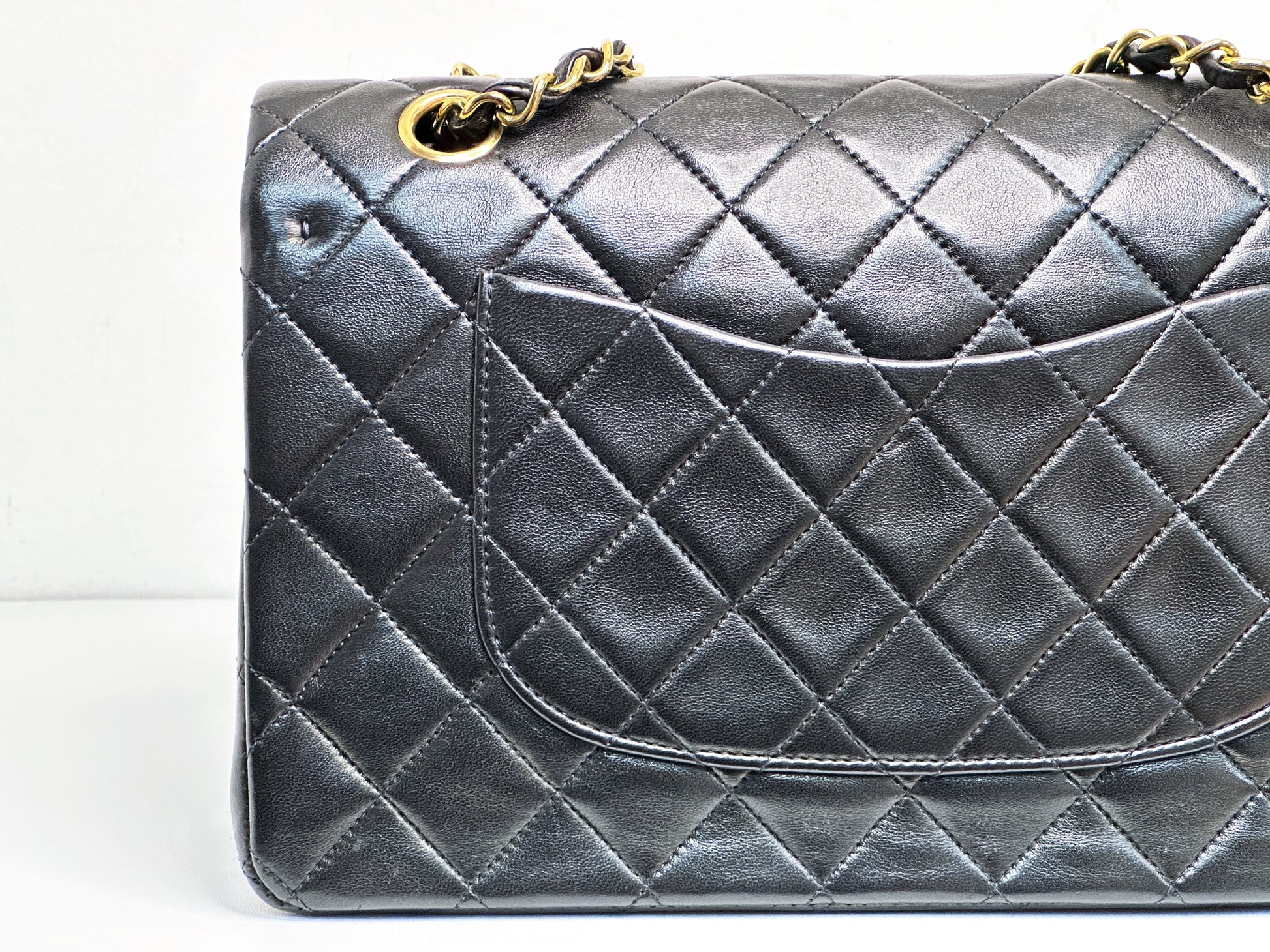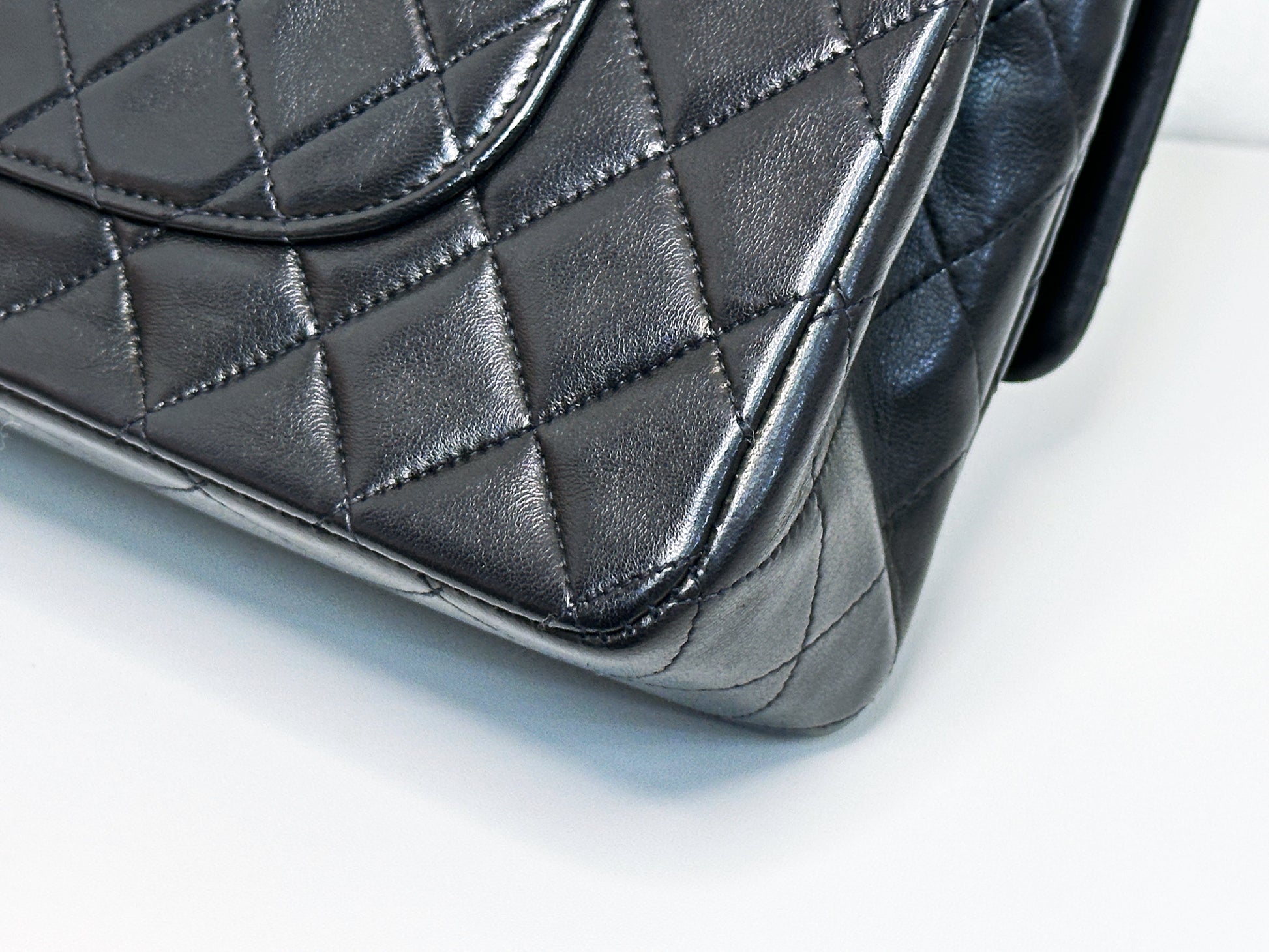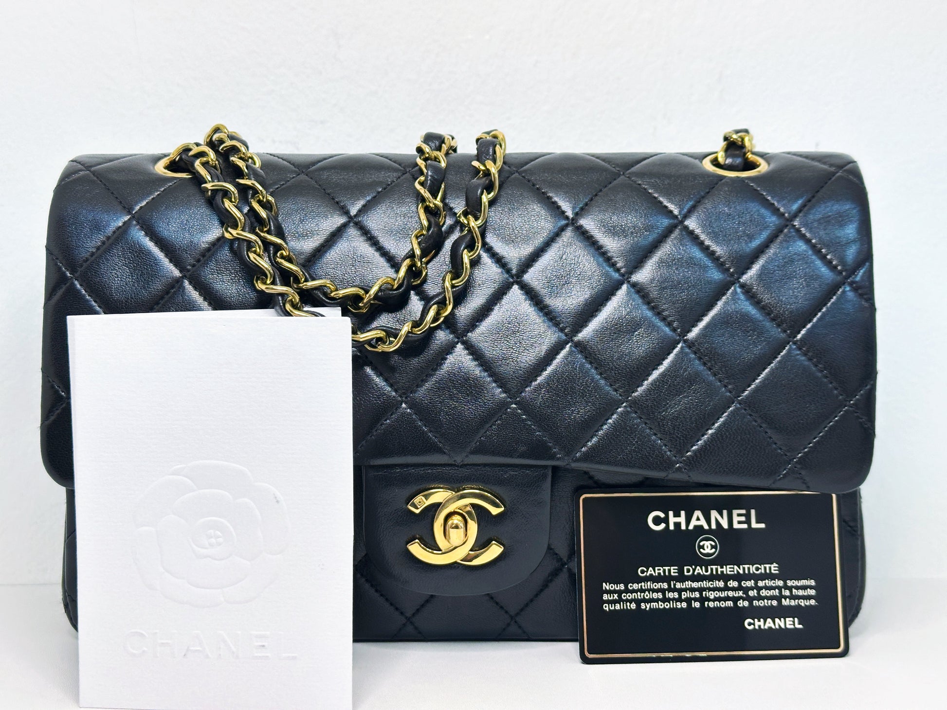 Chanel Vintage Black Quilted Lambskin Medium Classic Double Flap Bag 2843 holo card