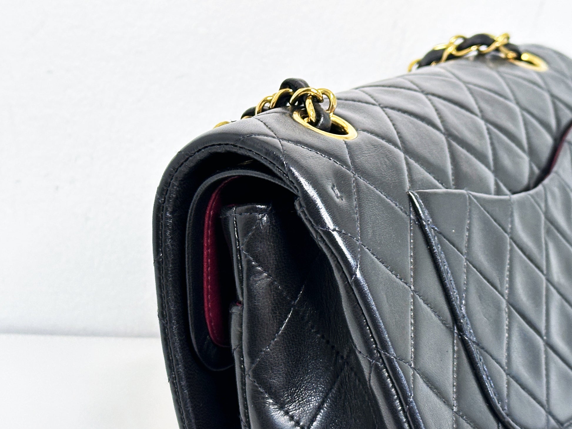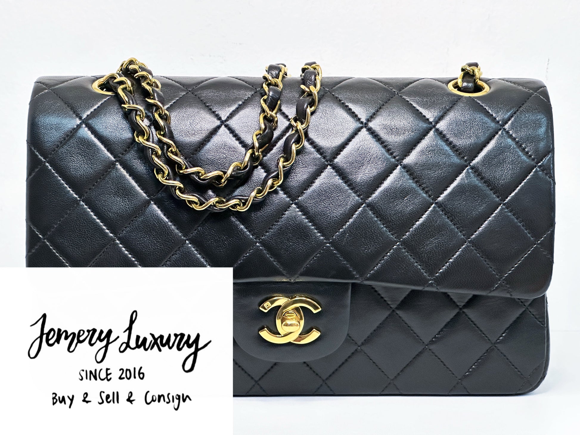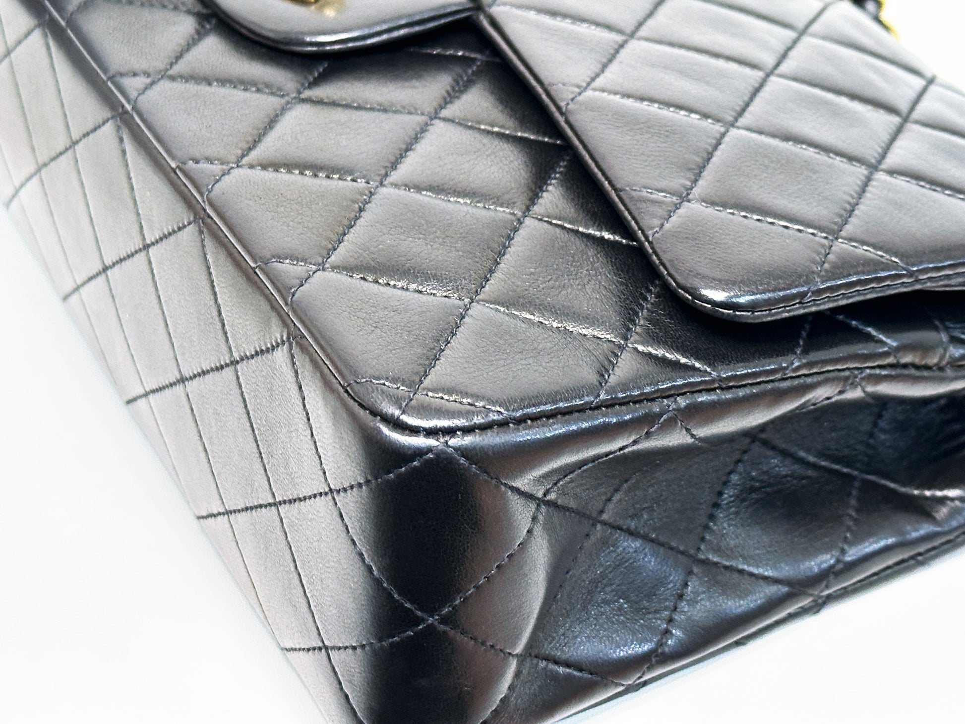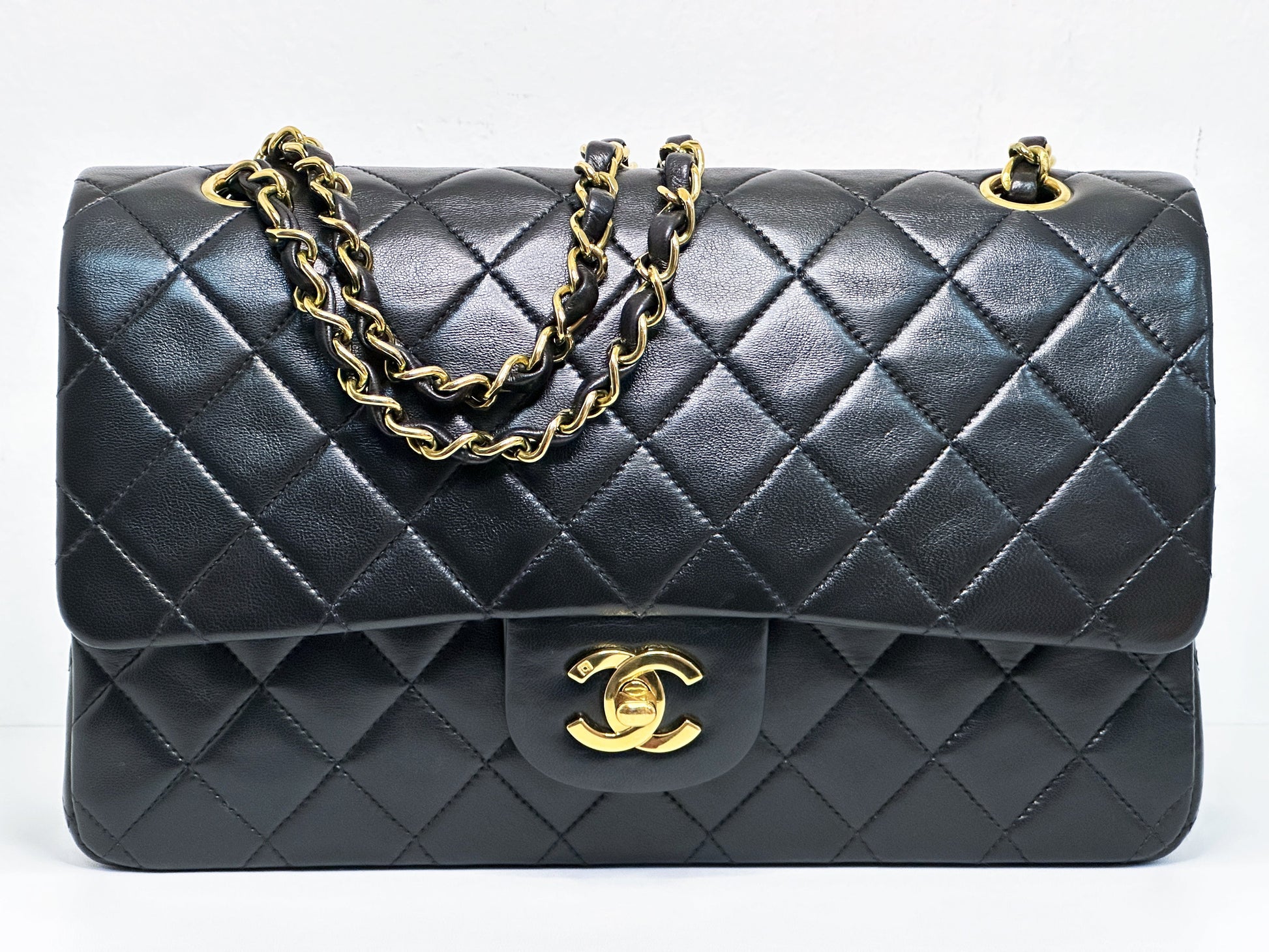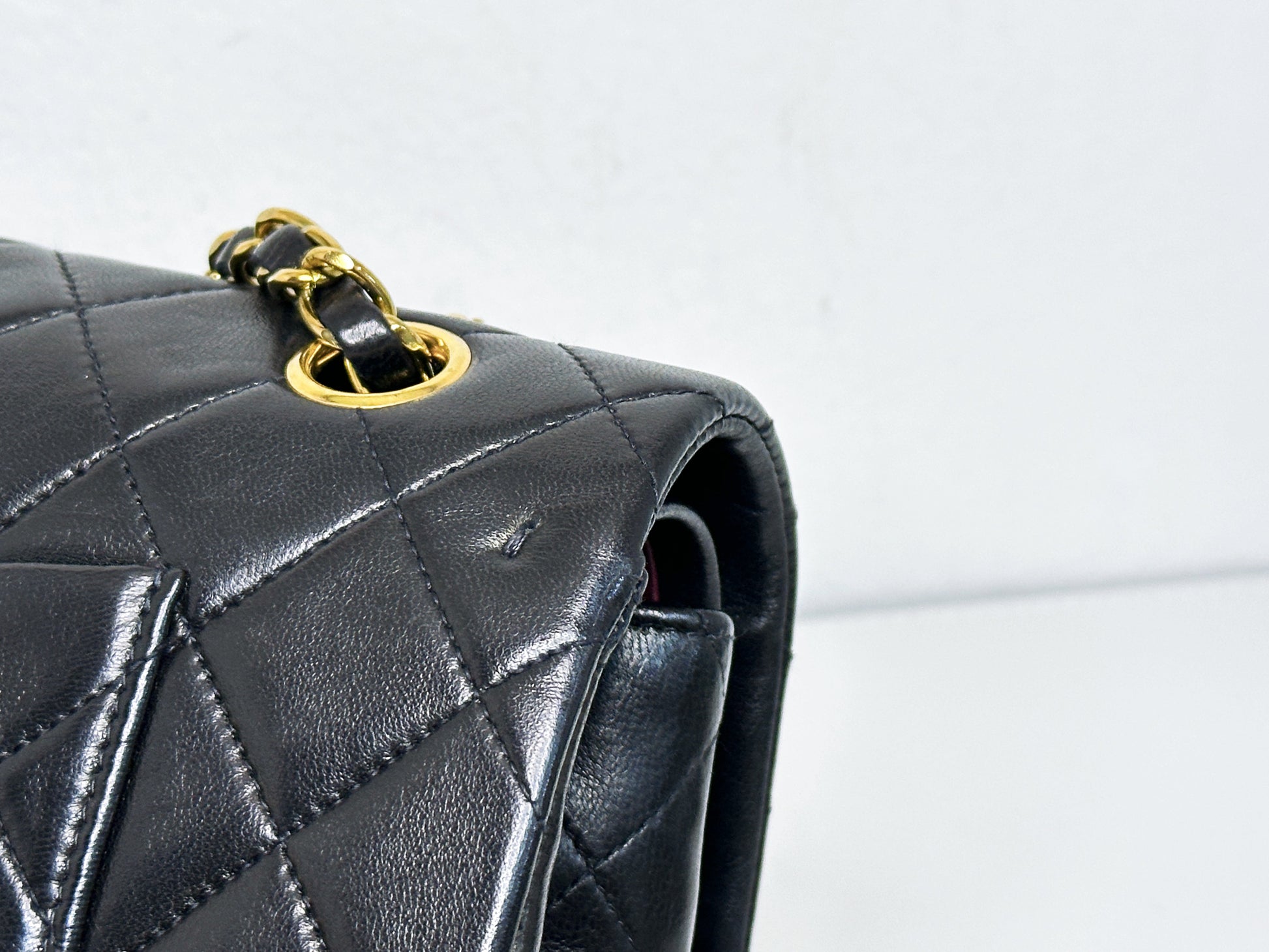 Chanel Vintage Black Quilted Lambskin Medium Classic Double Flap Bag 2843 holo card