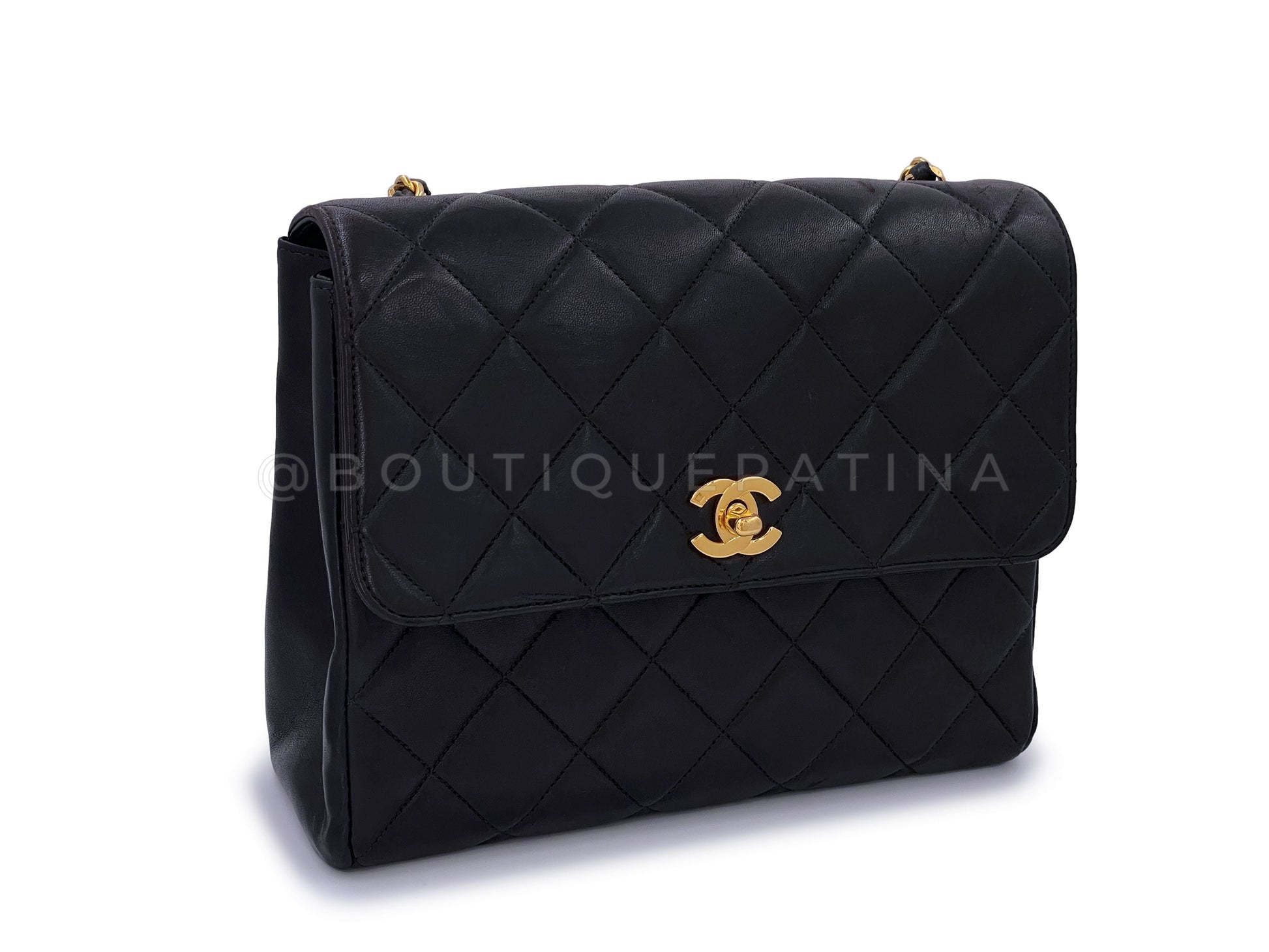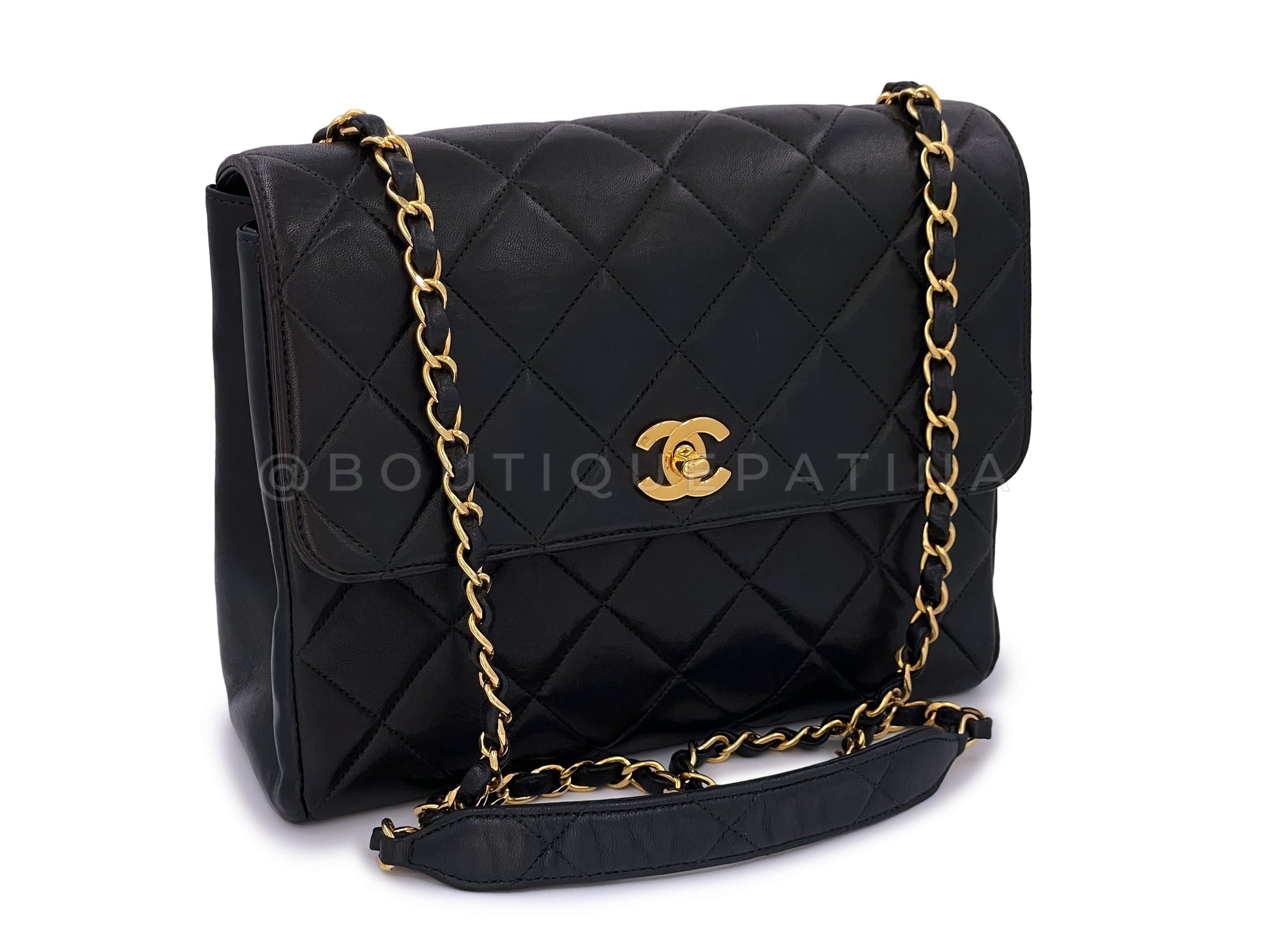 Chanel Vintage Black Square Medium Crossbody Flap Bag 24k GHW Lambskin
