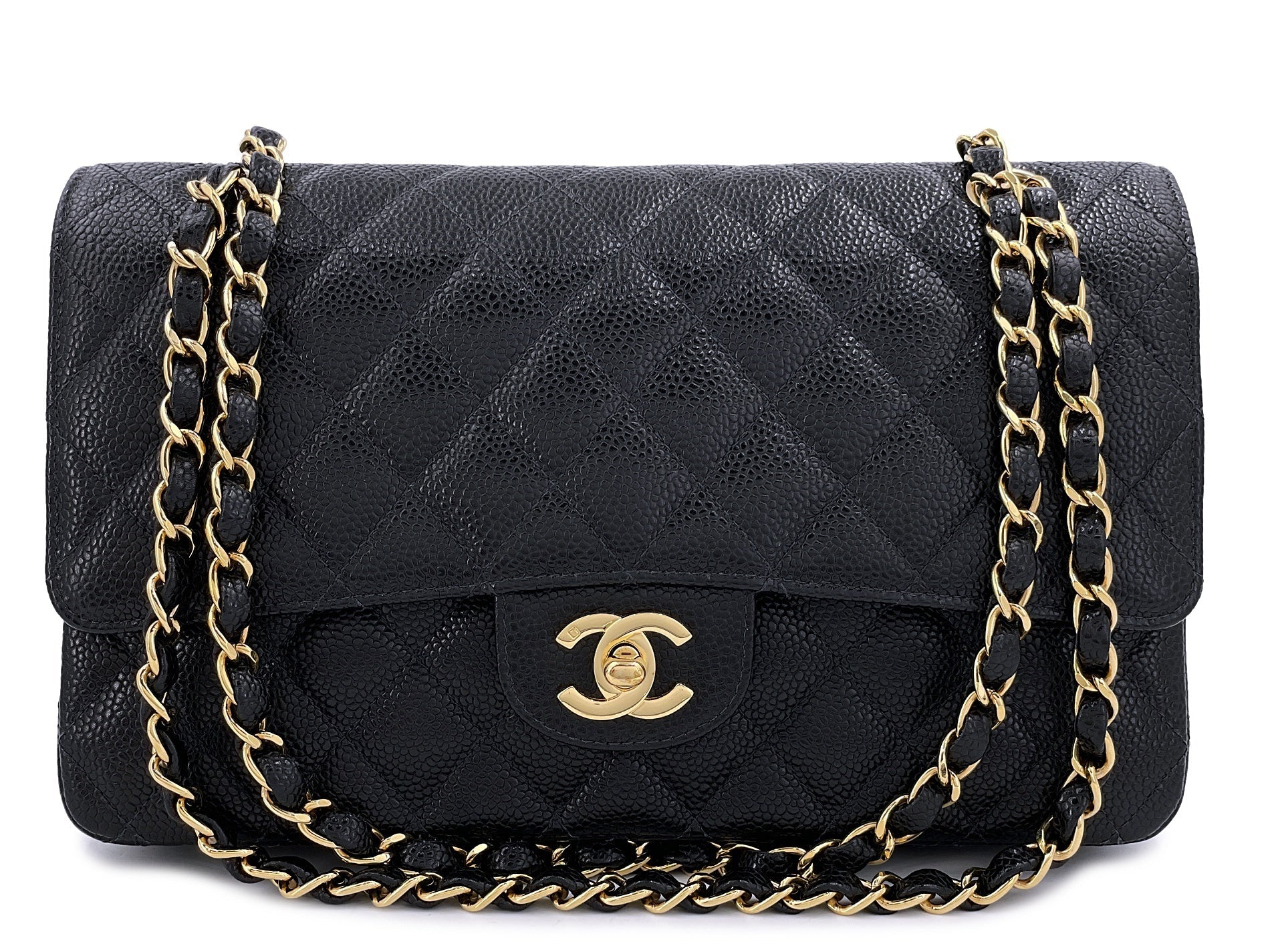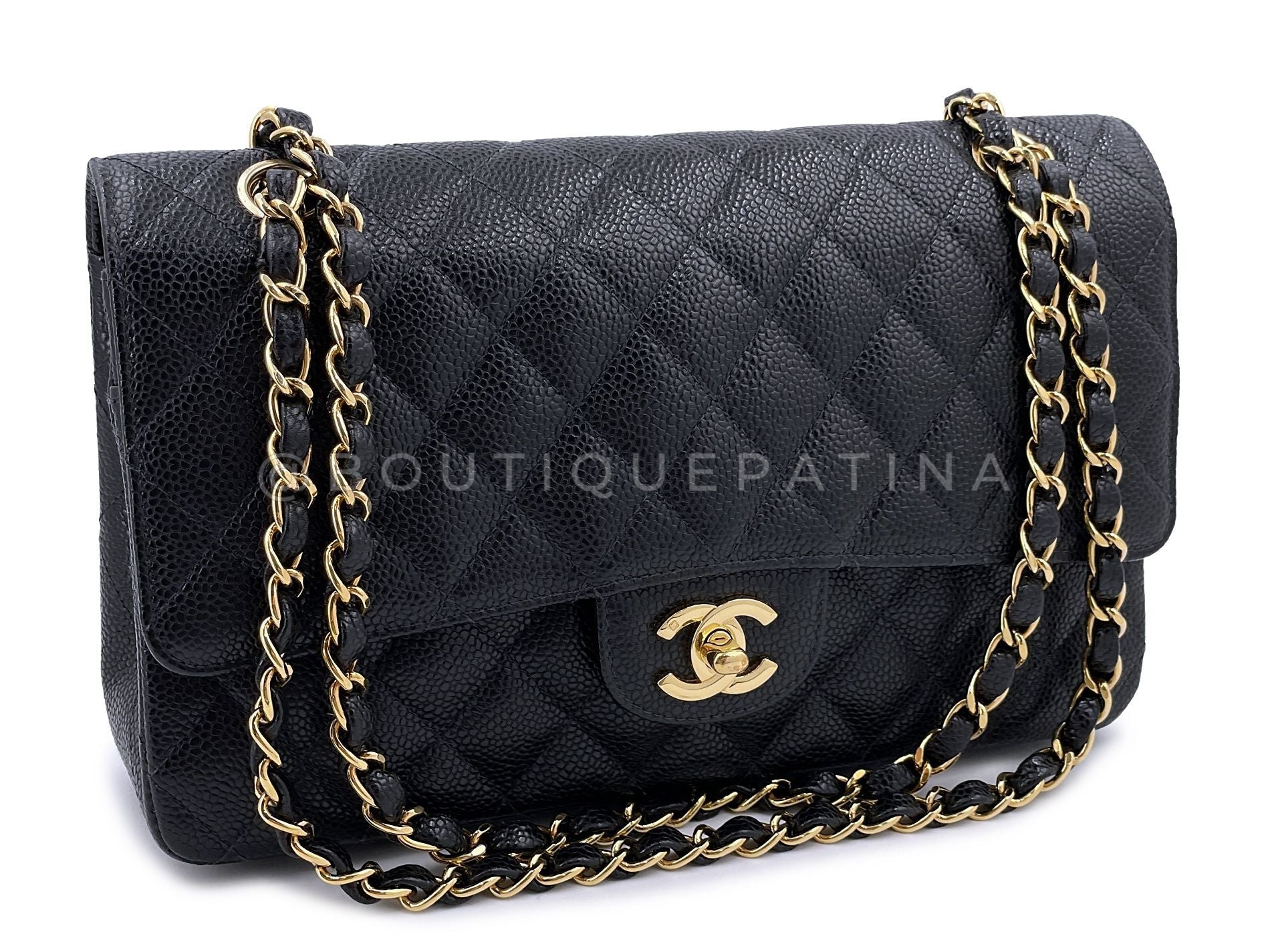 Chanel Vintage Caviar Medium Classic Flap Bag Black 24k GHW 2004 Double D3R