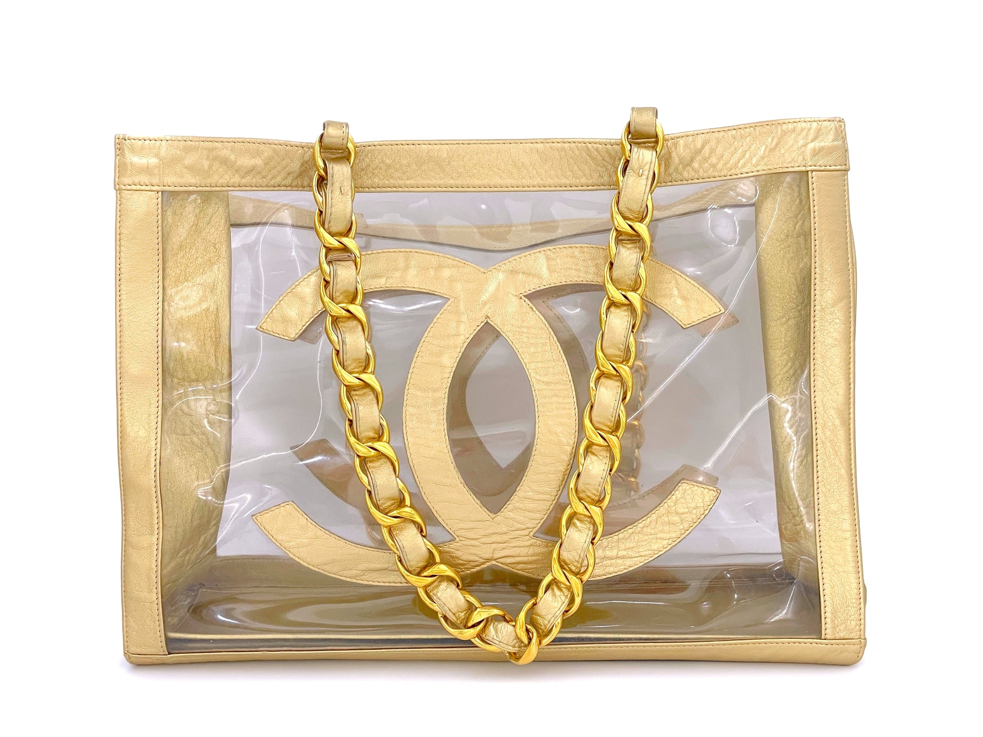 Chanel Vintage Clear Gold PVC Chunky Chain Tote Bag 24k GHW 9UE
