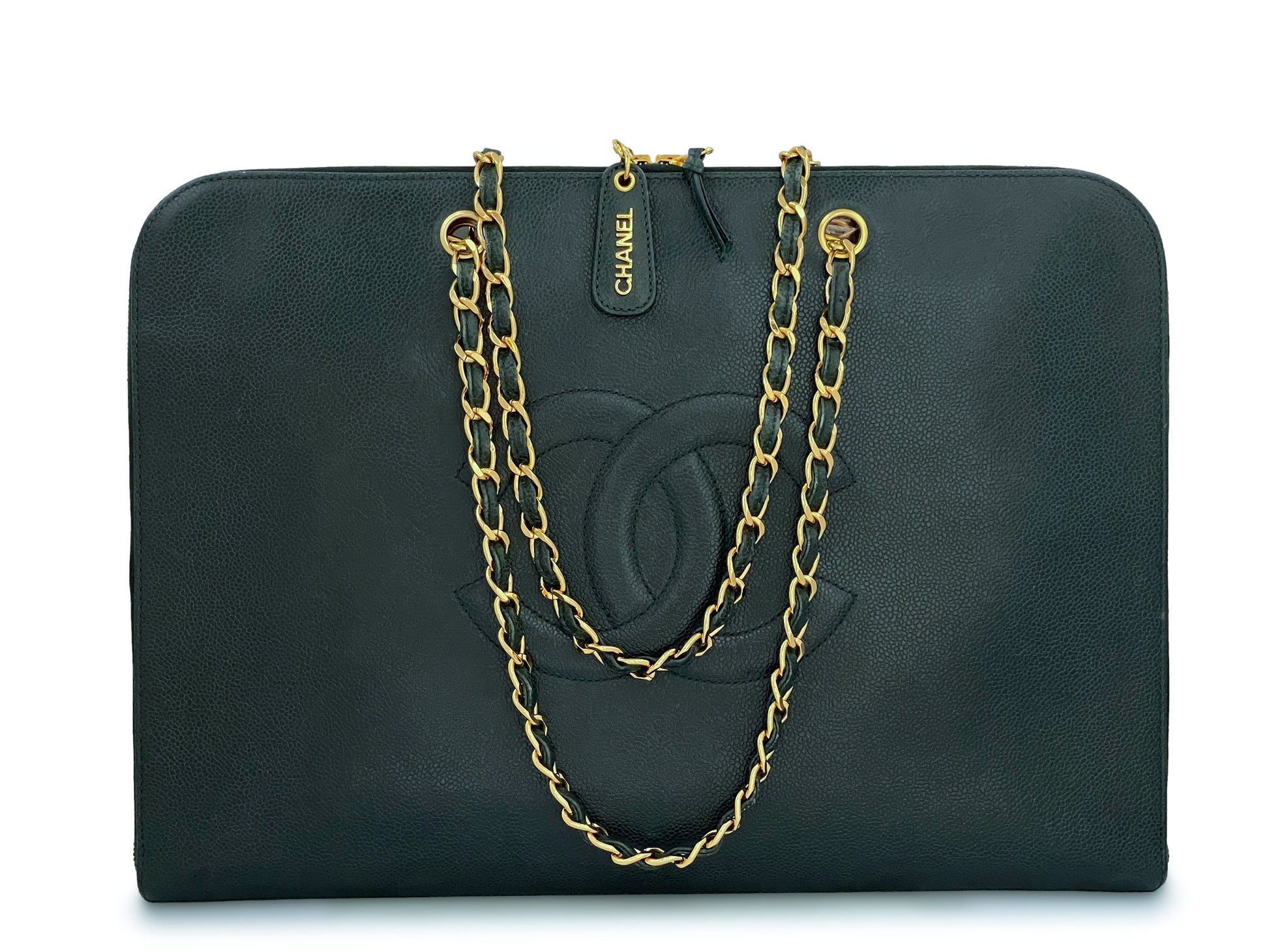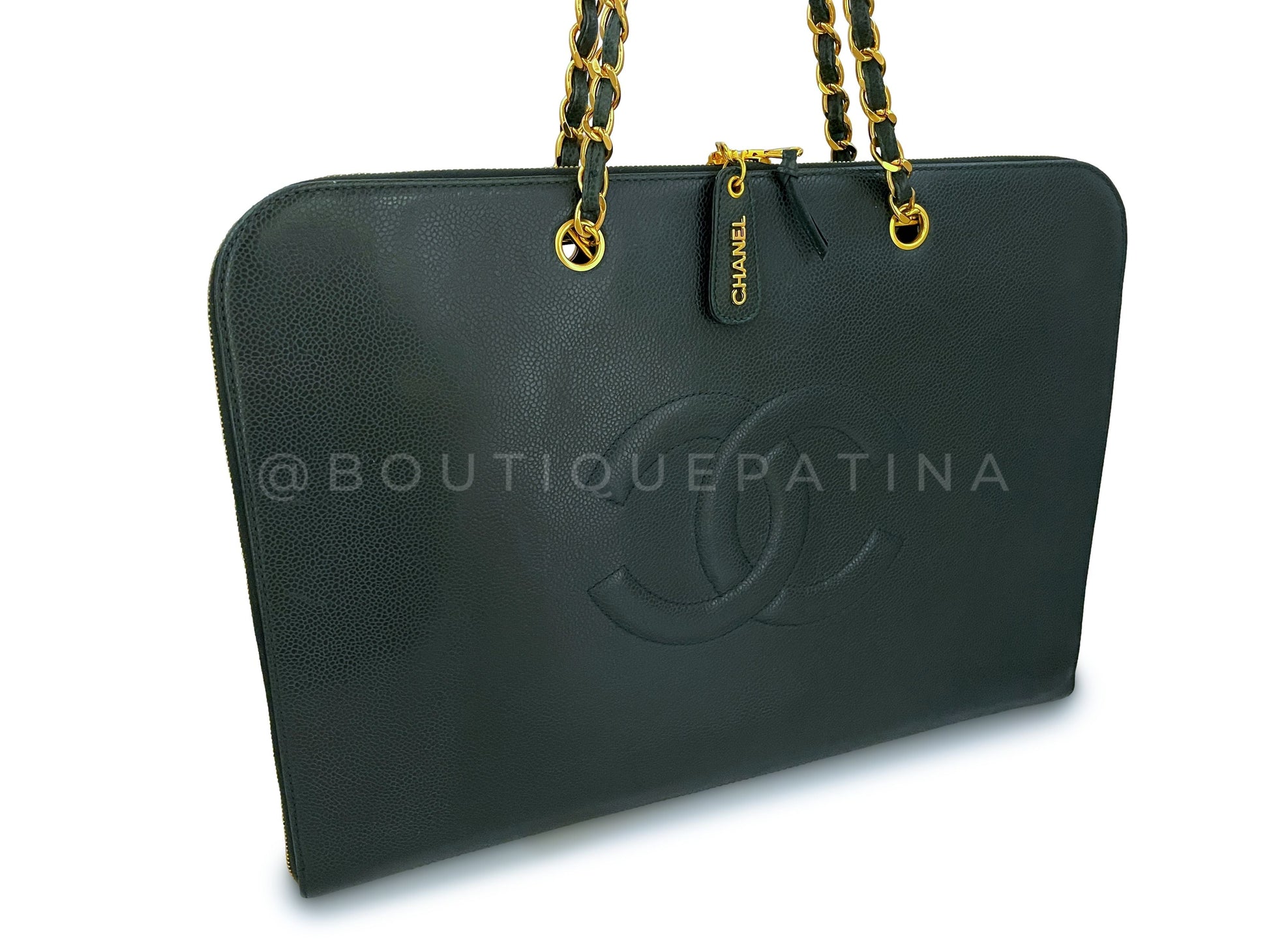 Chanel Vintage Dark Green Caviar Portfolio Laptop Work Tote Bag 24k GHW