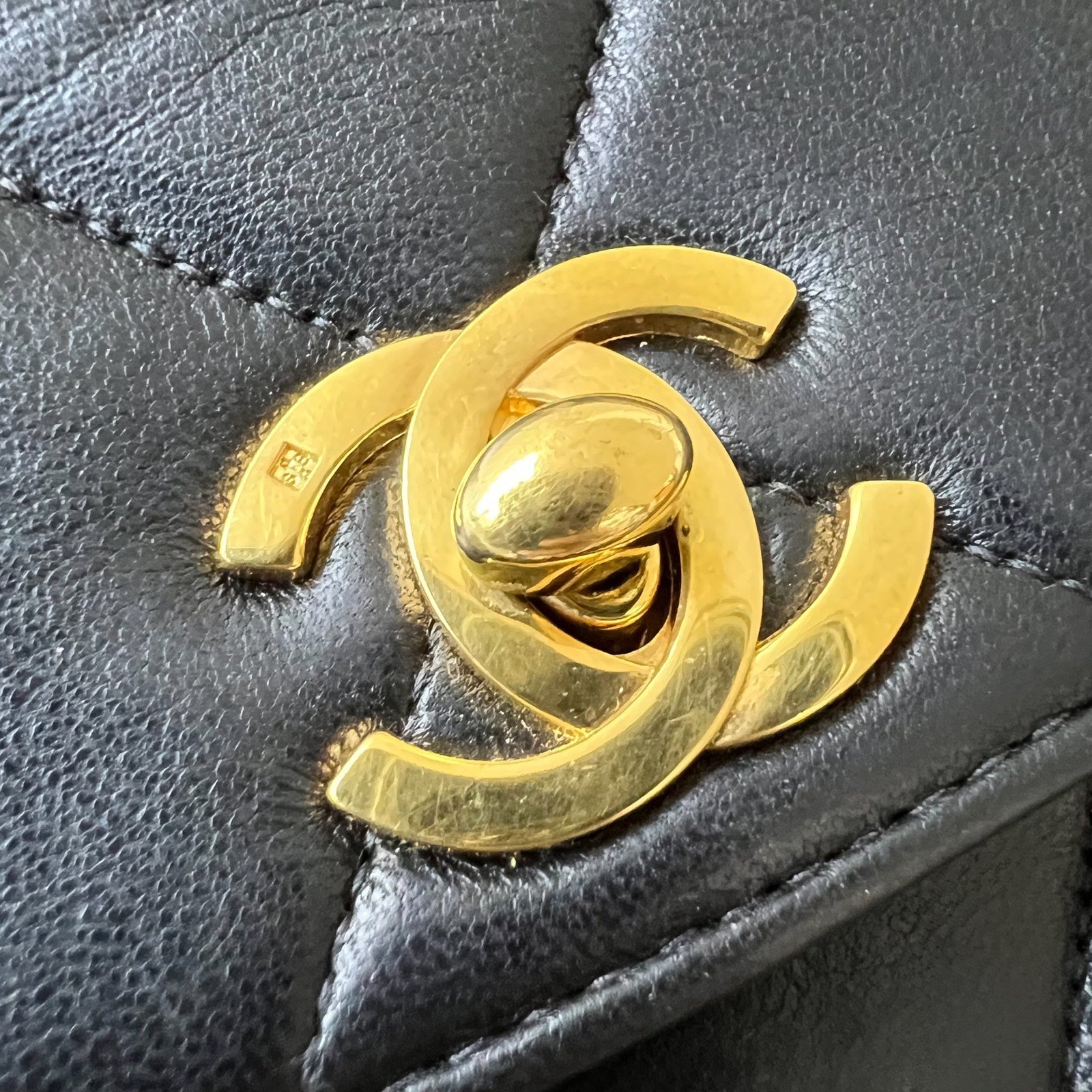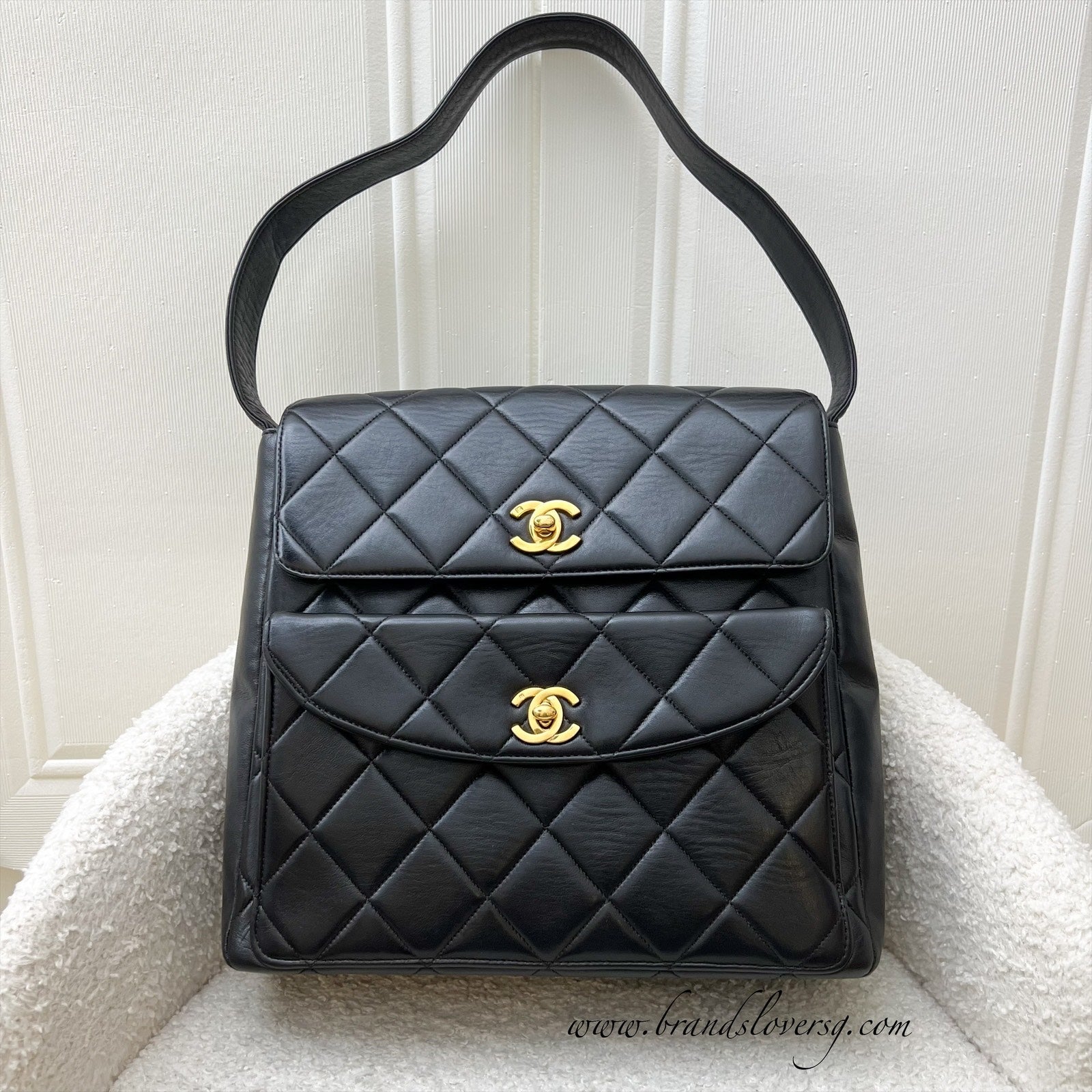 Chanel Vintage Double Pocket Shoulder Bag in Black Lambskin and 24K GHW