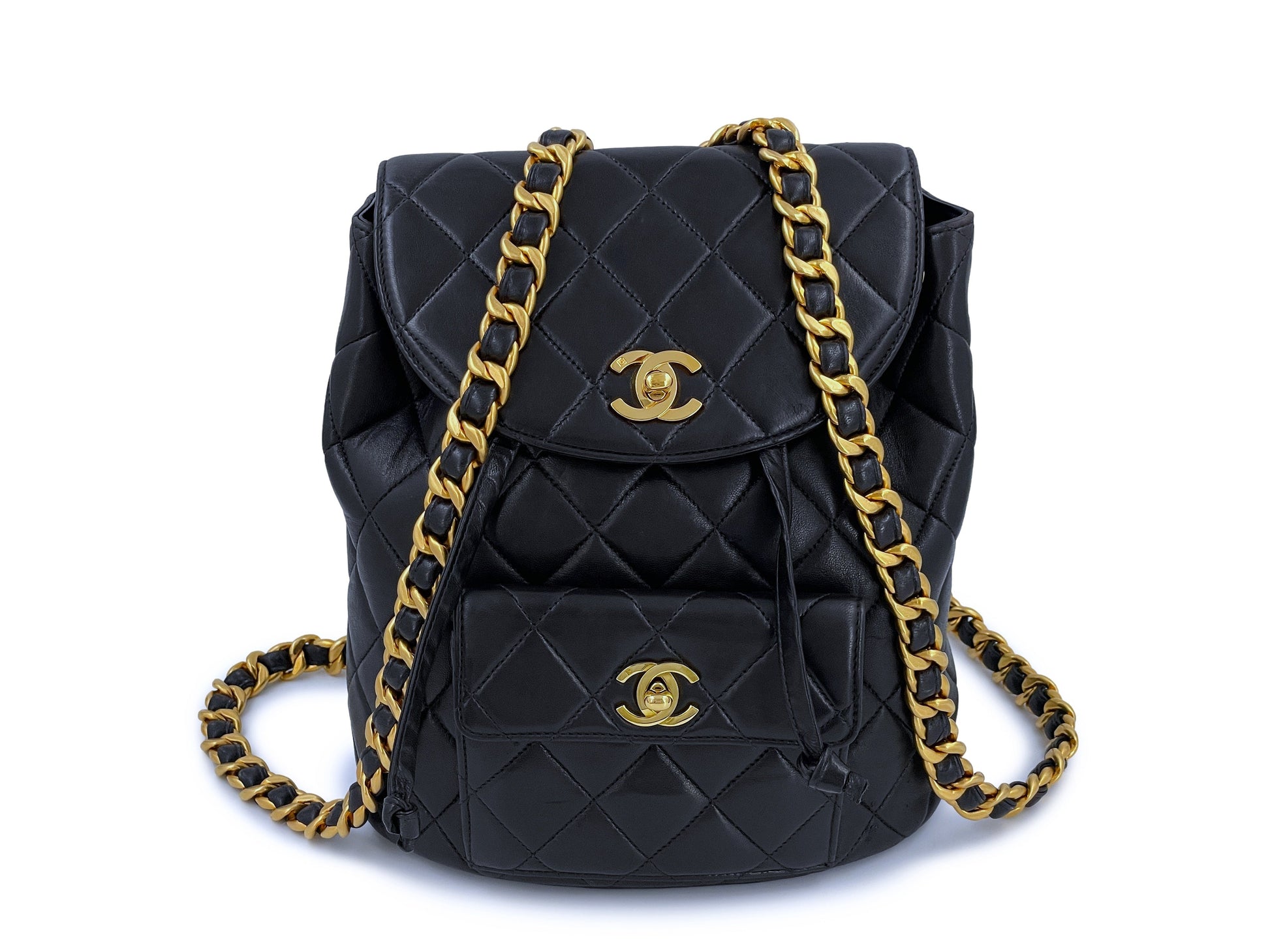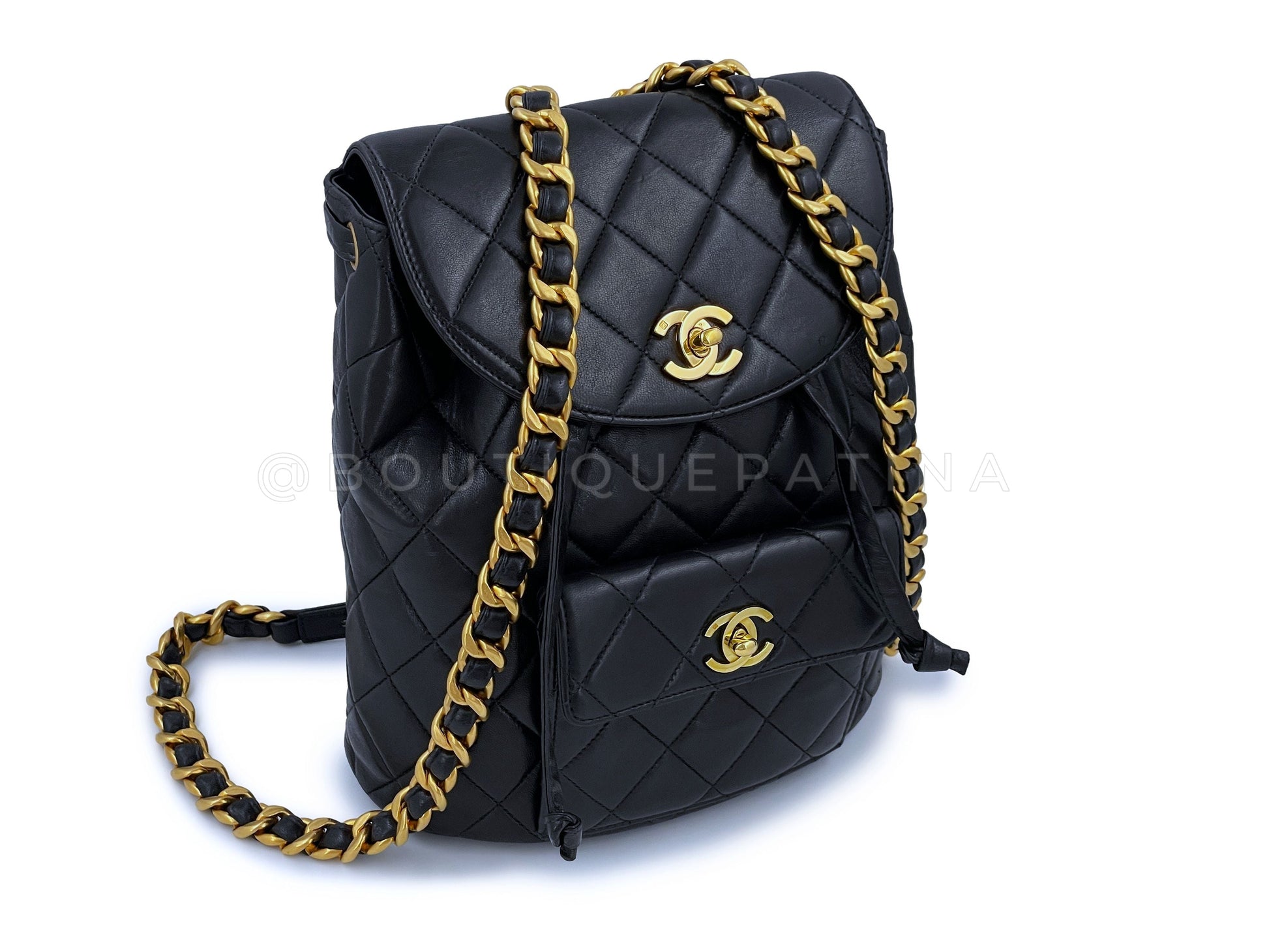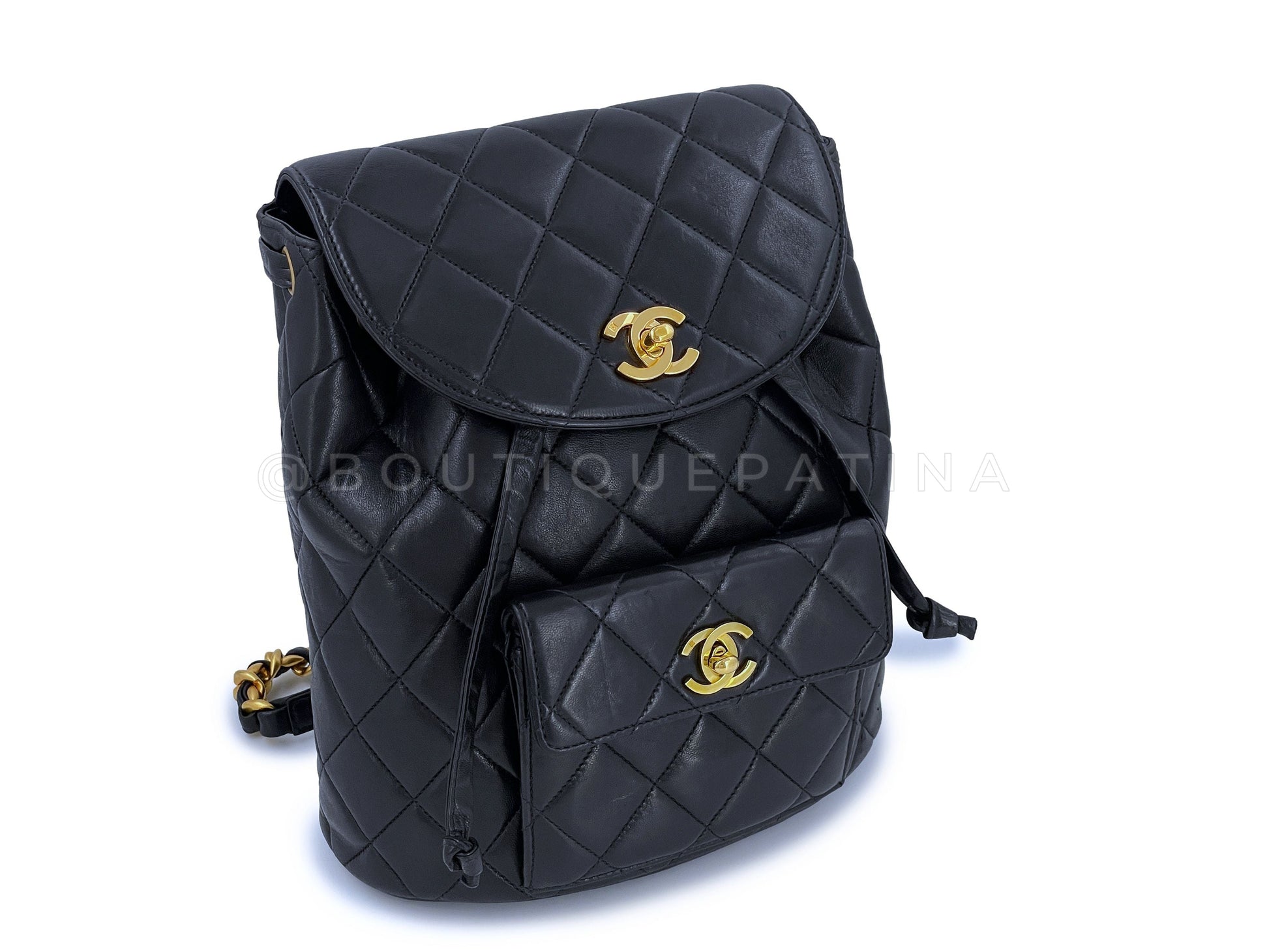 Chanel Vintage Duma Backpack Bag 24k GHW Black Lambskin