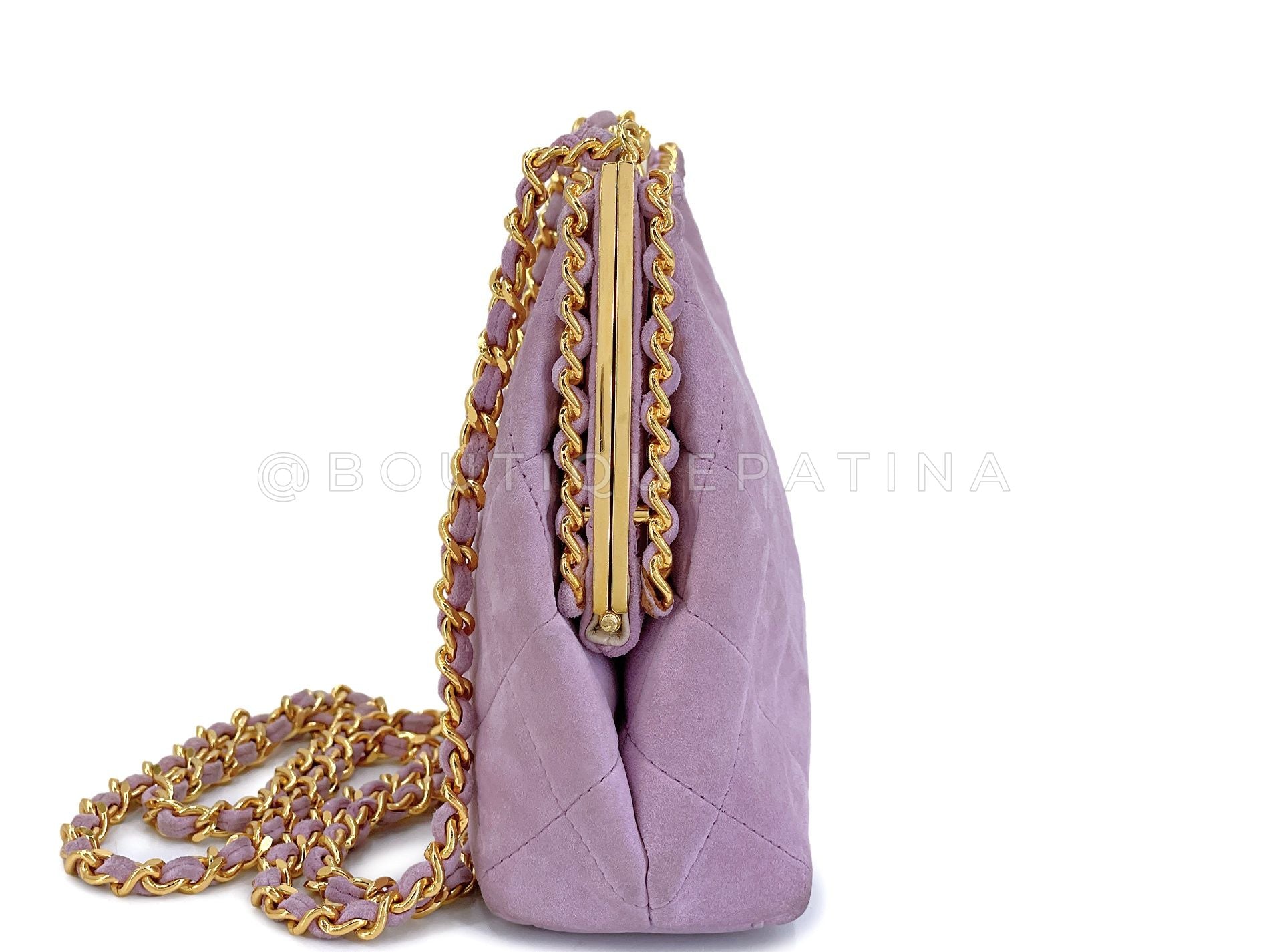Chanel Vintage Lilac Suede Kisslock Clutch Bag 24k GHW 1995 Pink Purple XFG