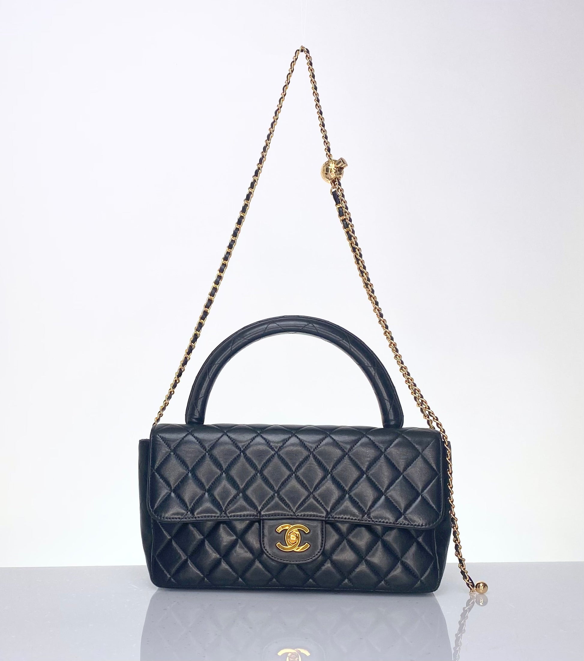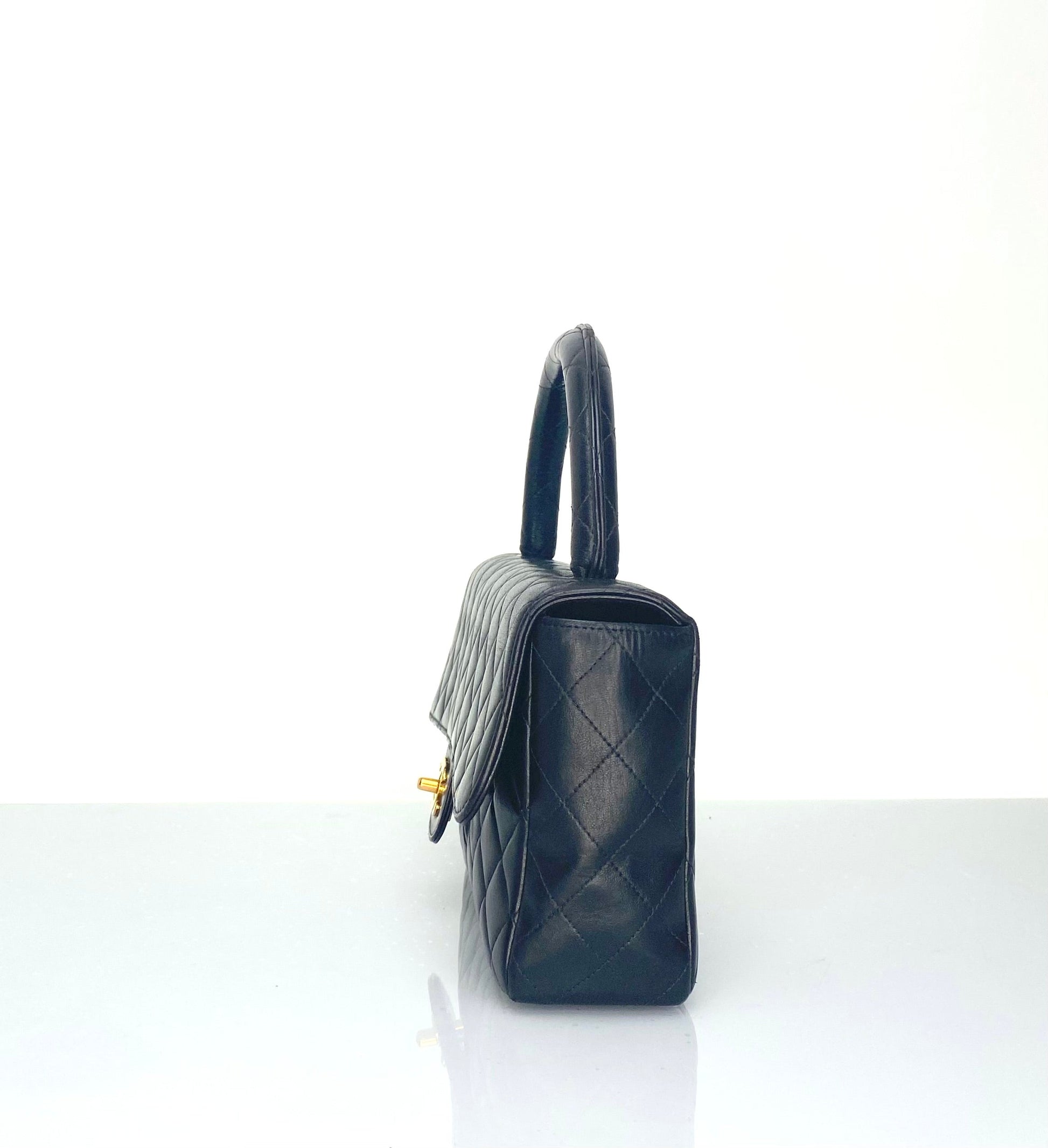 Black Lambskin Leather Quilted with 24k Gold Plated CC Turnlock