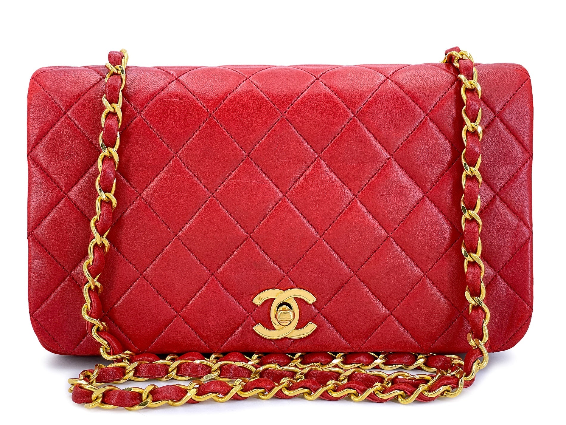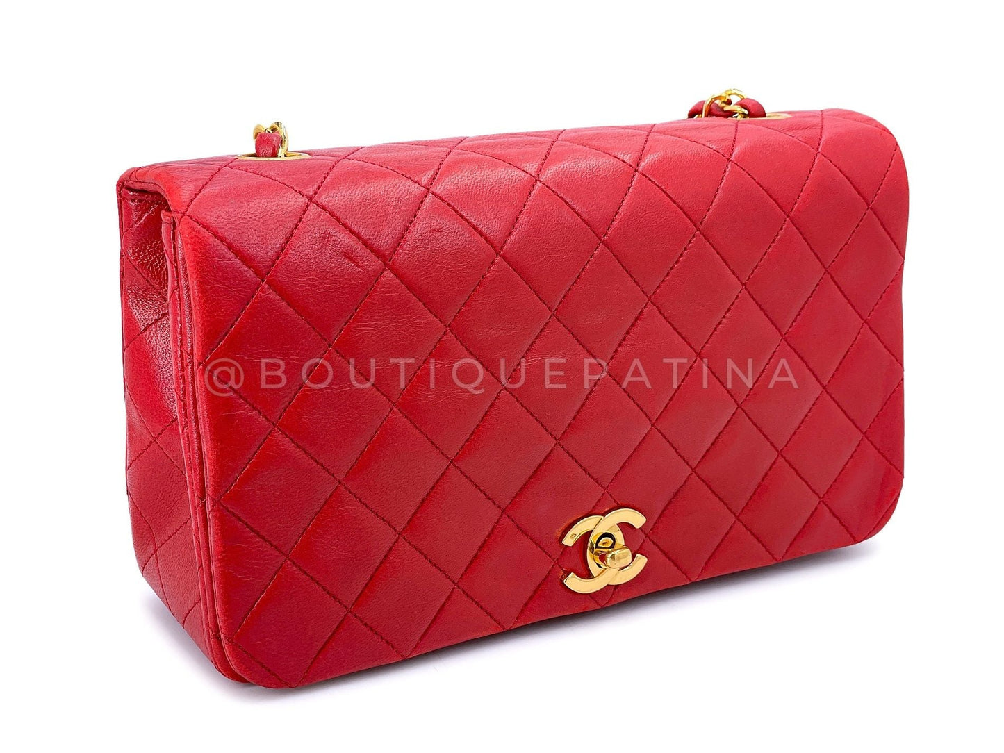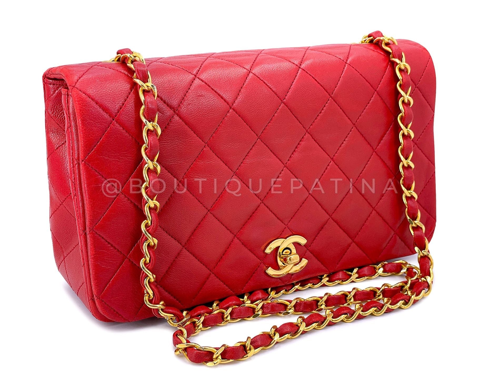 Chanel Vintage Red Full Flap Bag 1989 Quilted Lambskin 24k GHW Lambskin