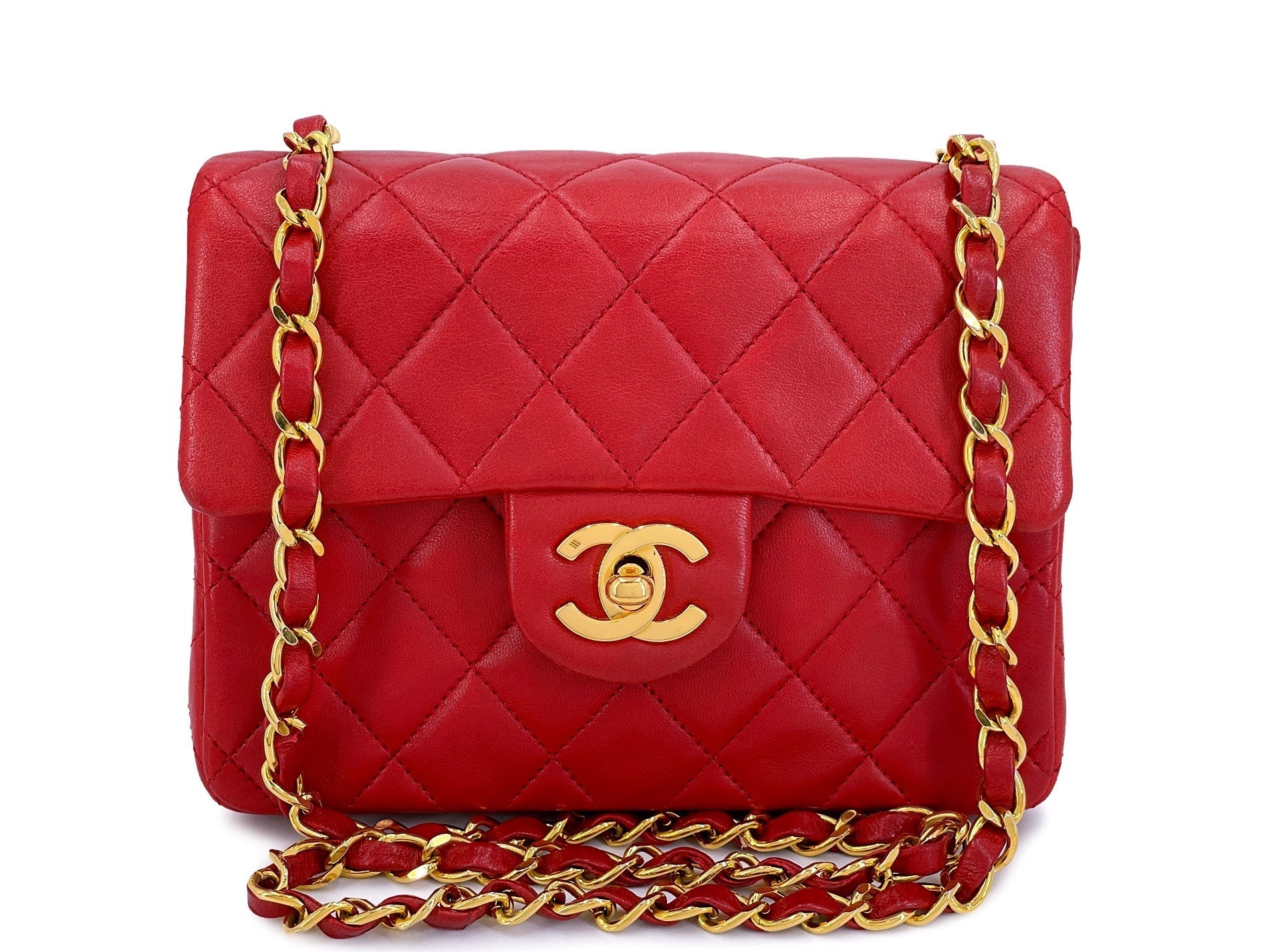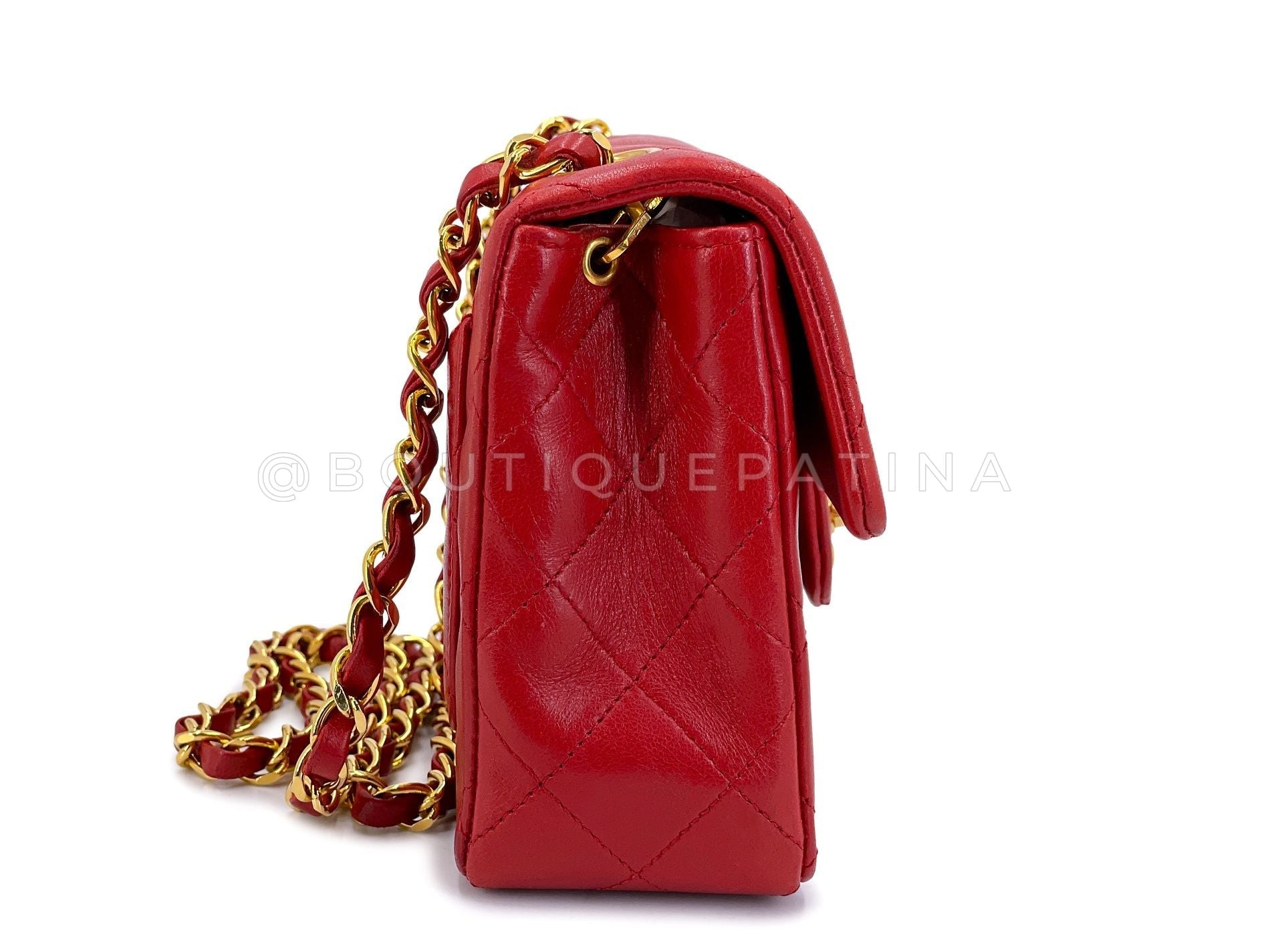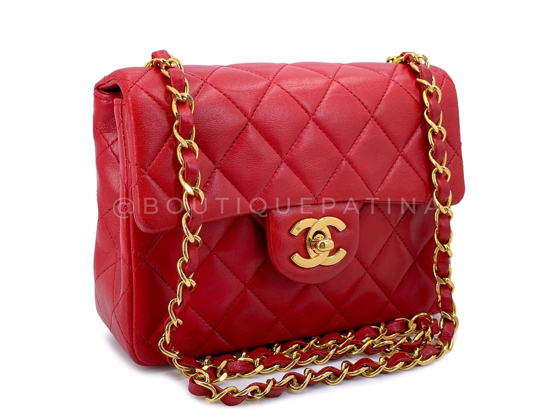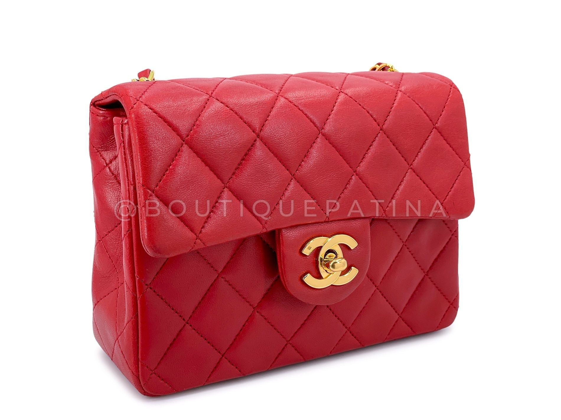 Chanel Vintage Red Square Mini Flap Bag 1989 24k GHW Lambskin Y0F