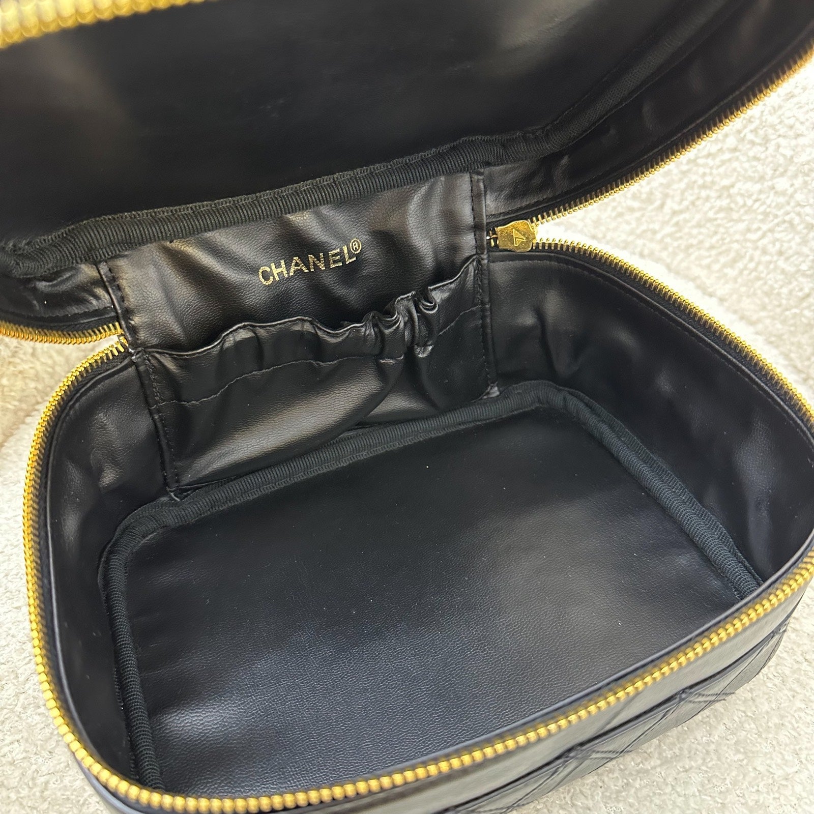 Chanel Vintage Travel Vanity Bag in Black Lambskin 24K GHW