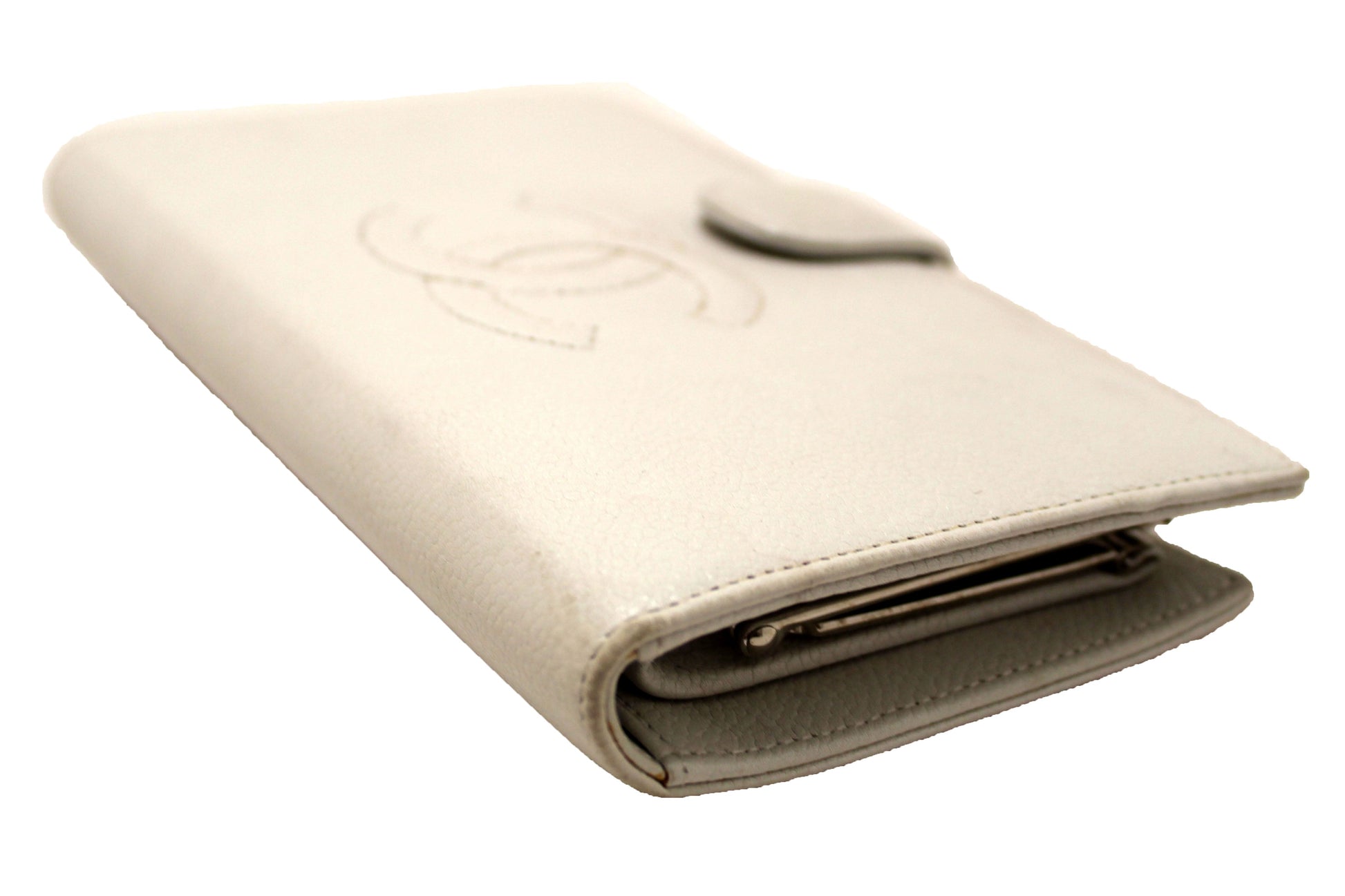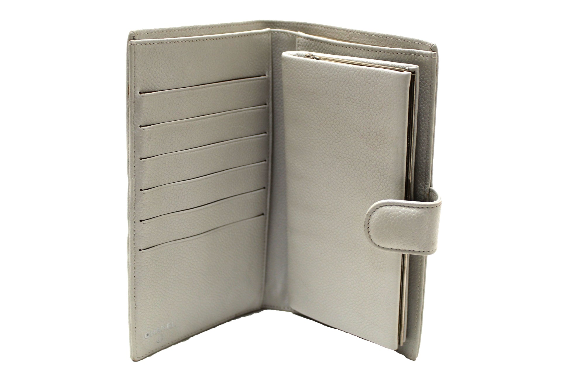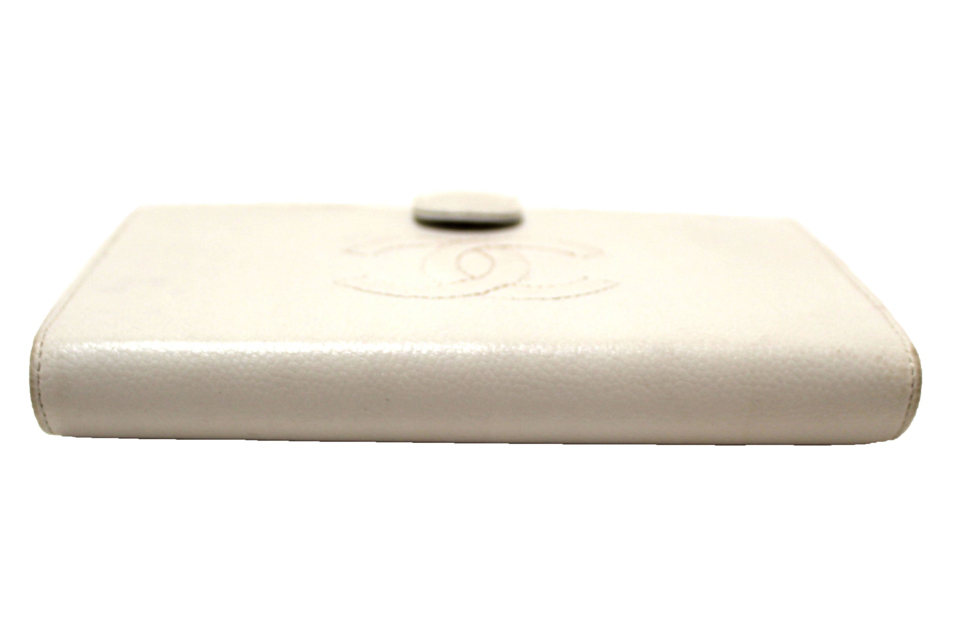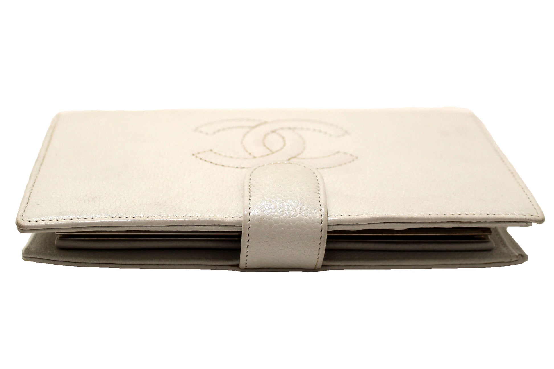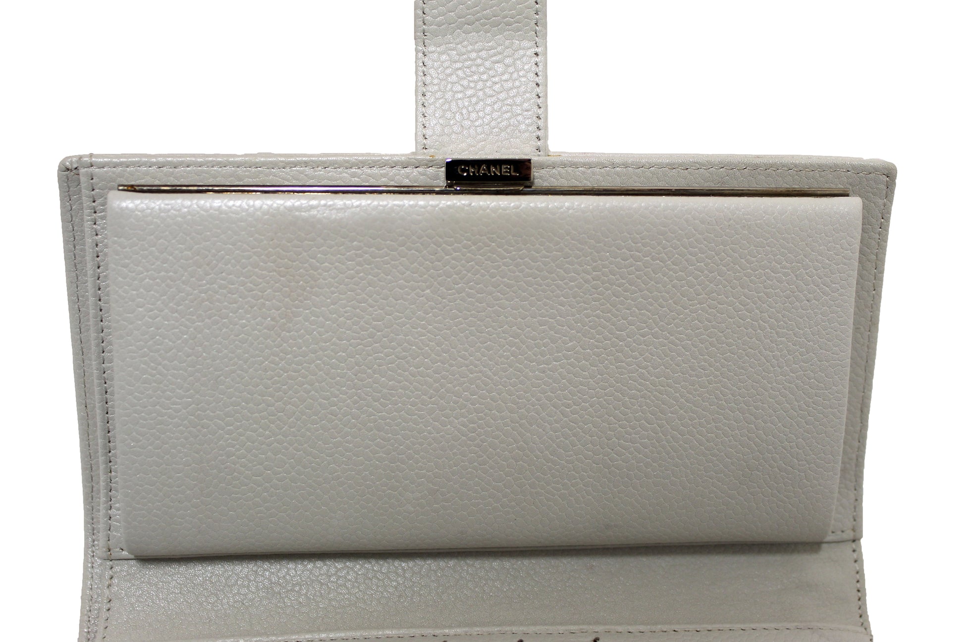 Chanel Vintage White Caviar CC Leather Classic Long Wallet