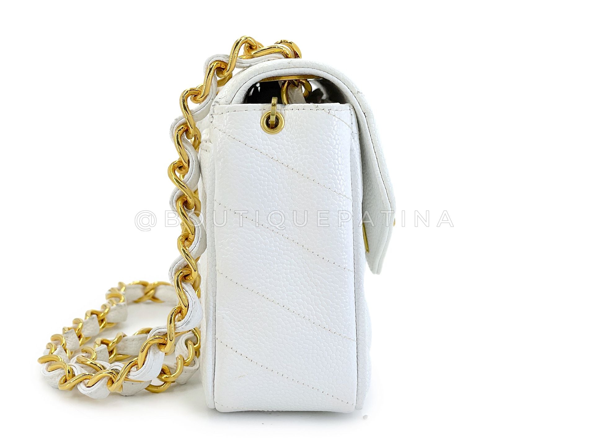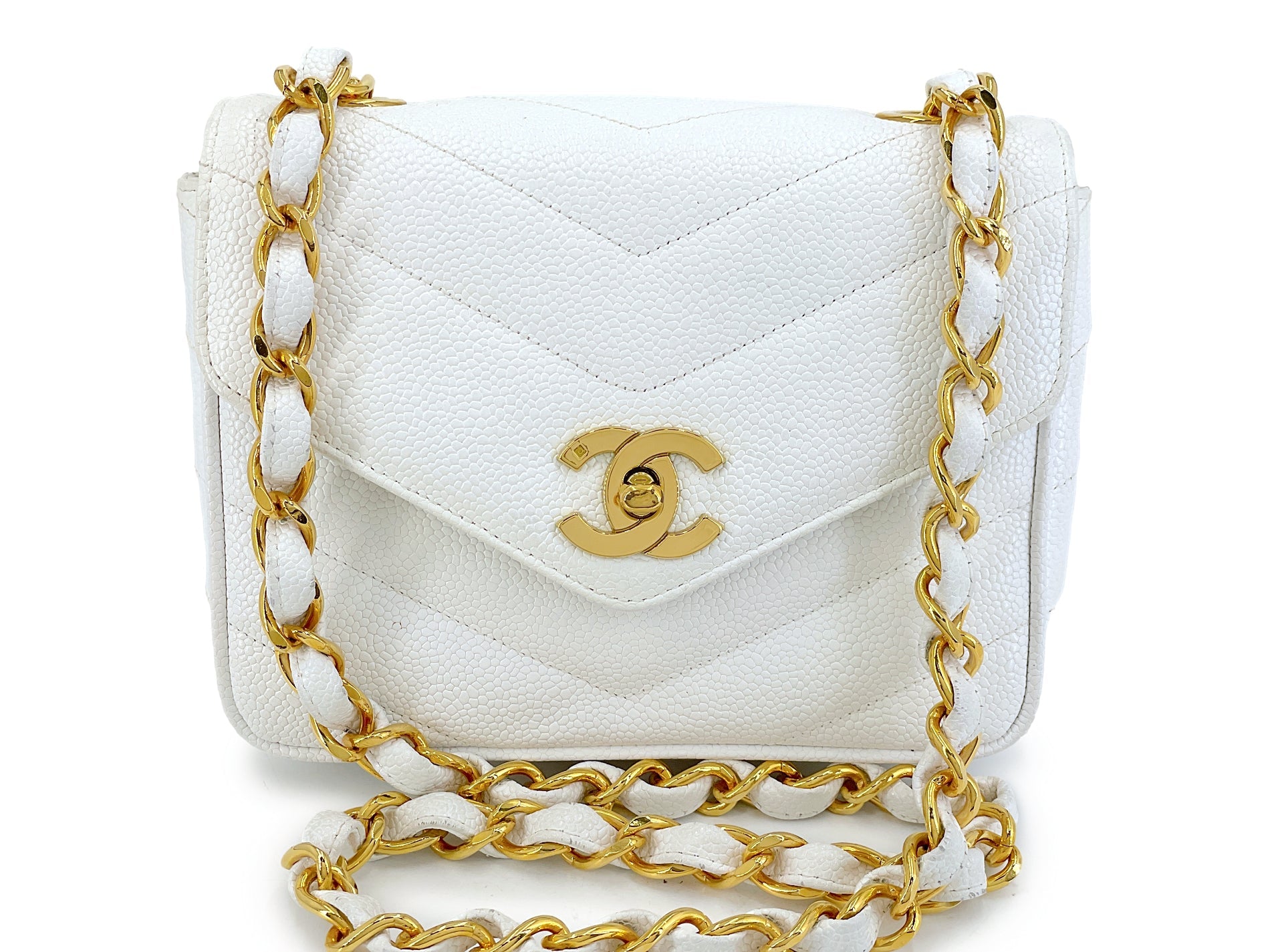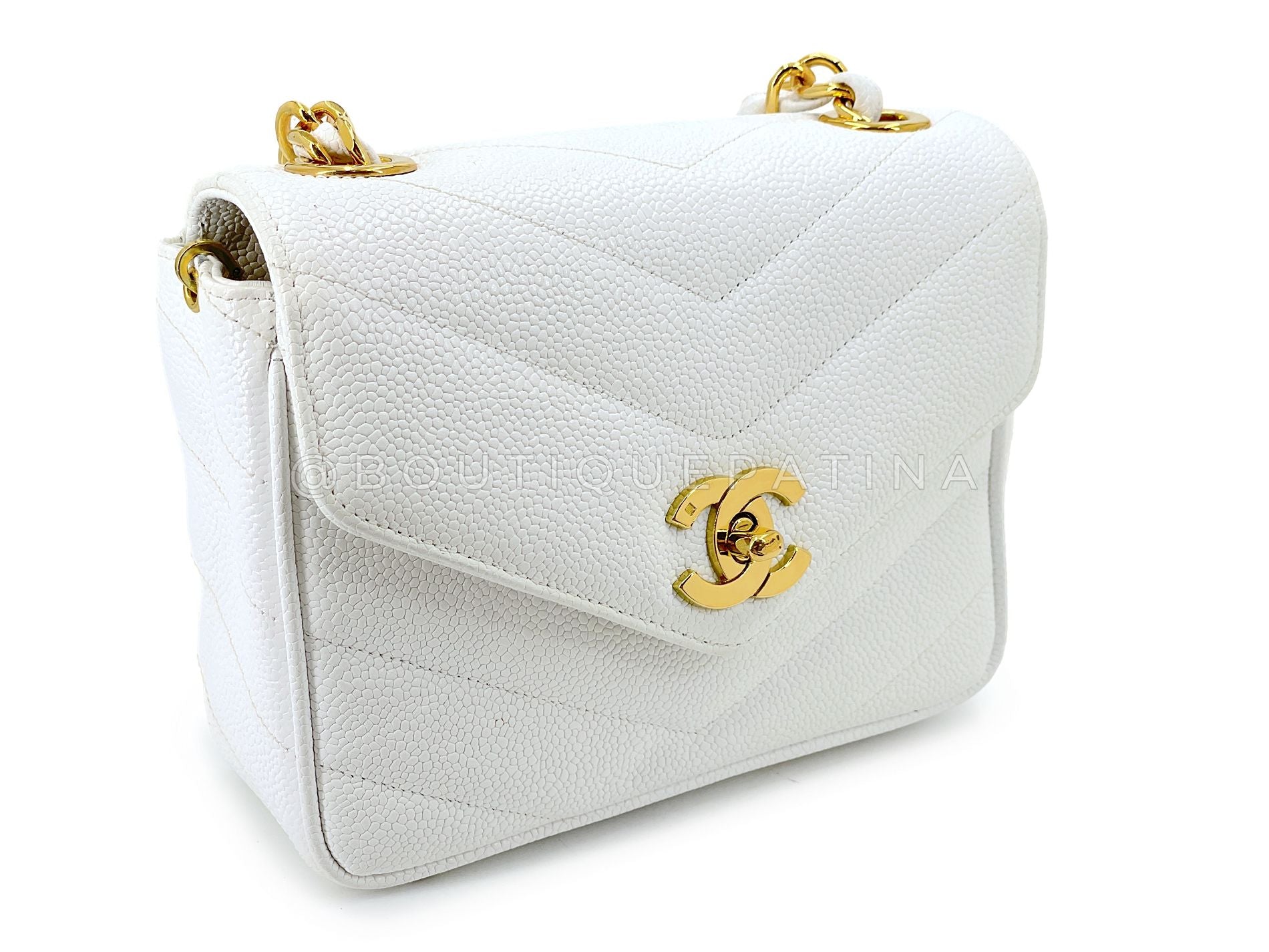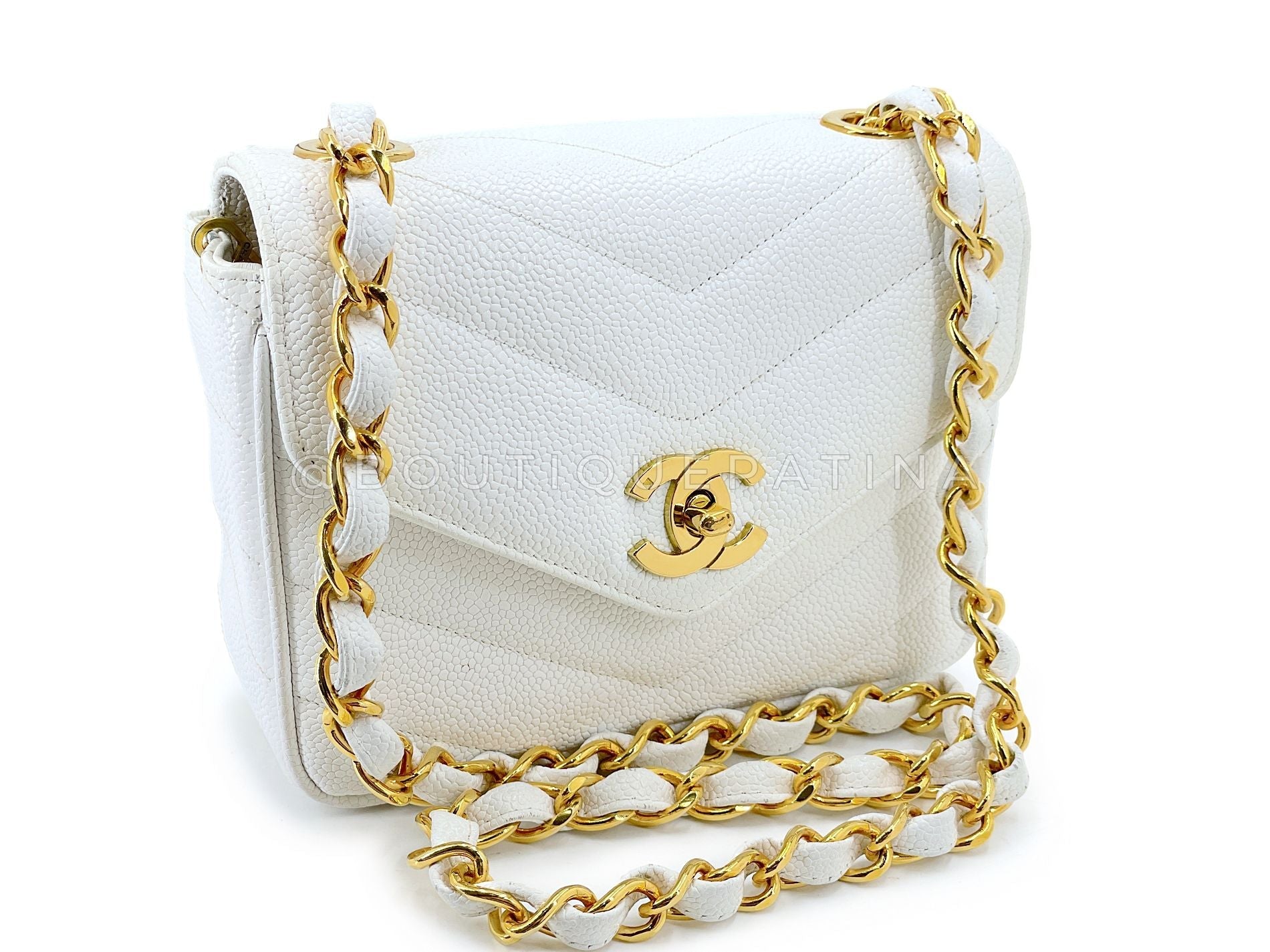 Chanel Vintage White Caviar Mini Flap Bag Chevron 24k GHW 2SG