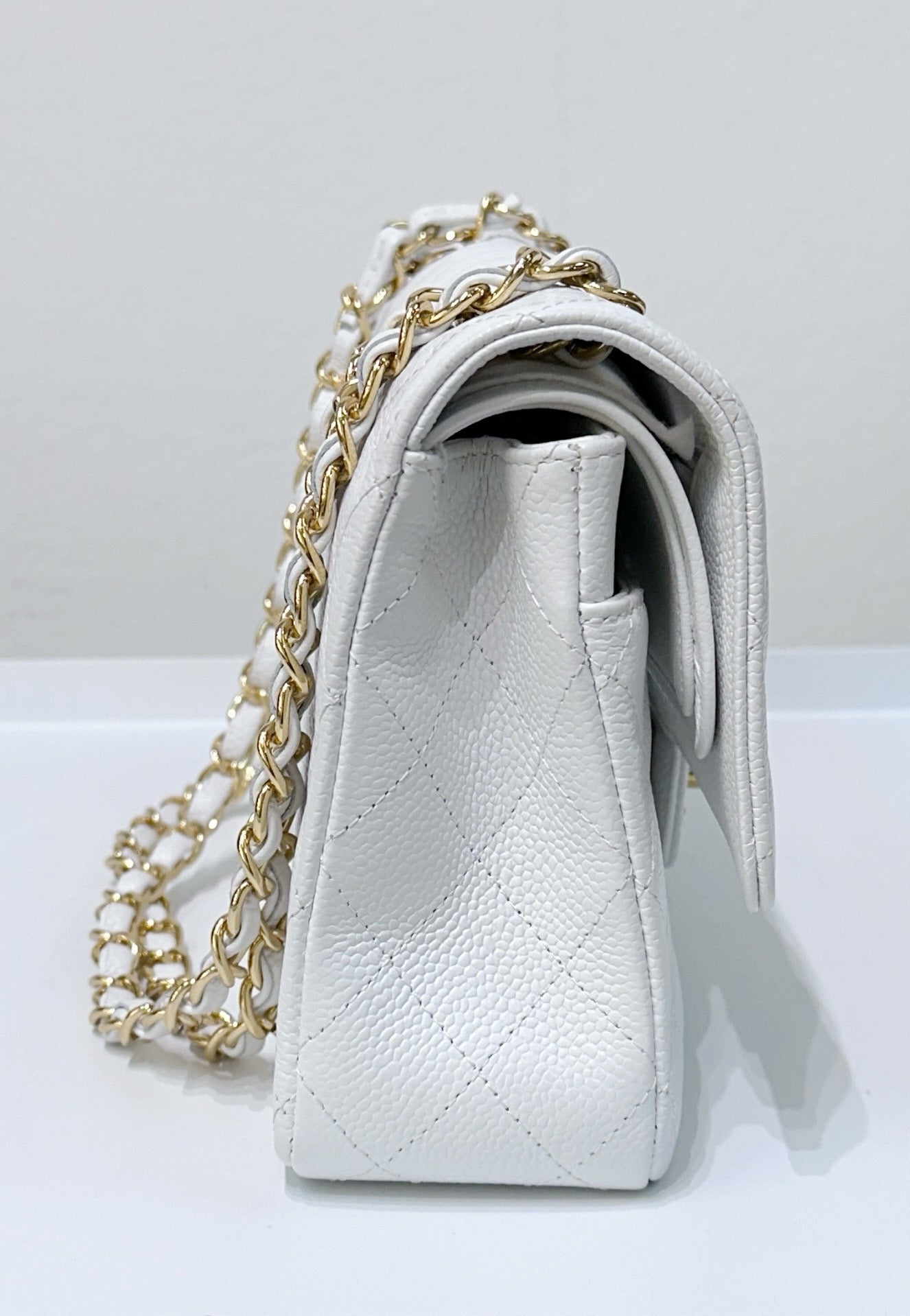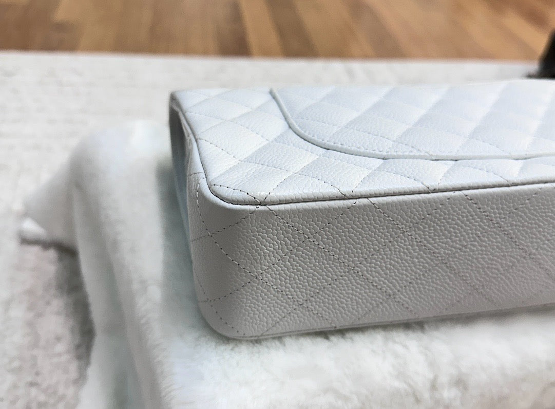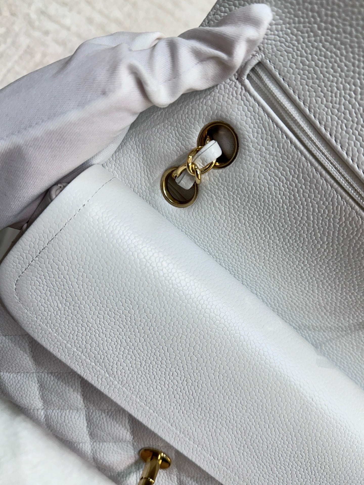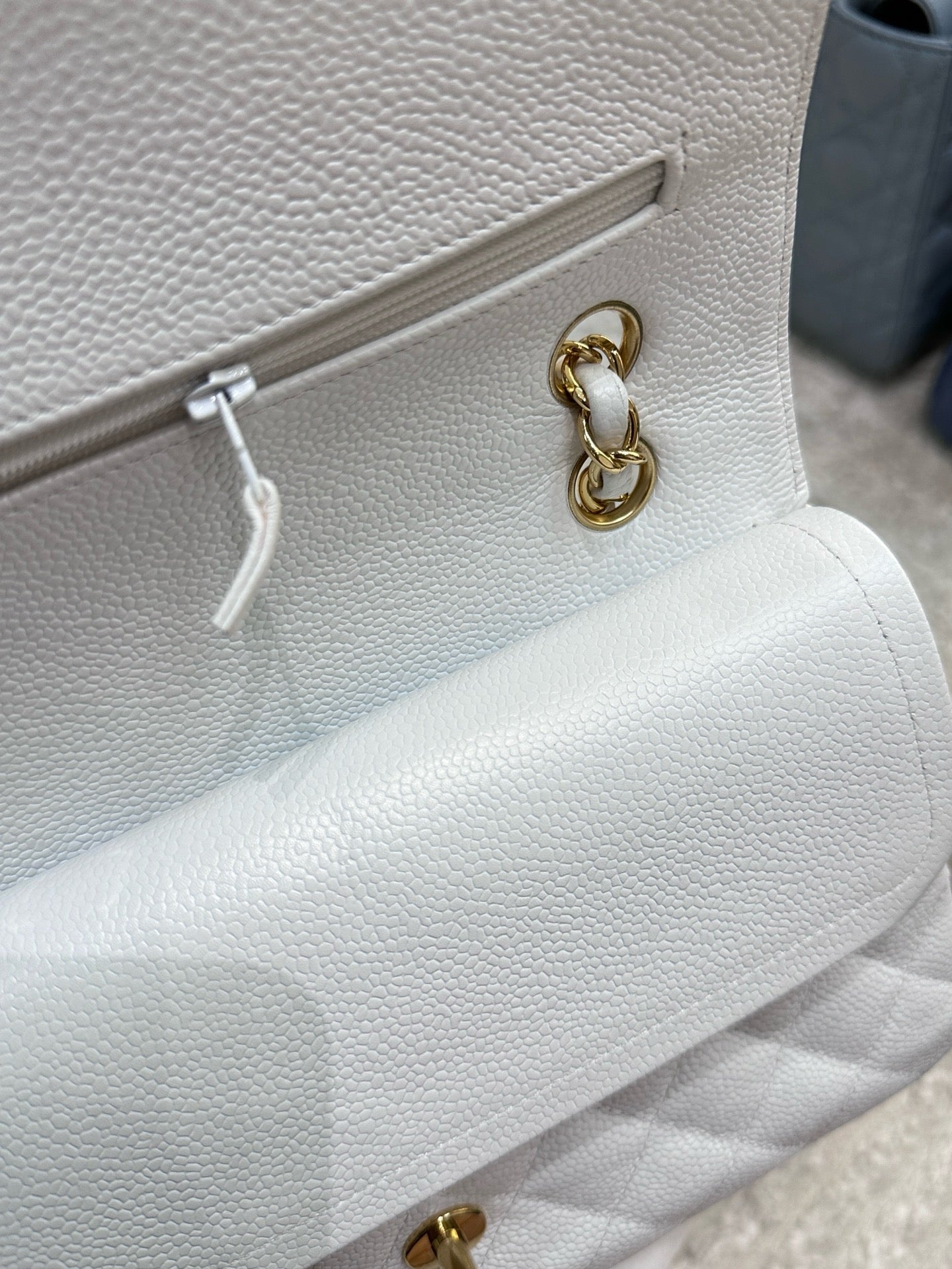 Chanel White Caviar Medium Classic 2.55 Double Flap Bag