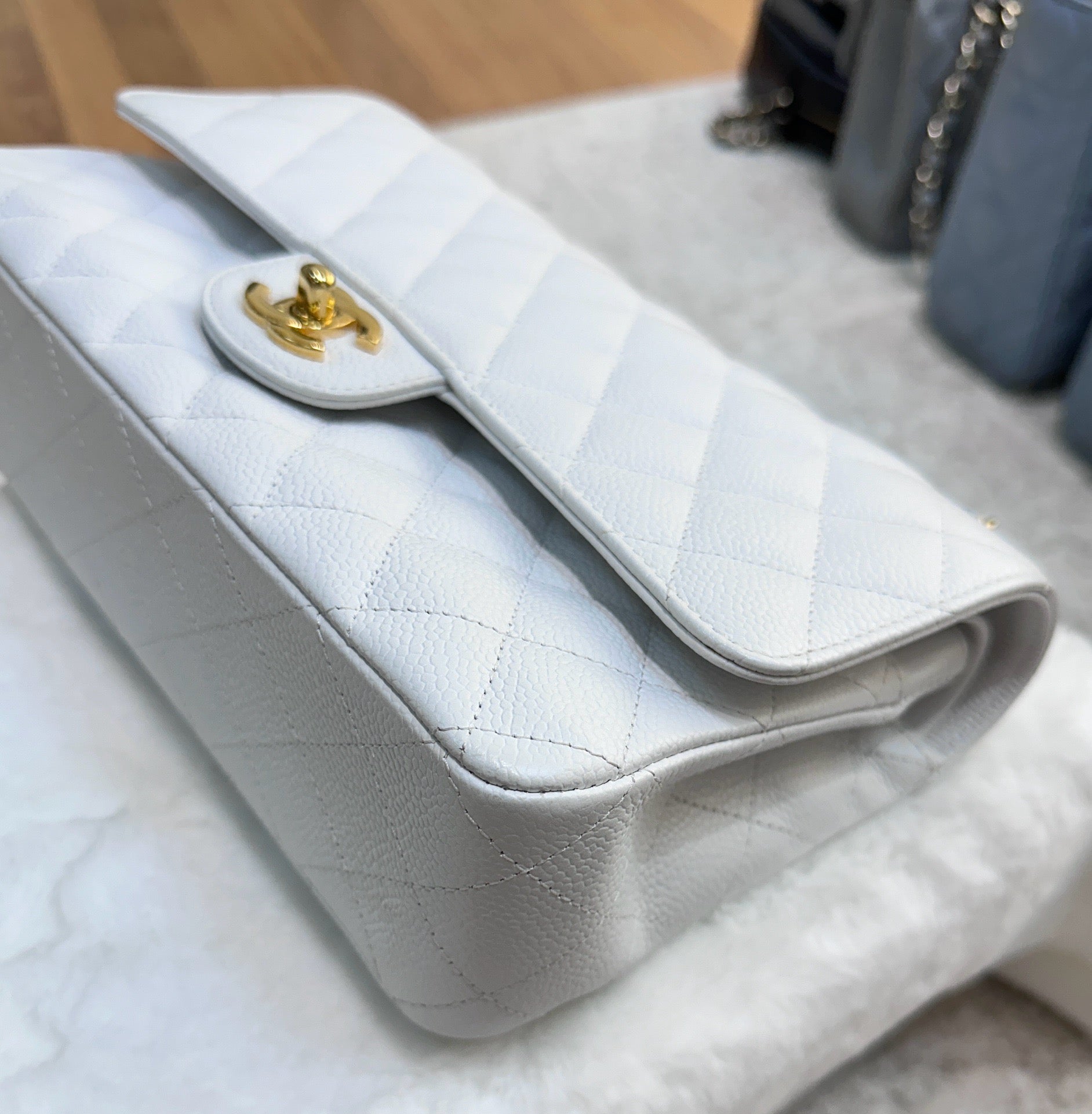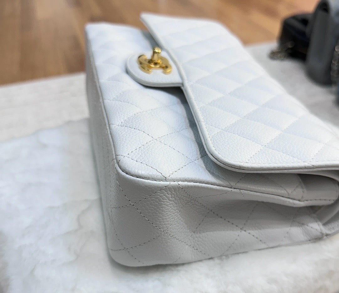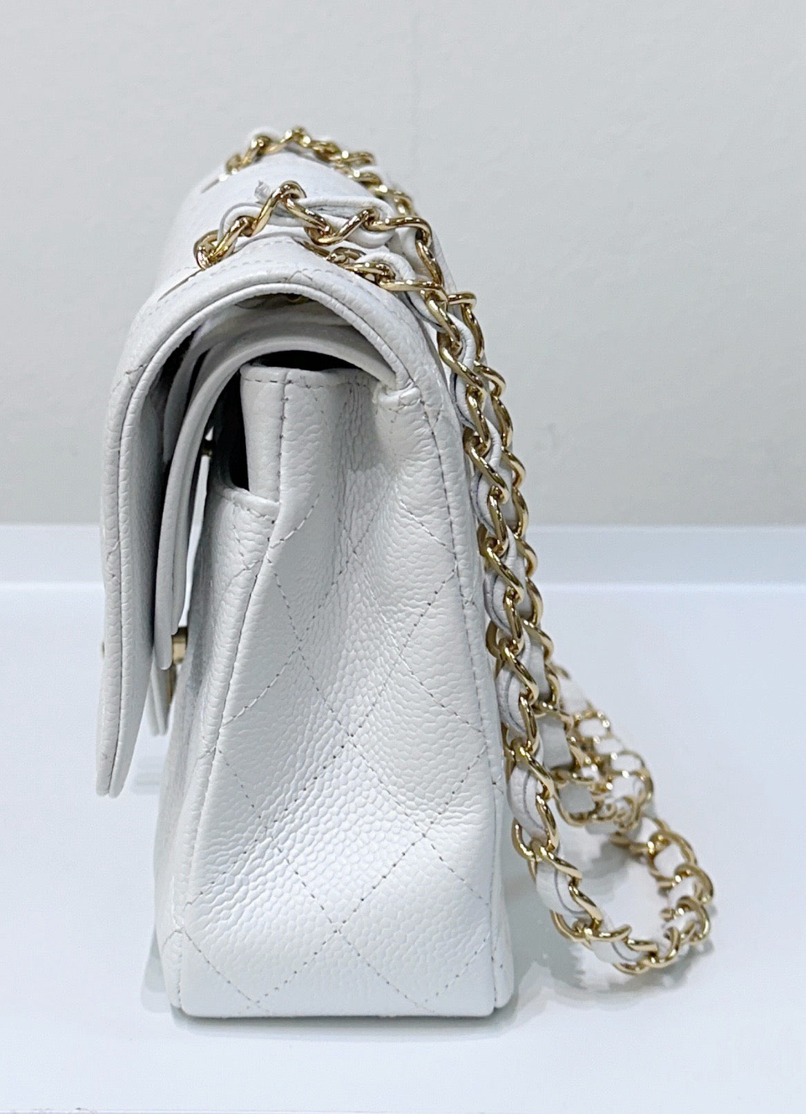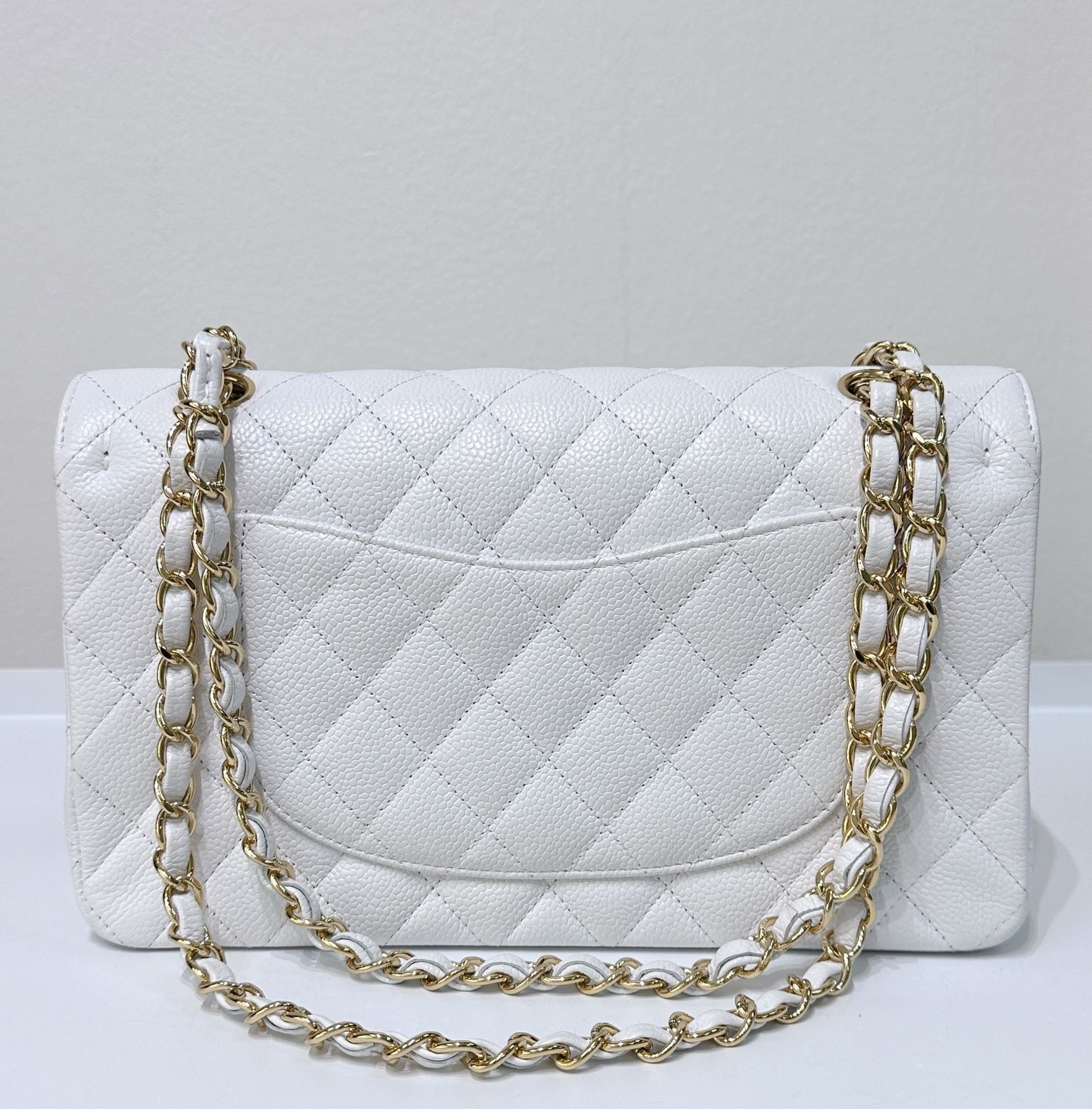 Chanel White Caviar Medium Classic 2.55 Double Flap Bag