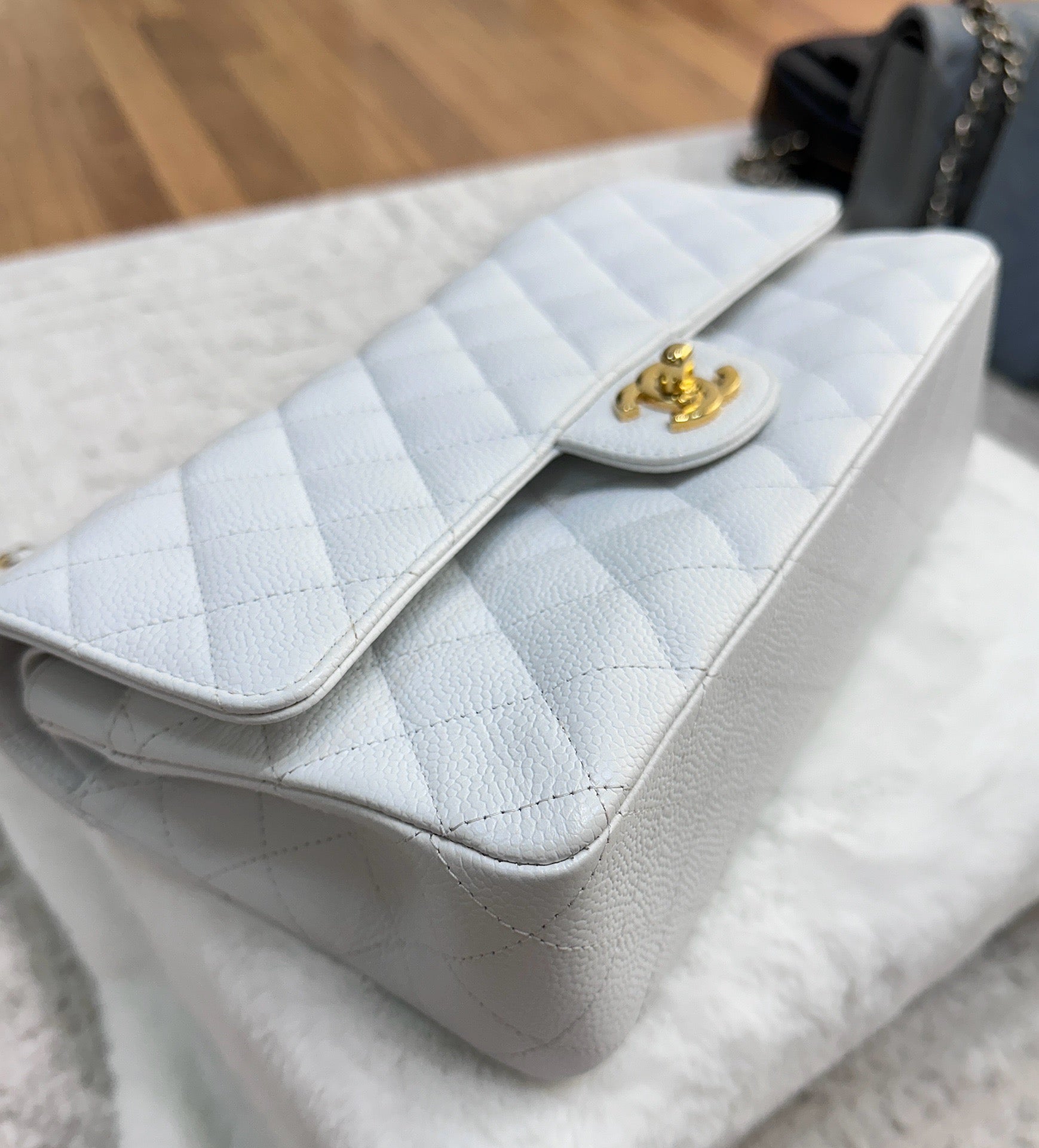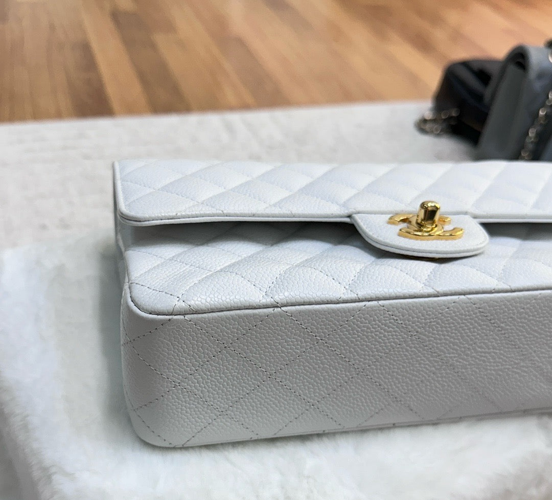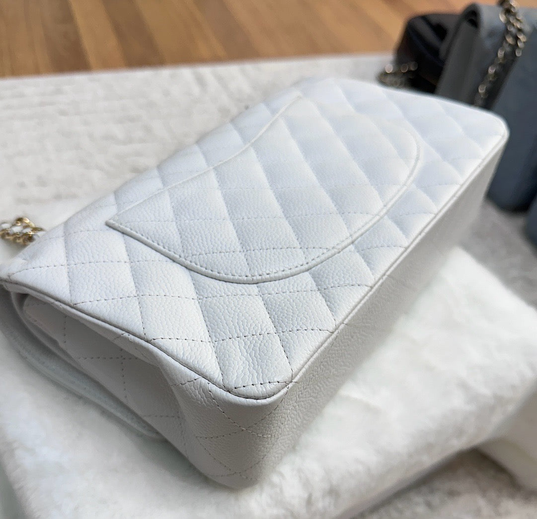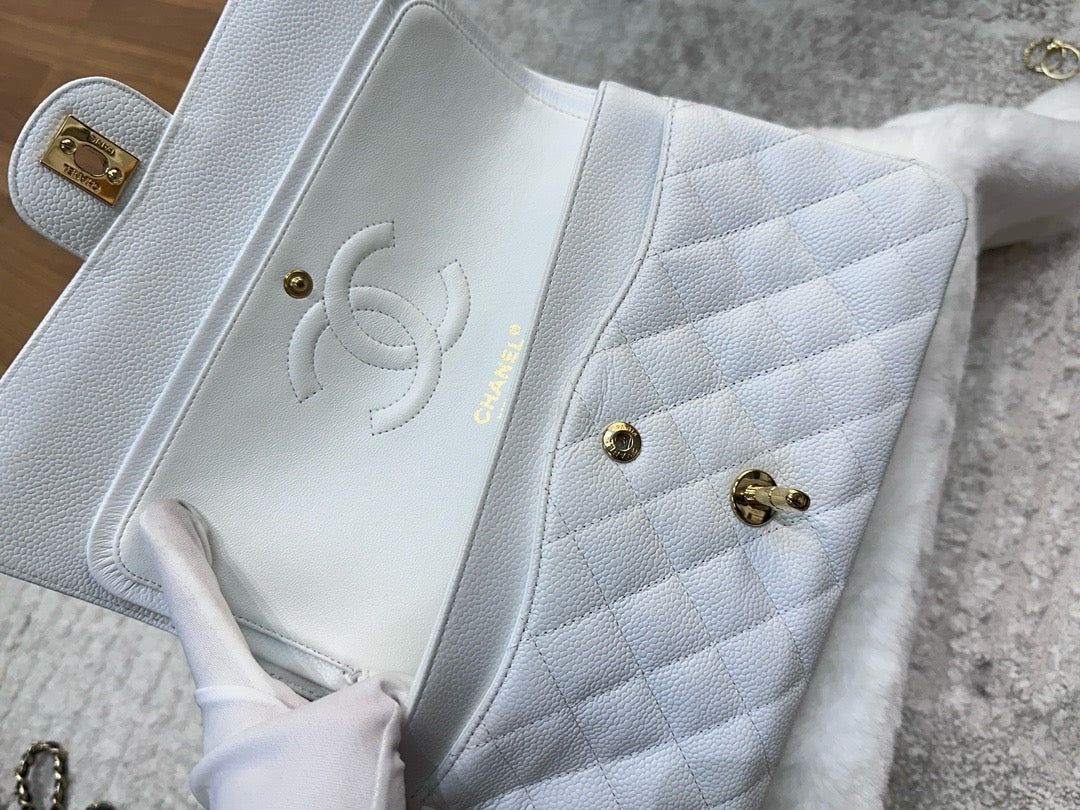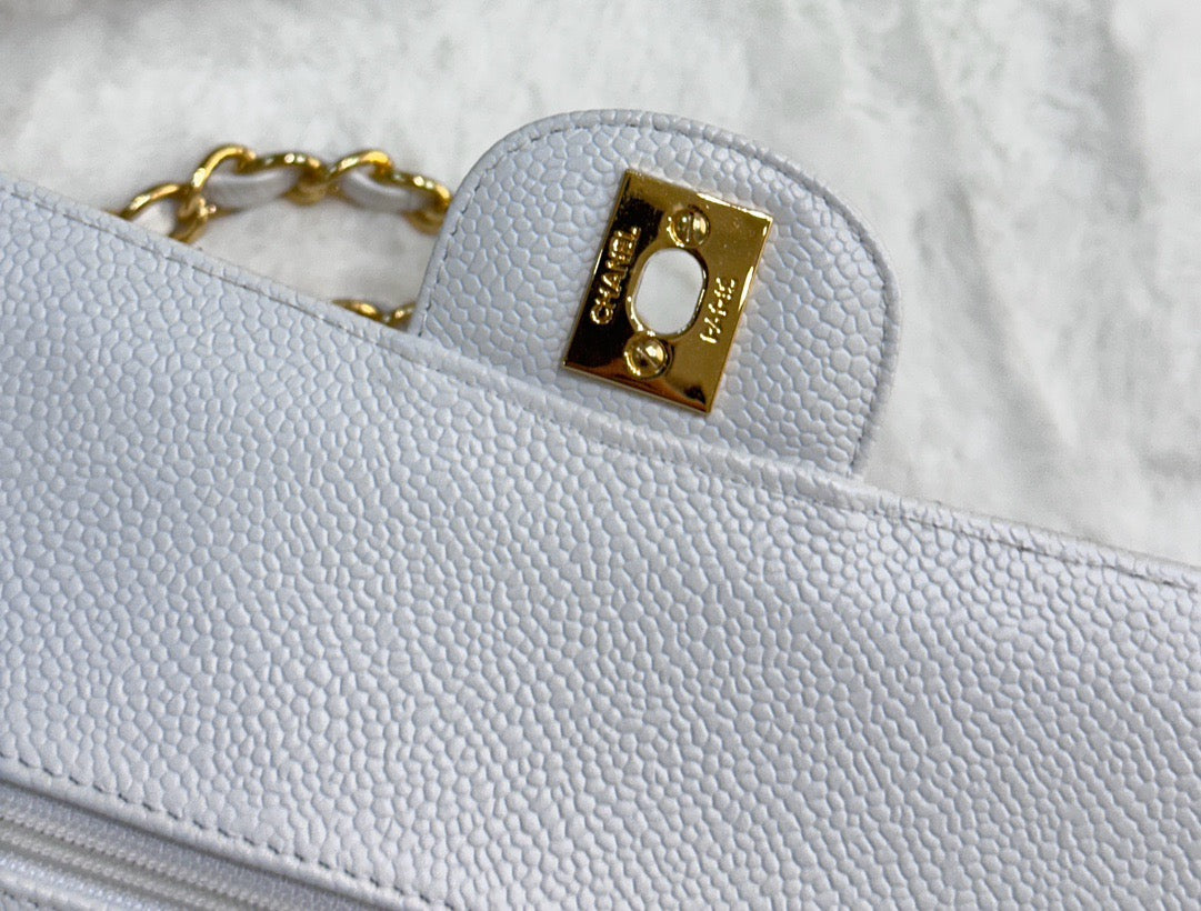 Chanel White Caviar Medium Classic 2.55 Double Flap Bag