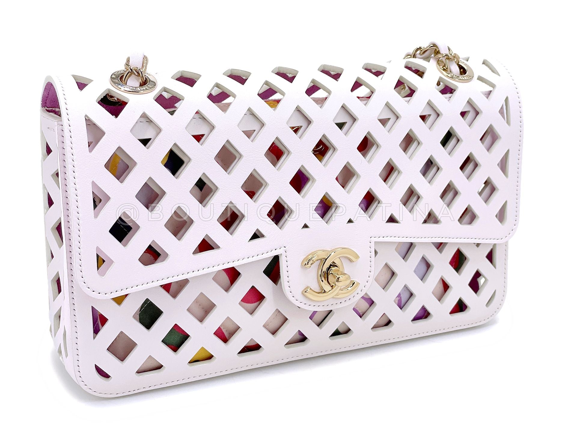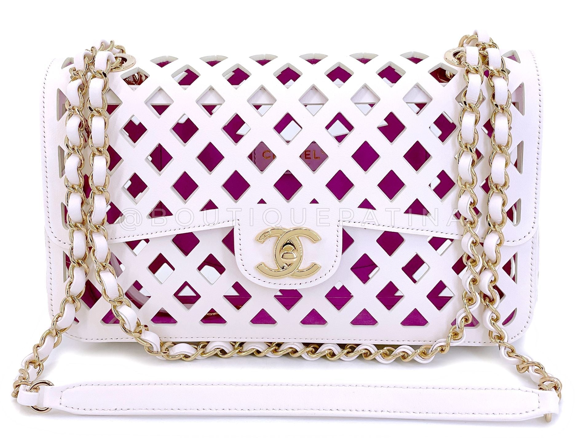 Chanel White Pink Diamond Cutout See Through Medium Flap Bag GHW F6M