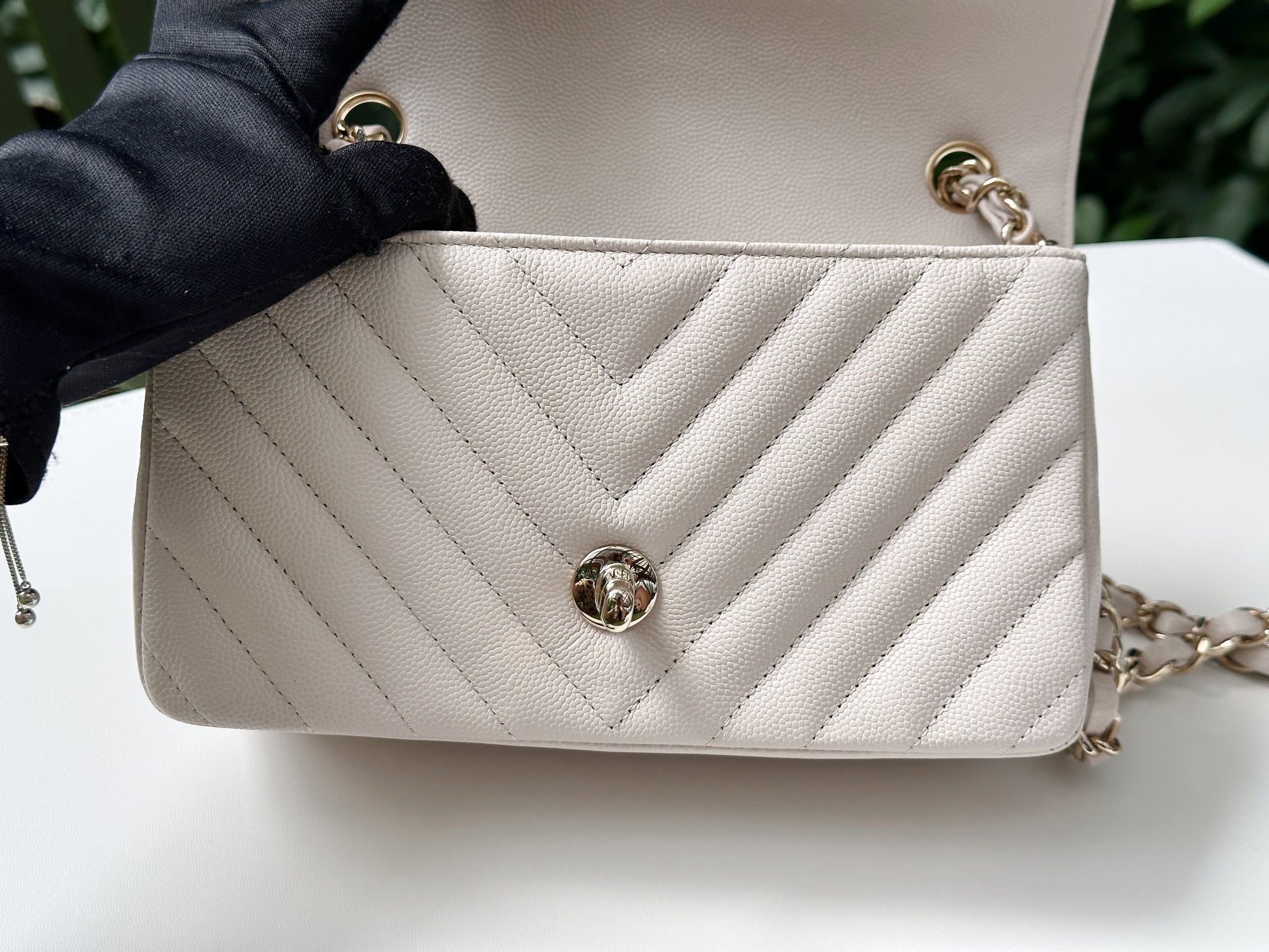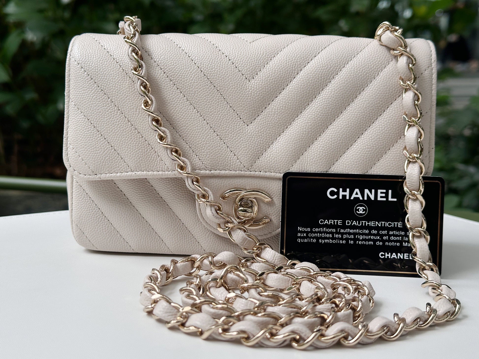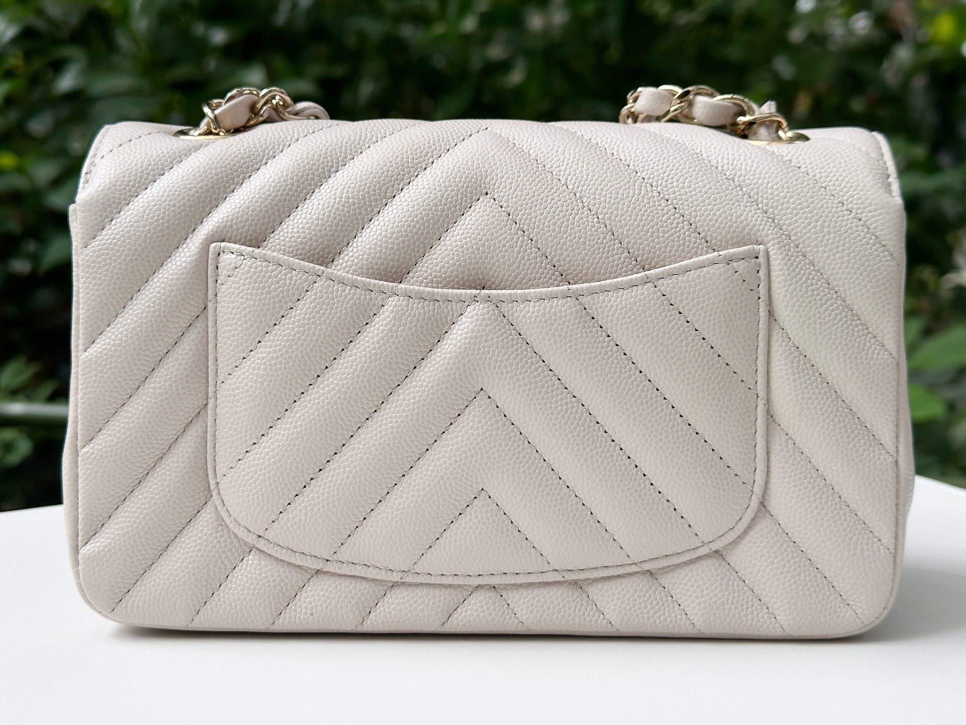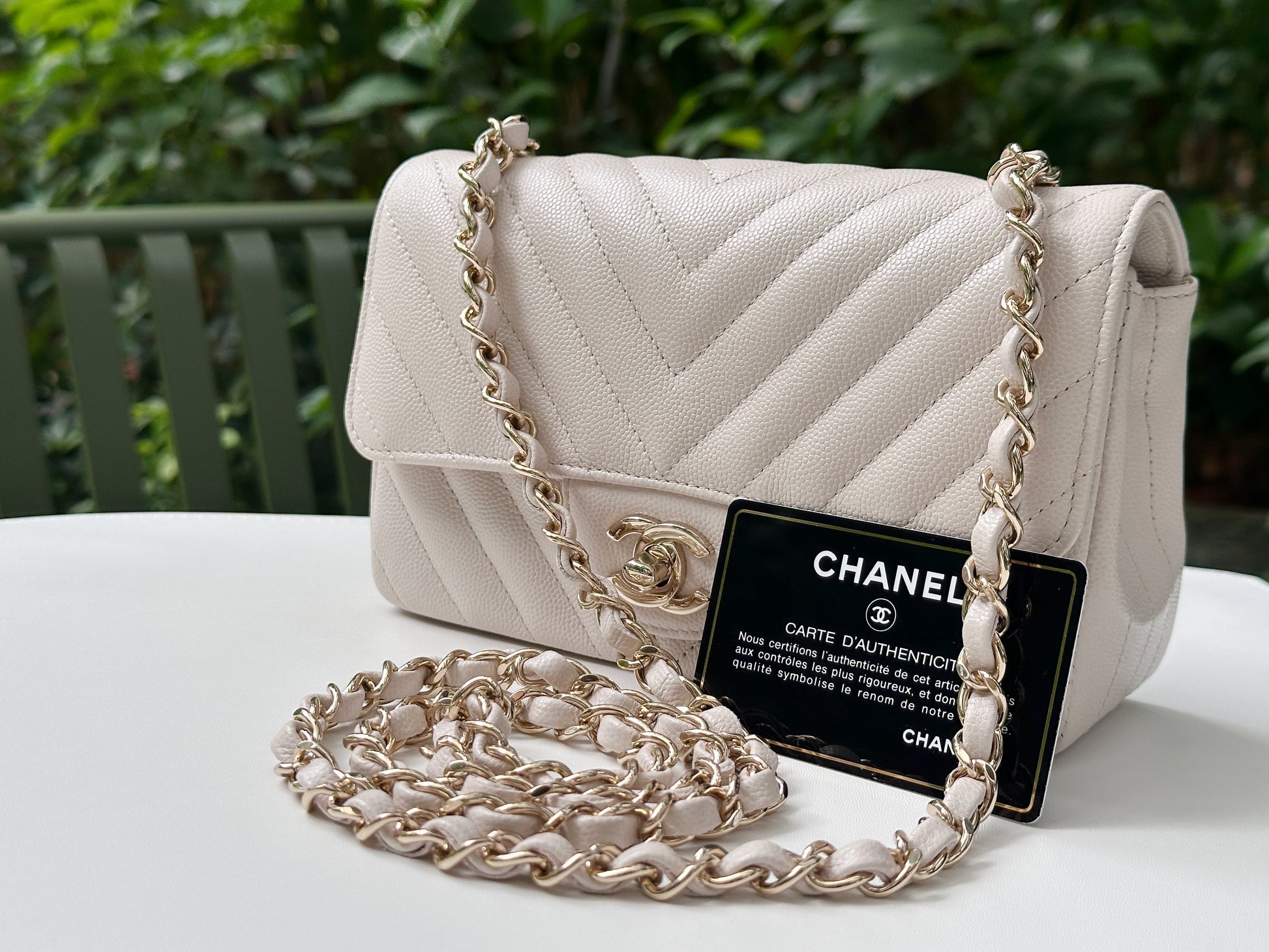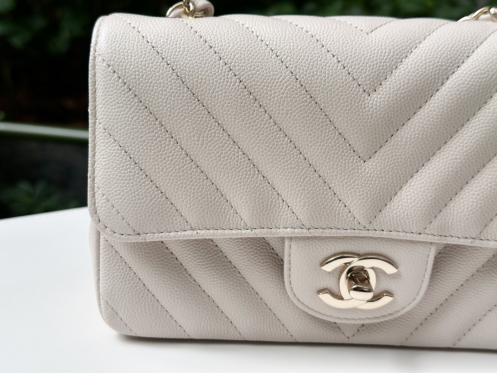Chanel Mini Rectangle Chevron Blush Hue Light Beige Flap Bag LGHW 2644 holo card