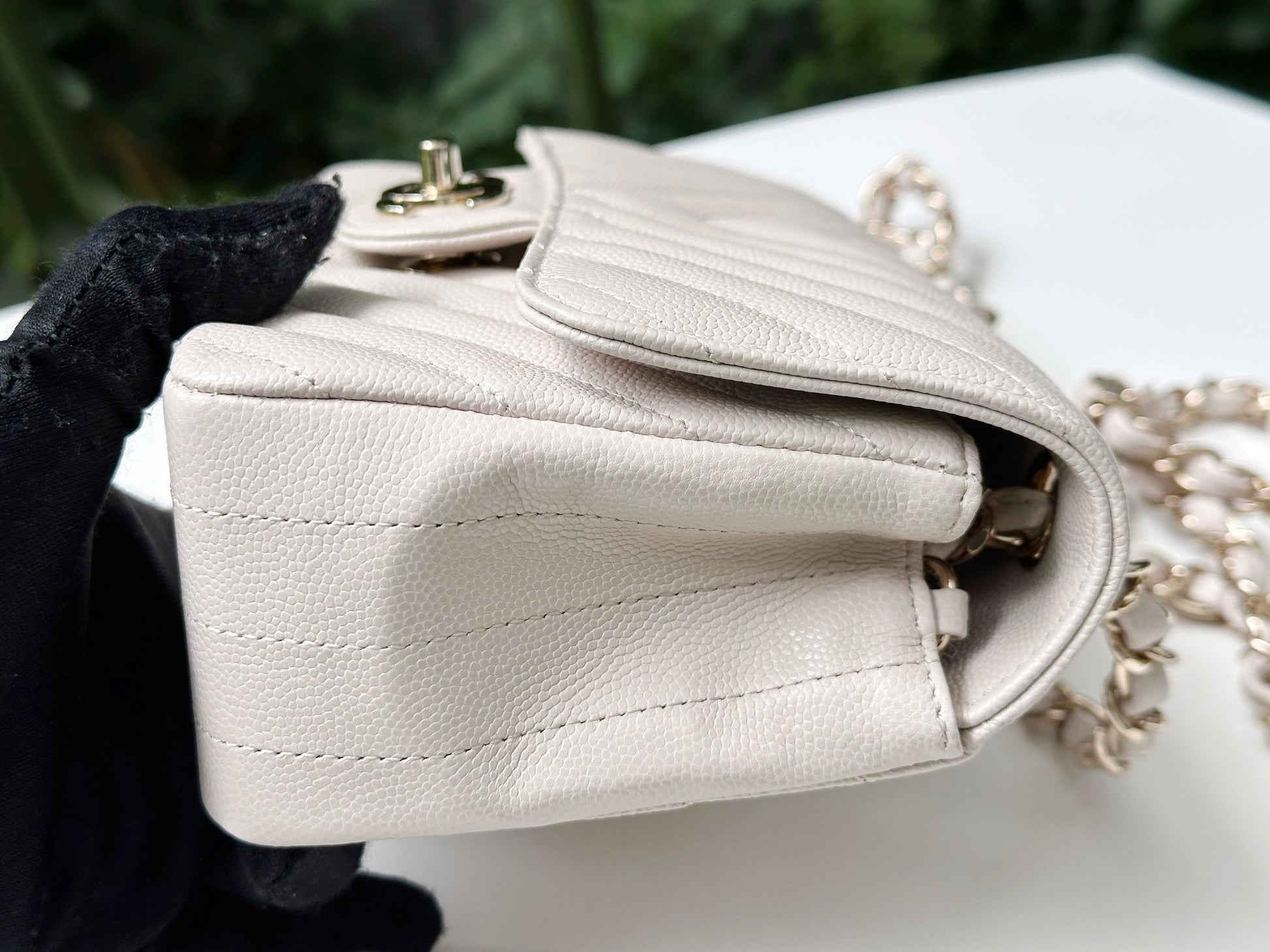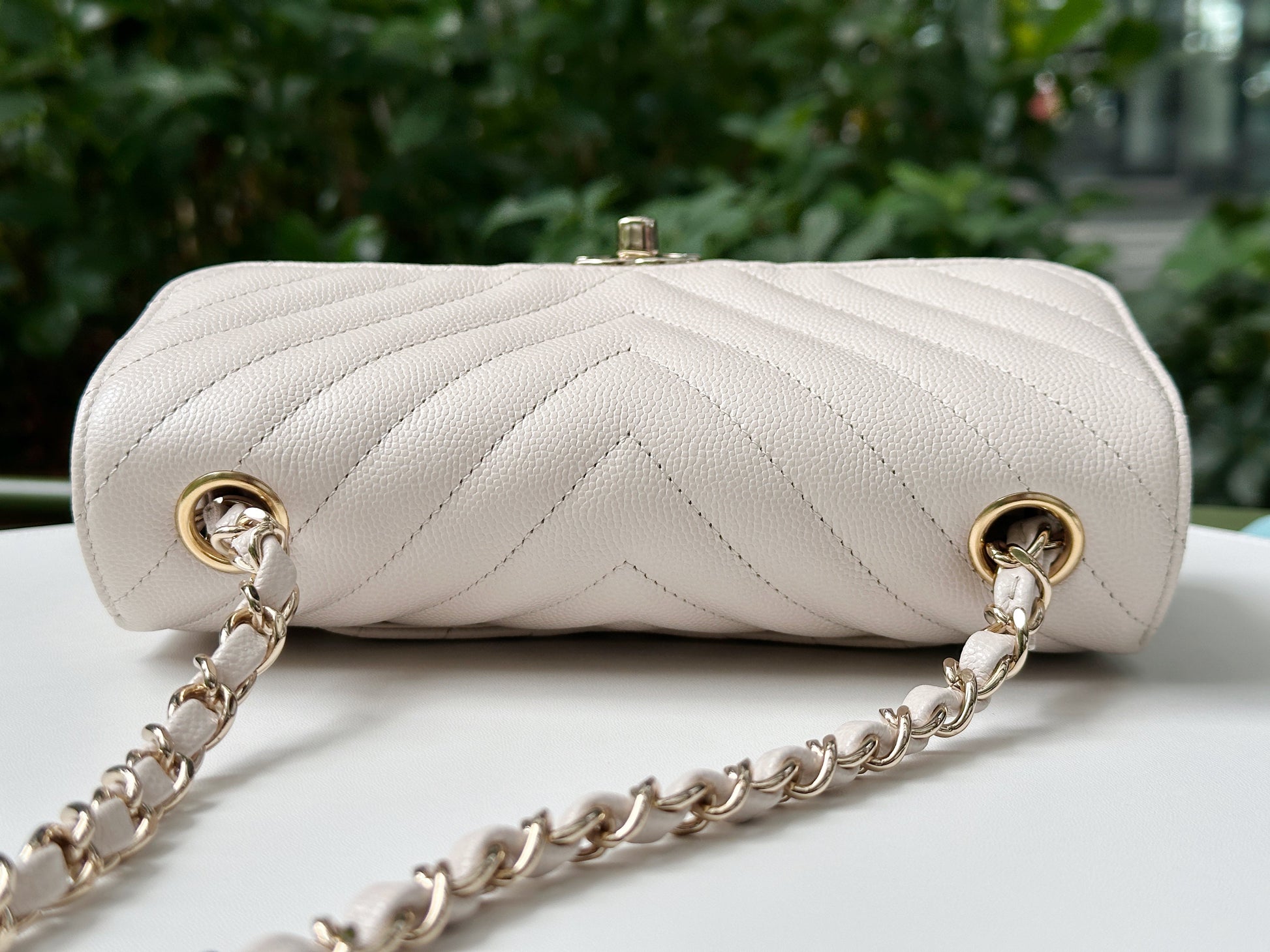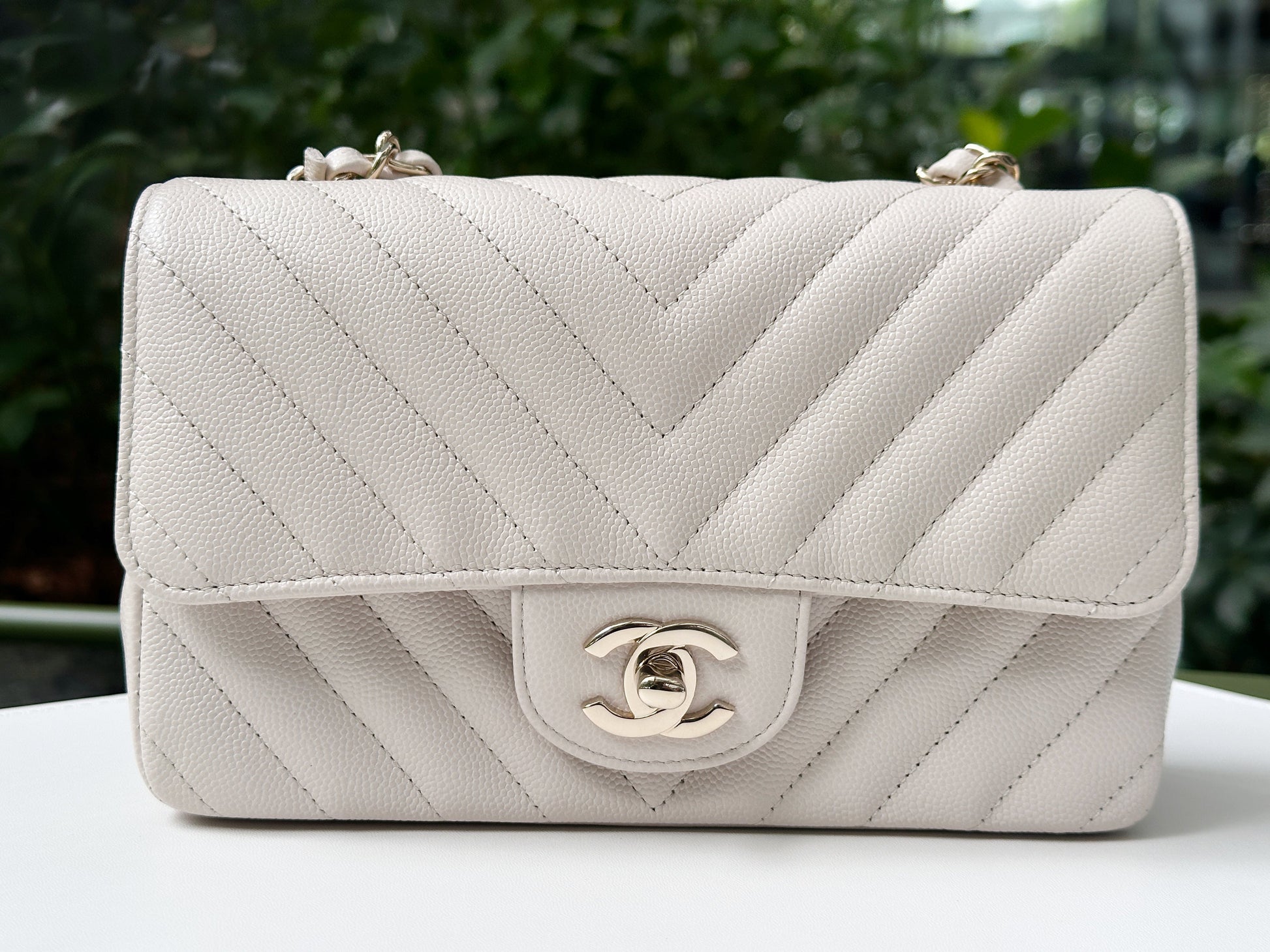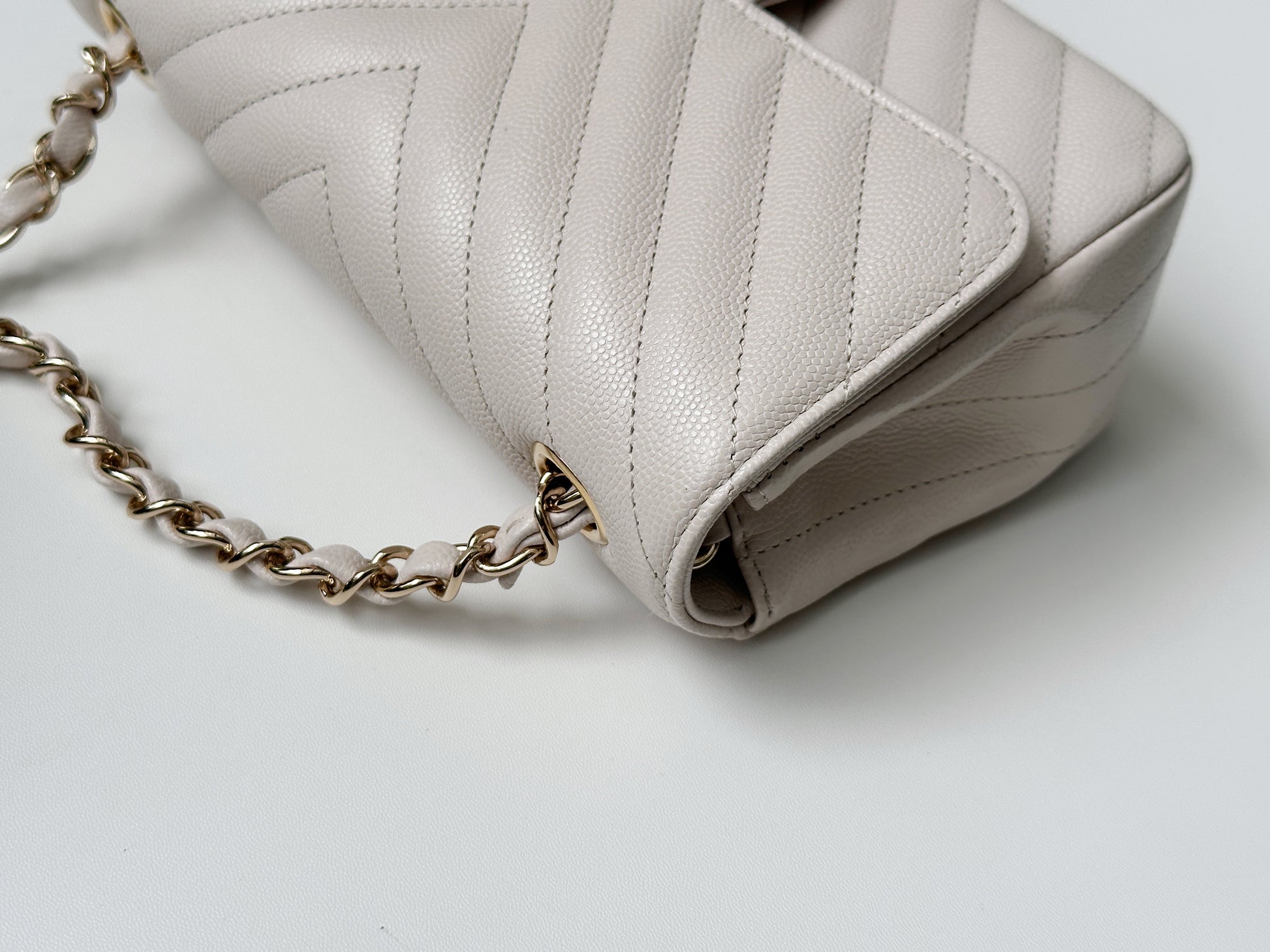Chanel Mini Rectangle Chevron Blush Hue Light Beige Flap Bag LGHW 2644 holo card