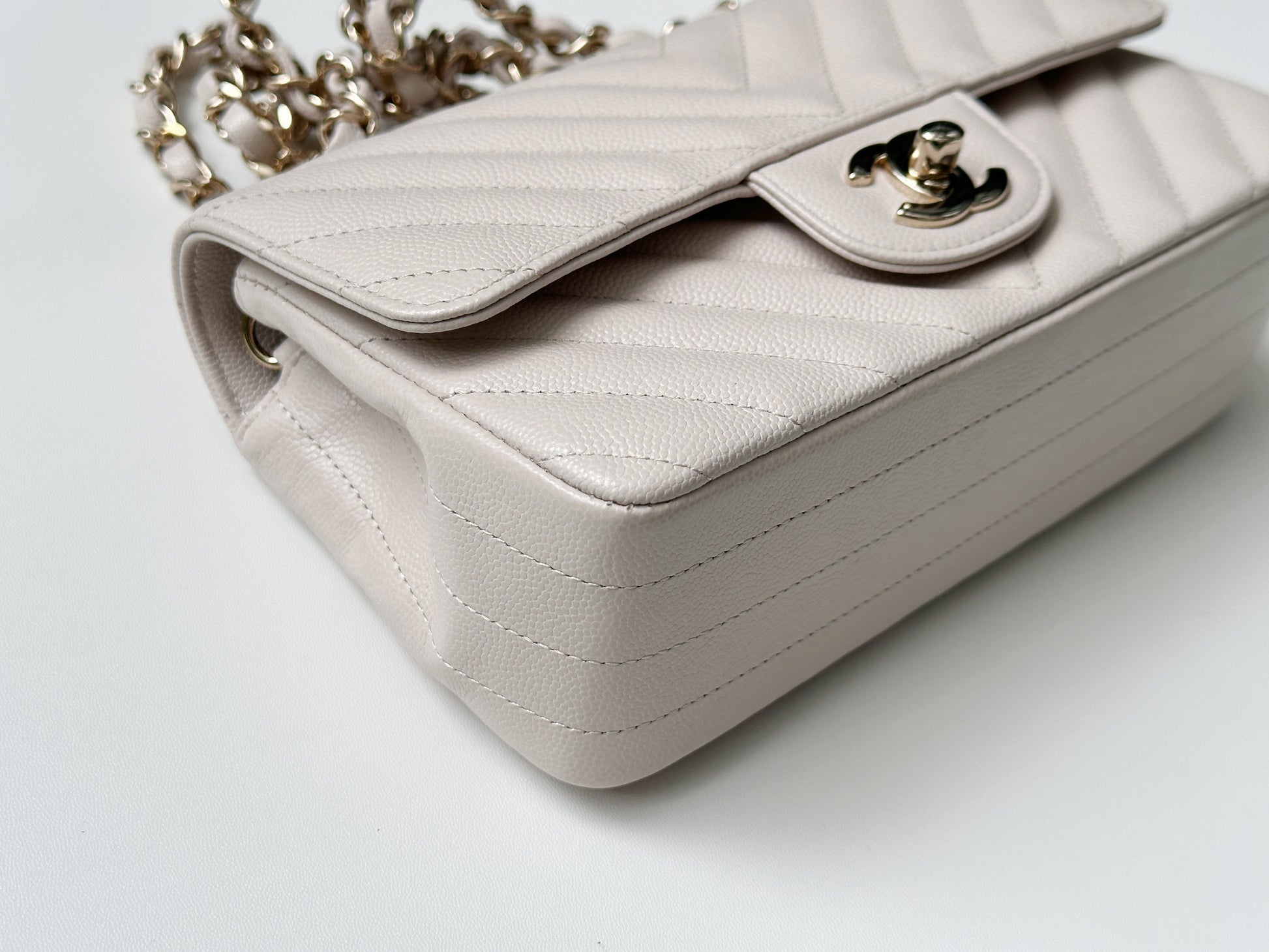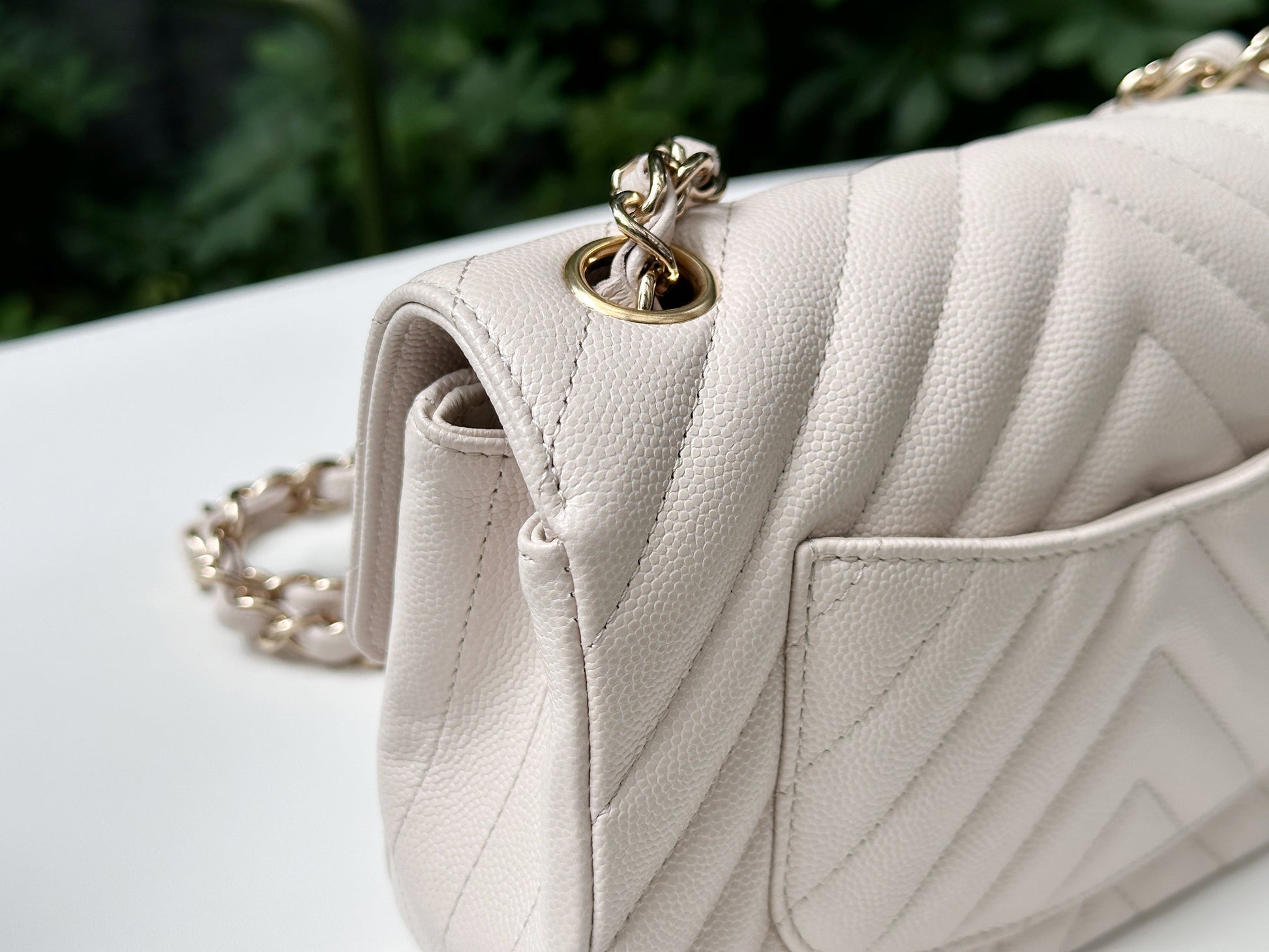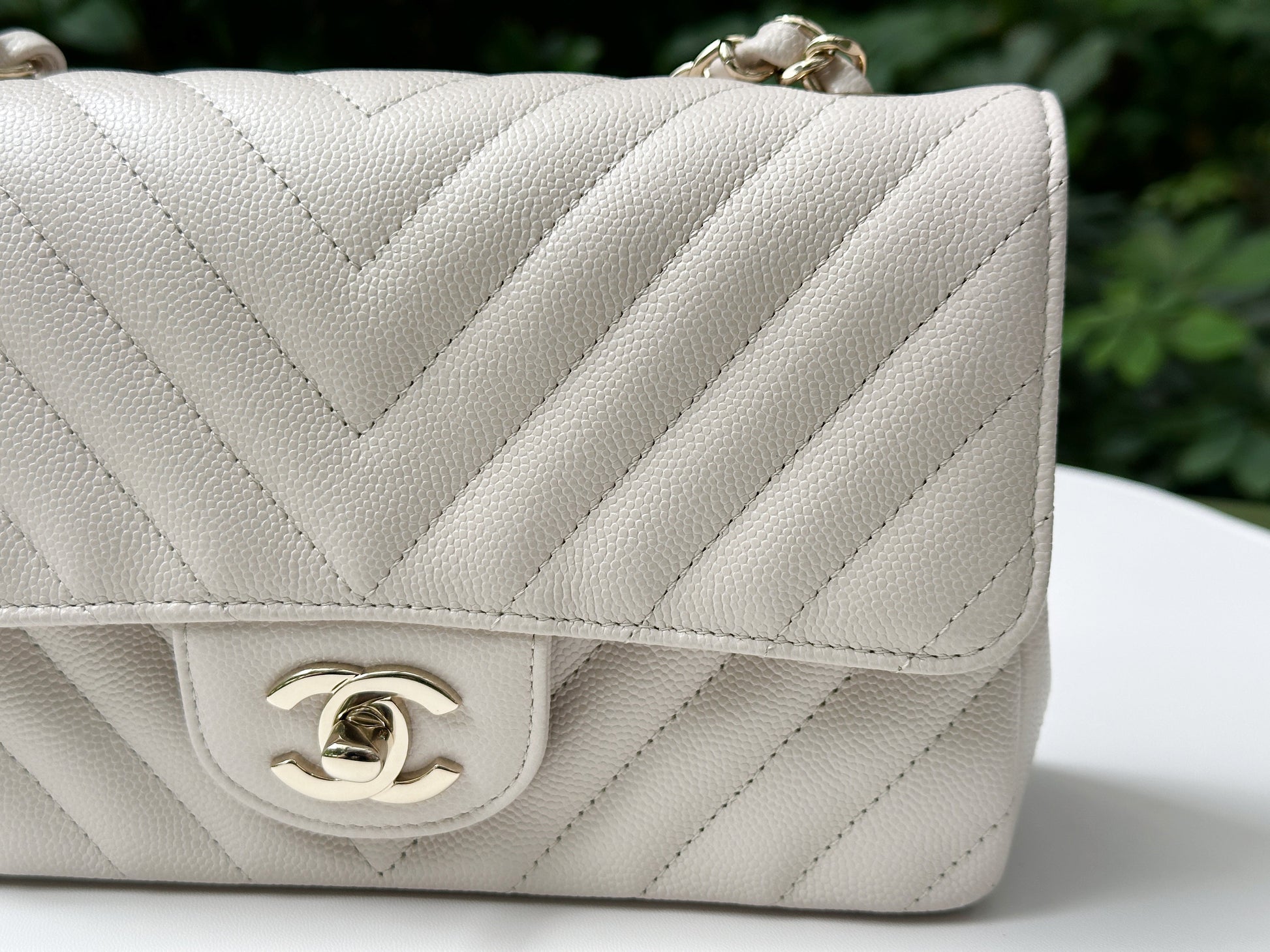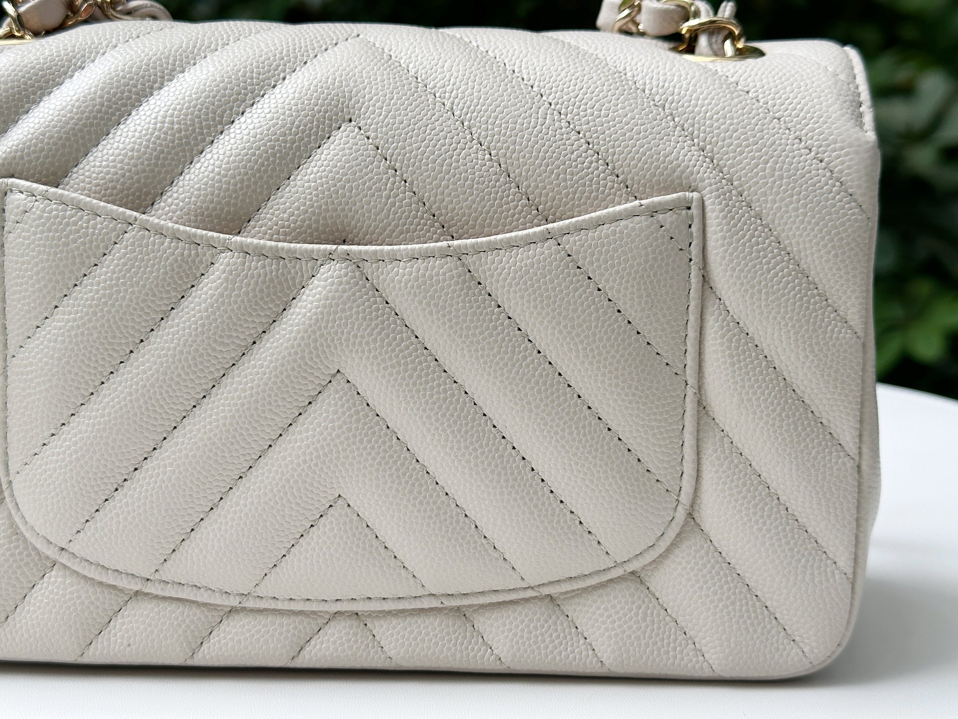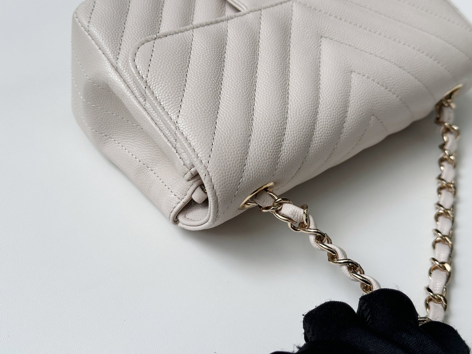 Chanel Mini Rectangle Chevron Blush Hue Light Beige Flap Bag LGHW 2644 holo card