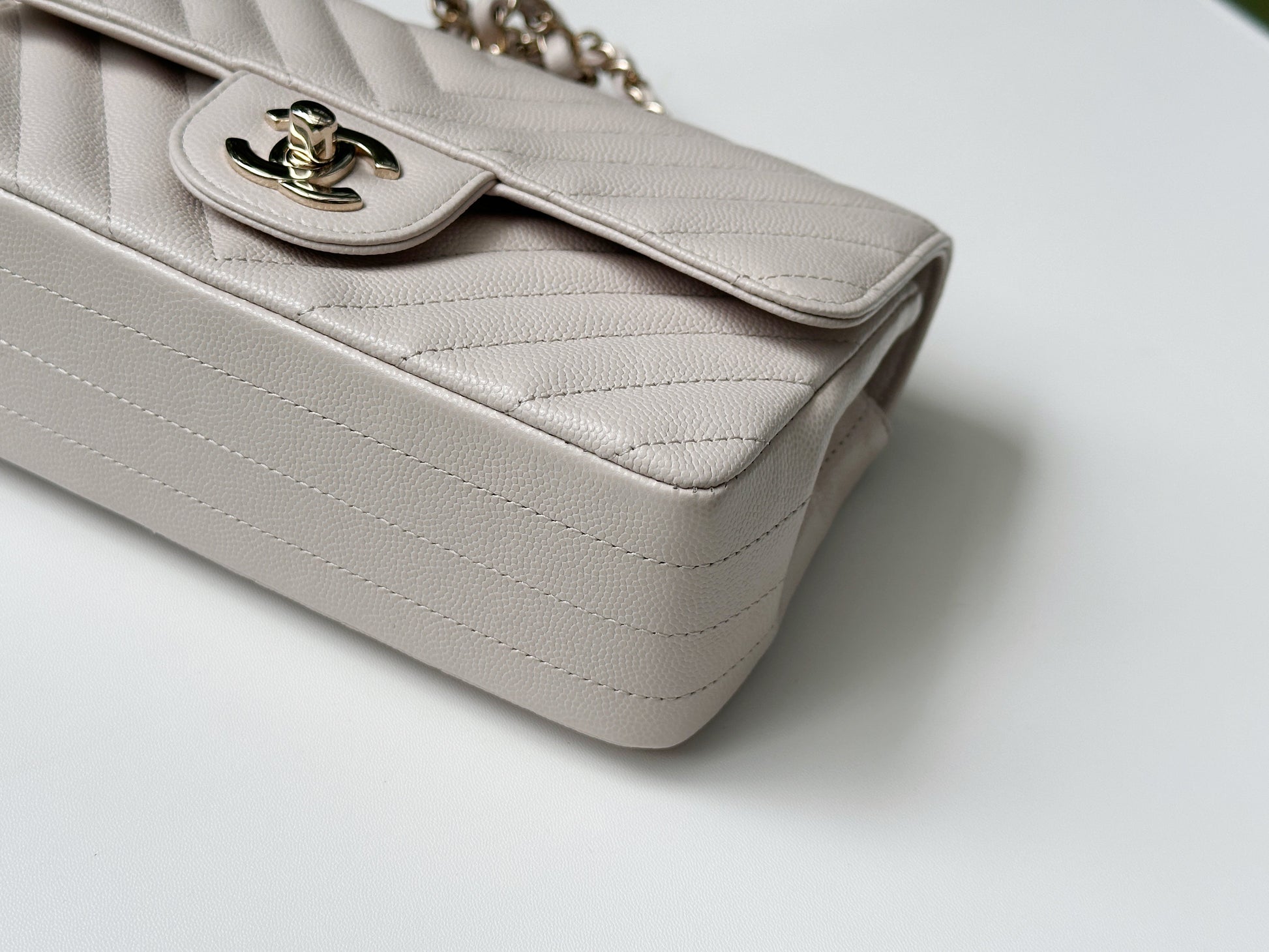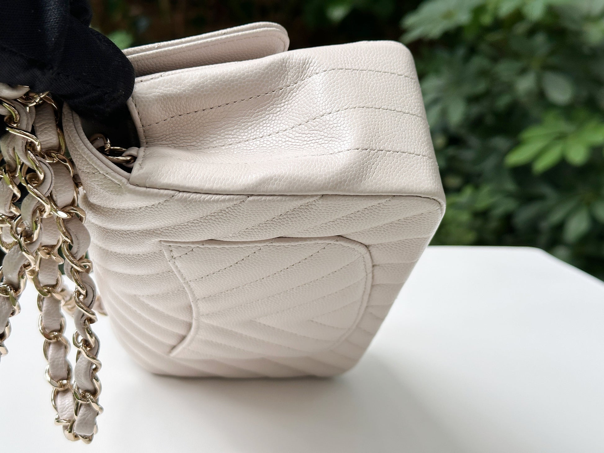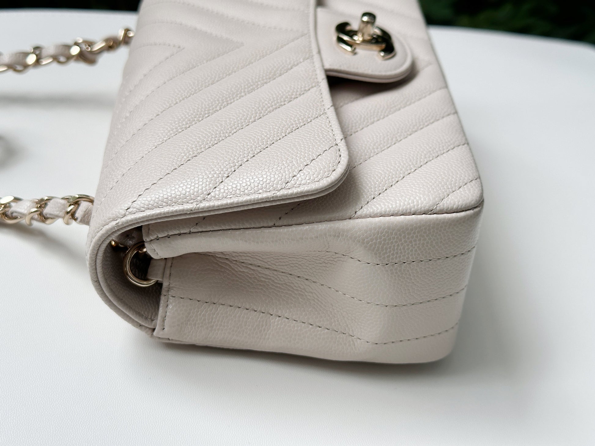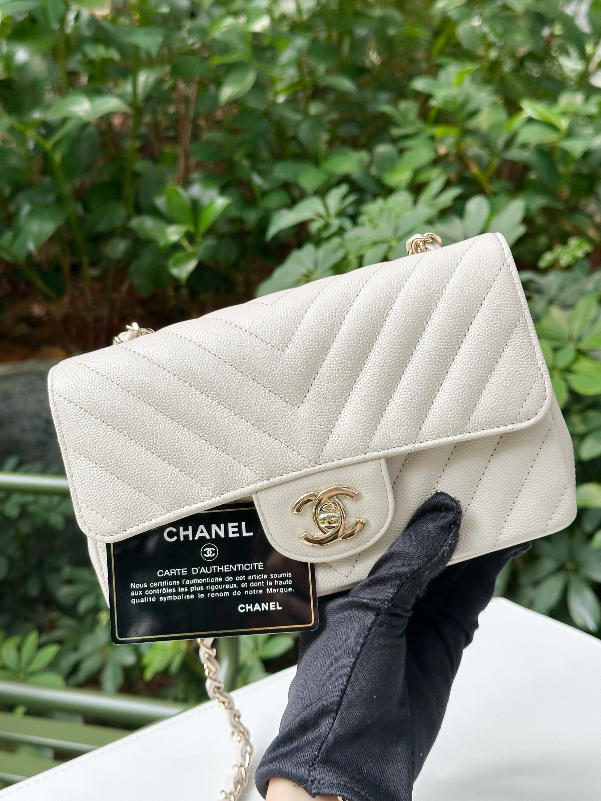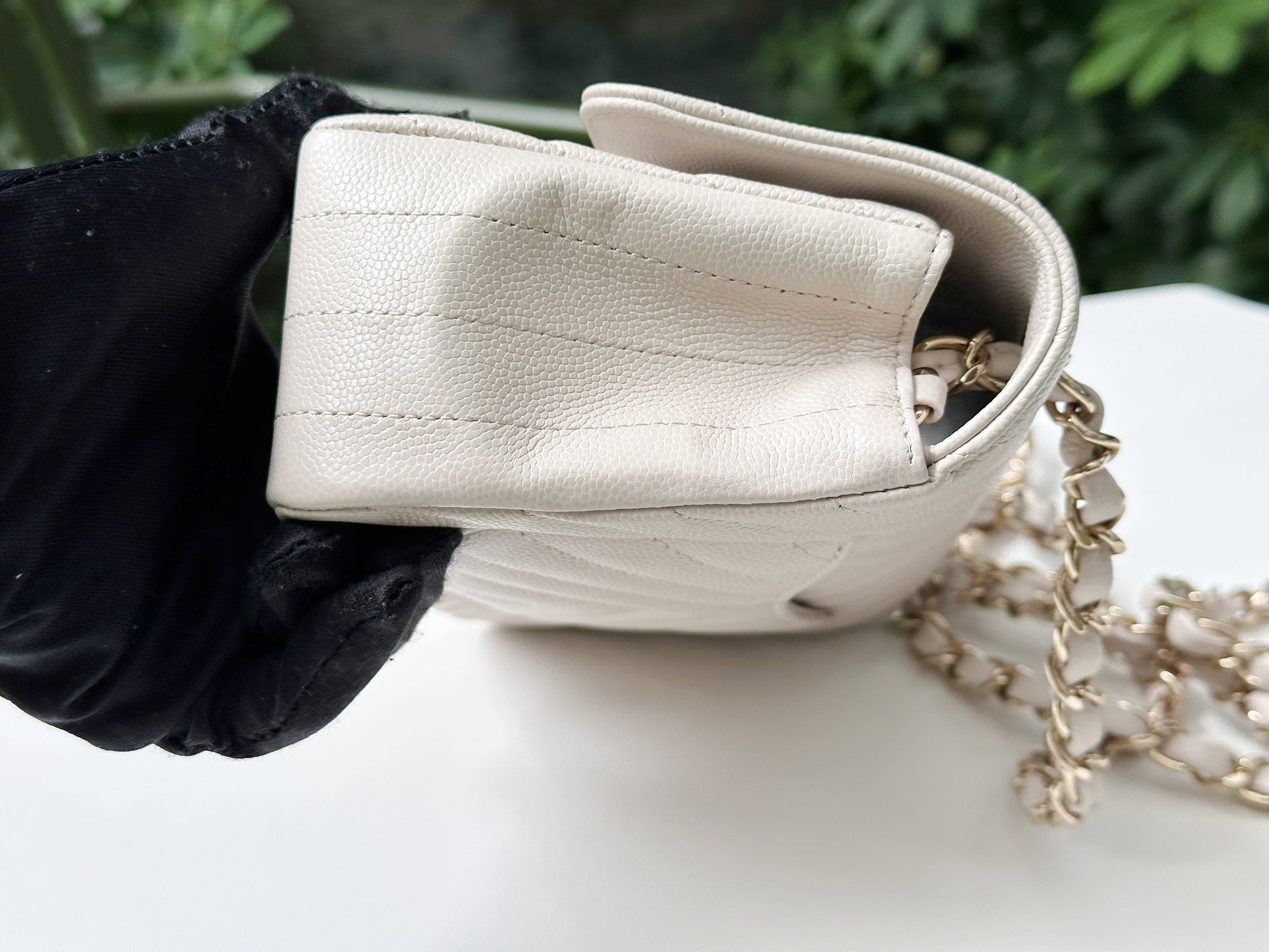 Chanel Mini Rectangle Chevron Blush Hue Light Beige Flap Bag LGHW 2644 holo card