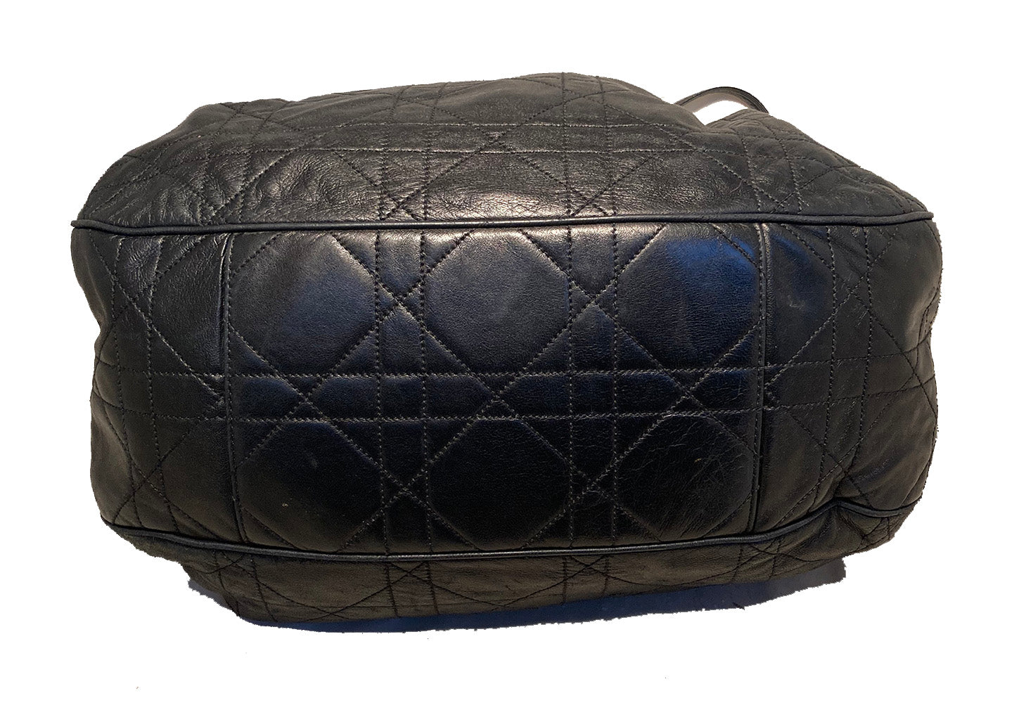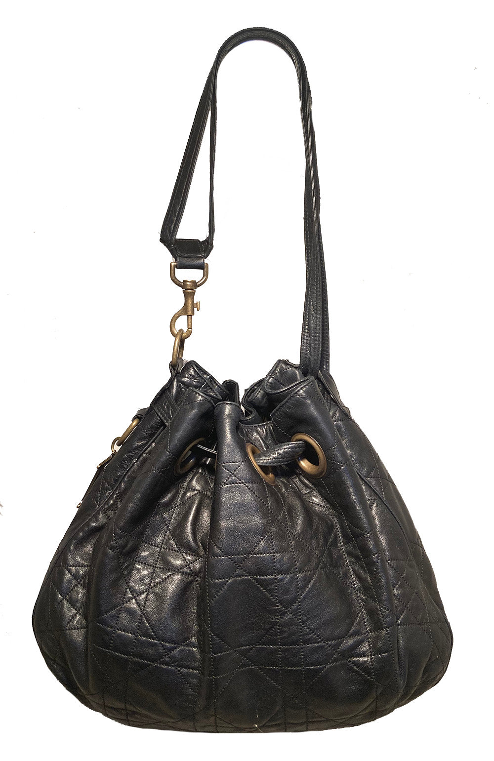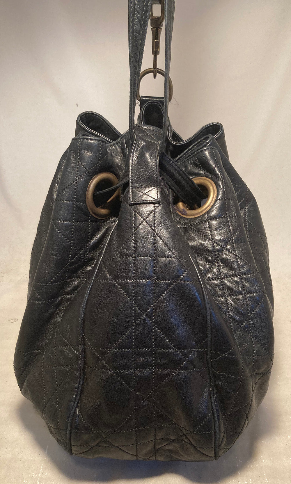 Christian Dior Black Leather Cannage Drawstring Shoulder Bag