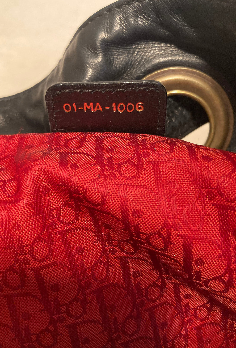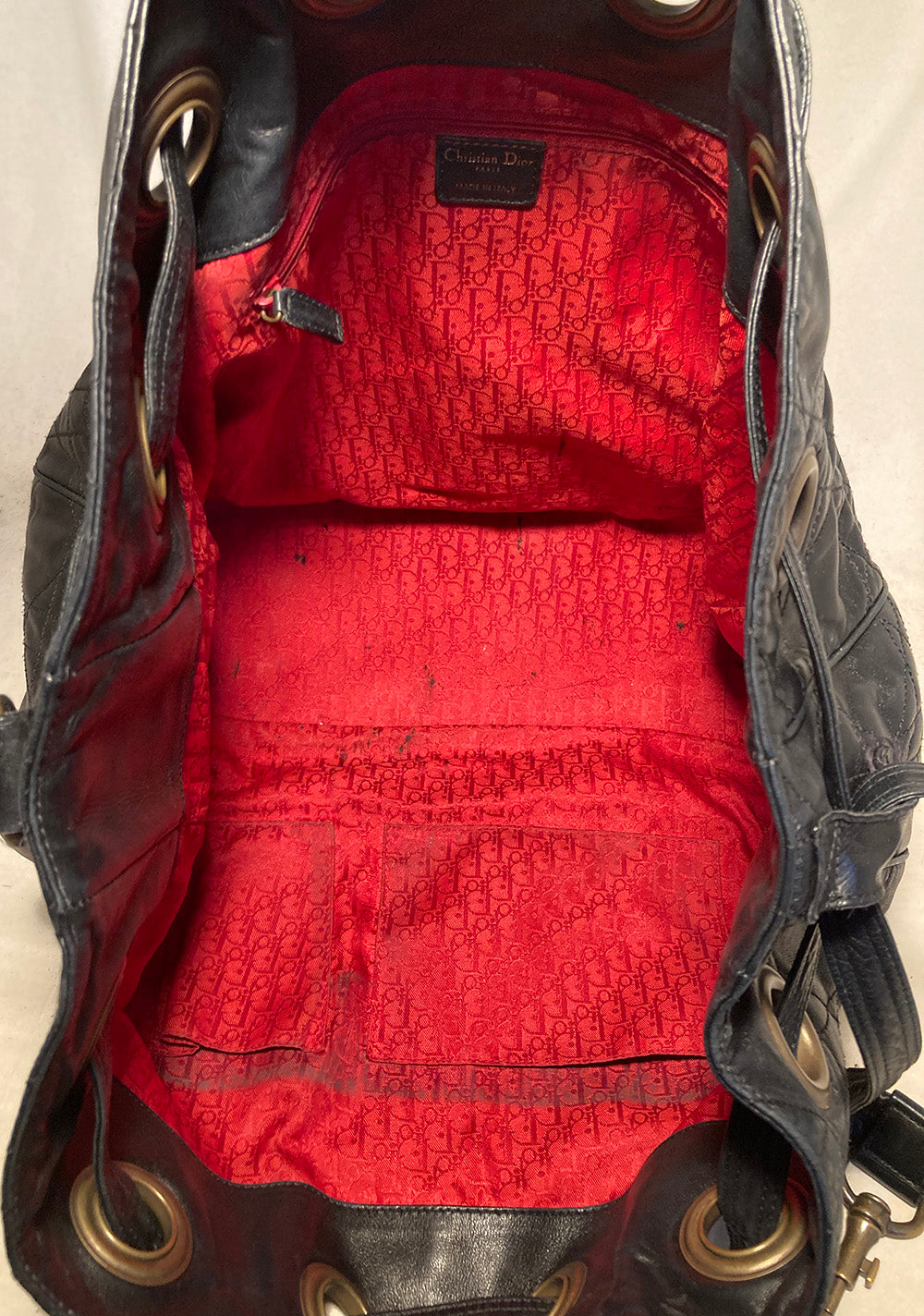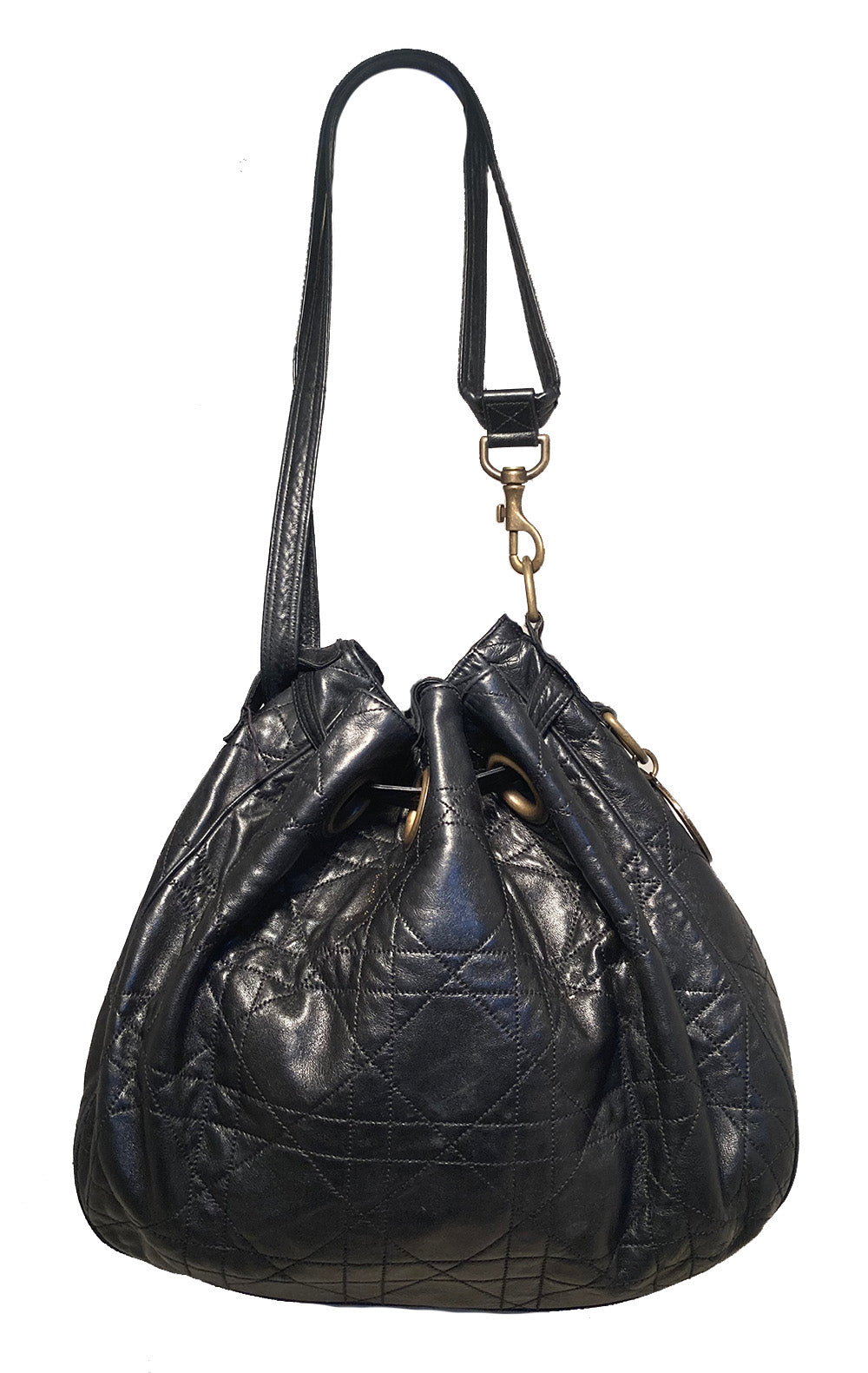 Christian Dior Black Leather Cannage Drawstring Shoulder Bag
