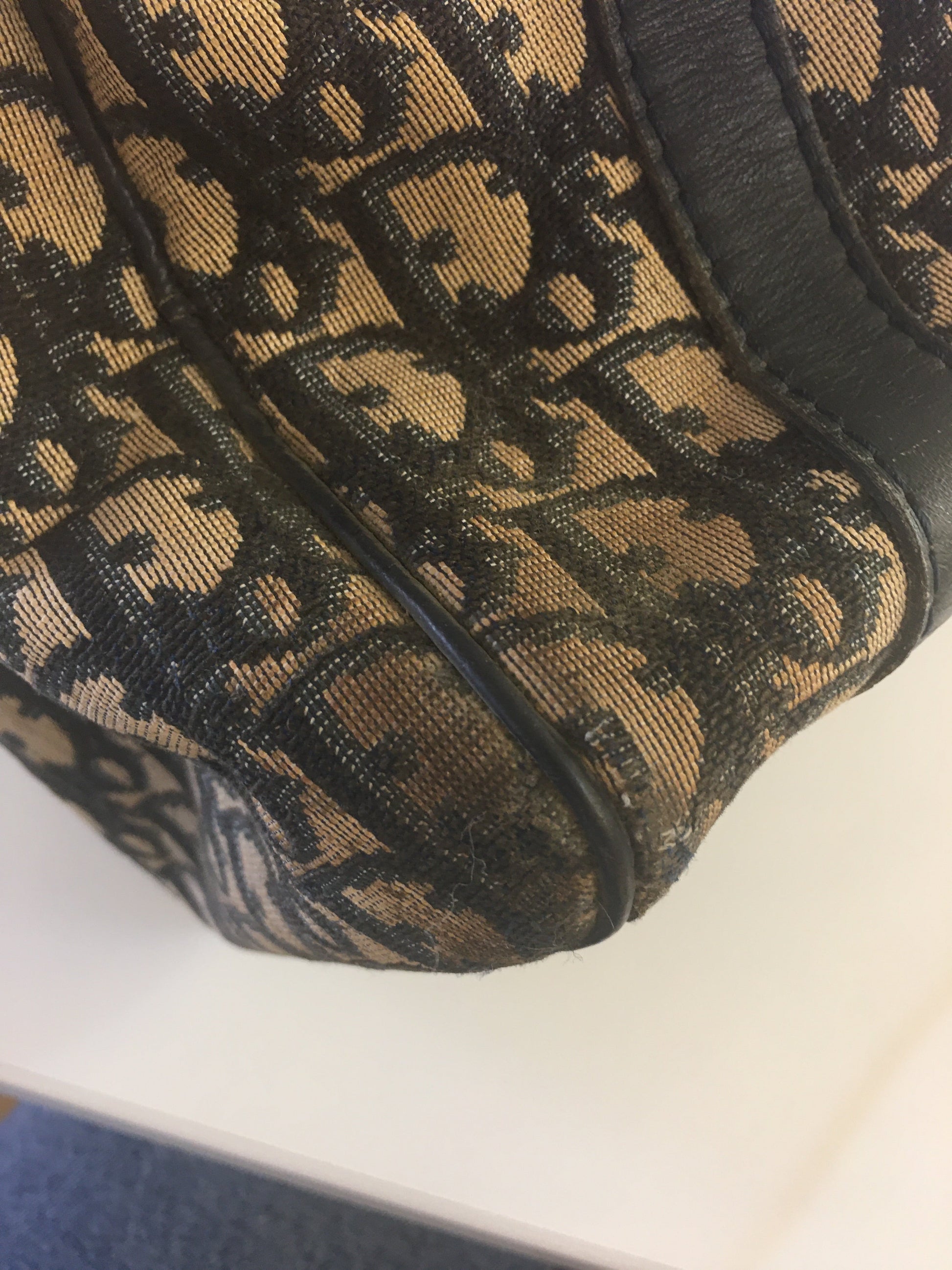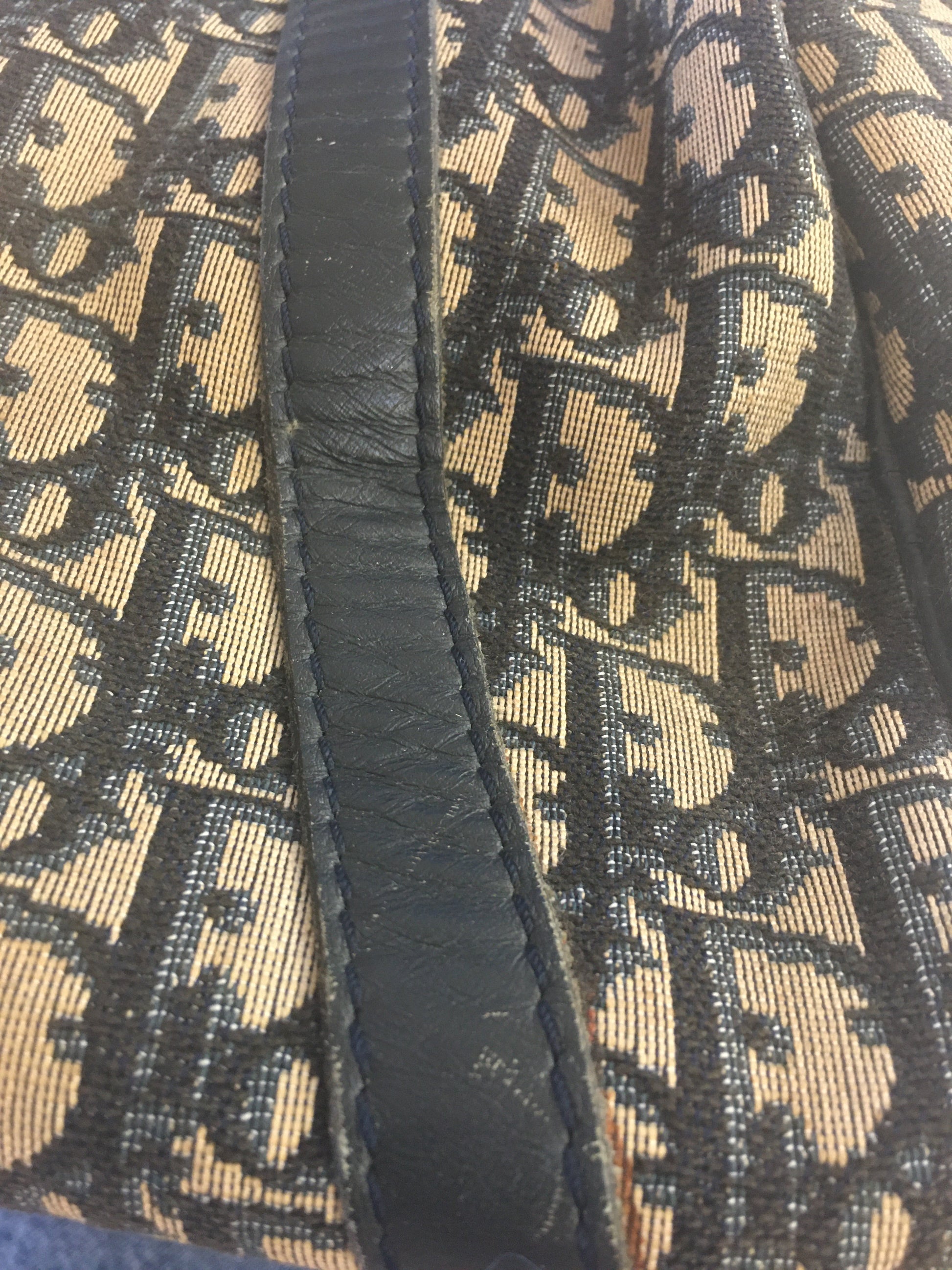 The bag is overall signed by the previous use: the leather details are and slightly dry, on the handles there are a few scratches; the fabric is also used especially on the corners