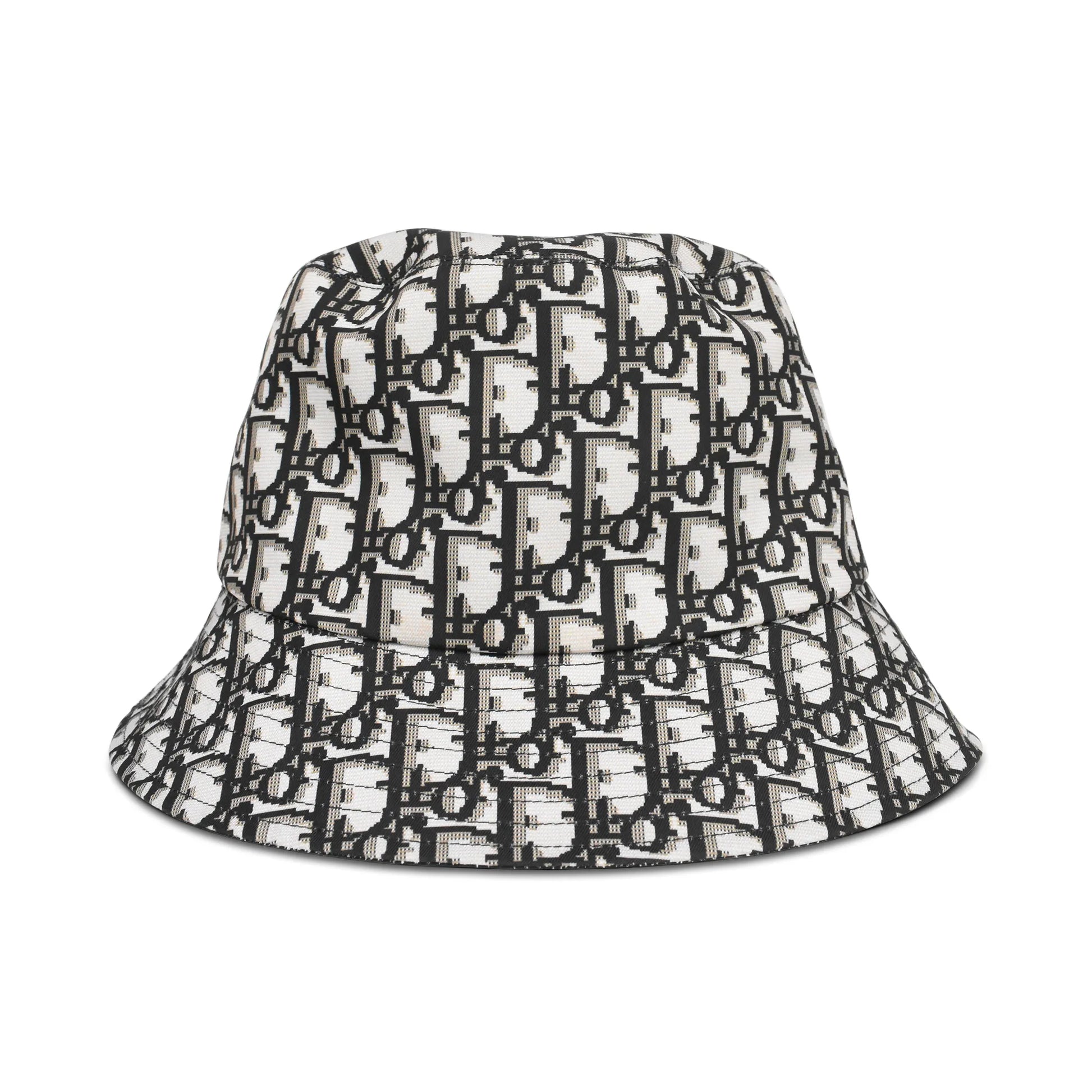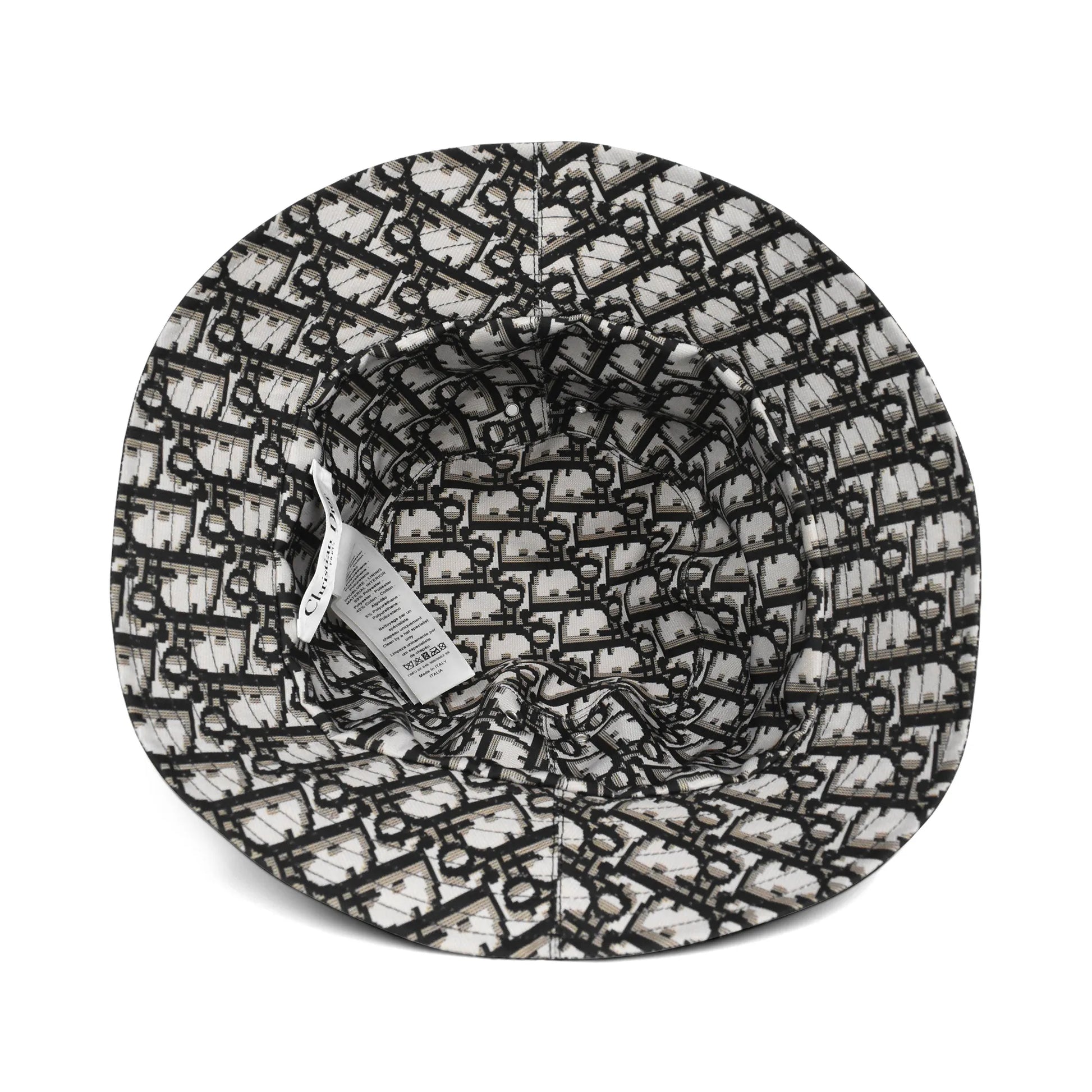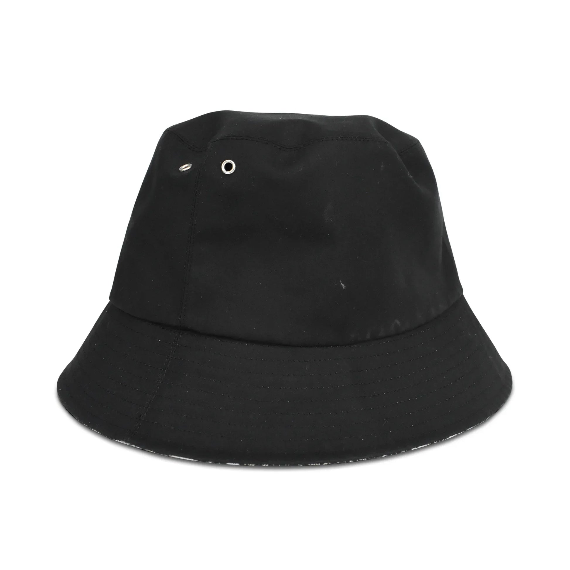 Christian Dior bucket hat in black nylon with a black and beige logo monogram interior. Features silver grommets.
