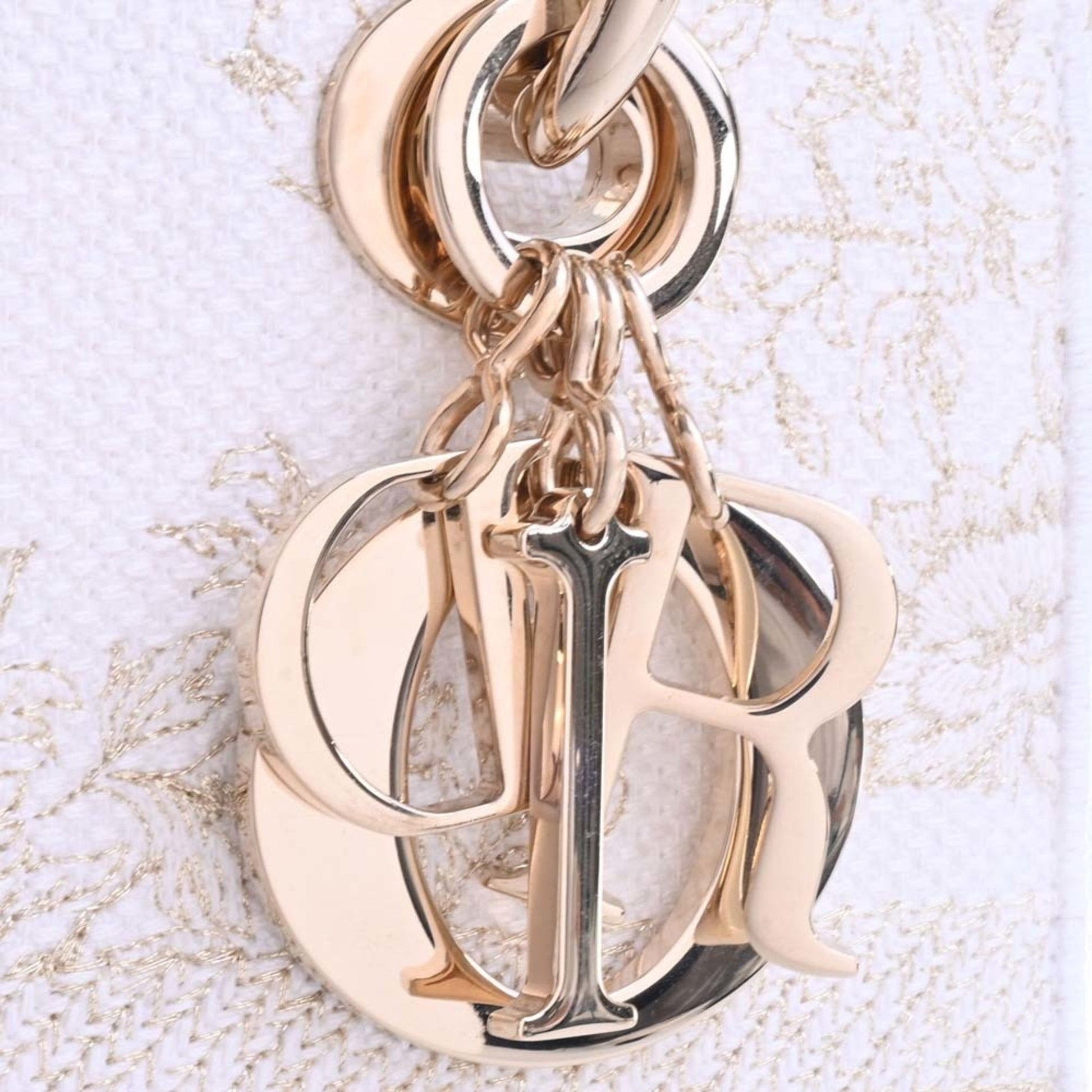CHRISTIAN DIOR Canvas Lady Delight Embroidered Medium Handbag White Ladies