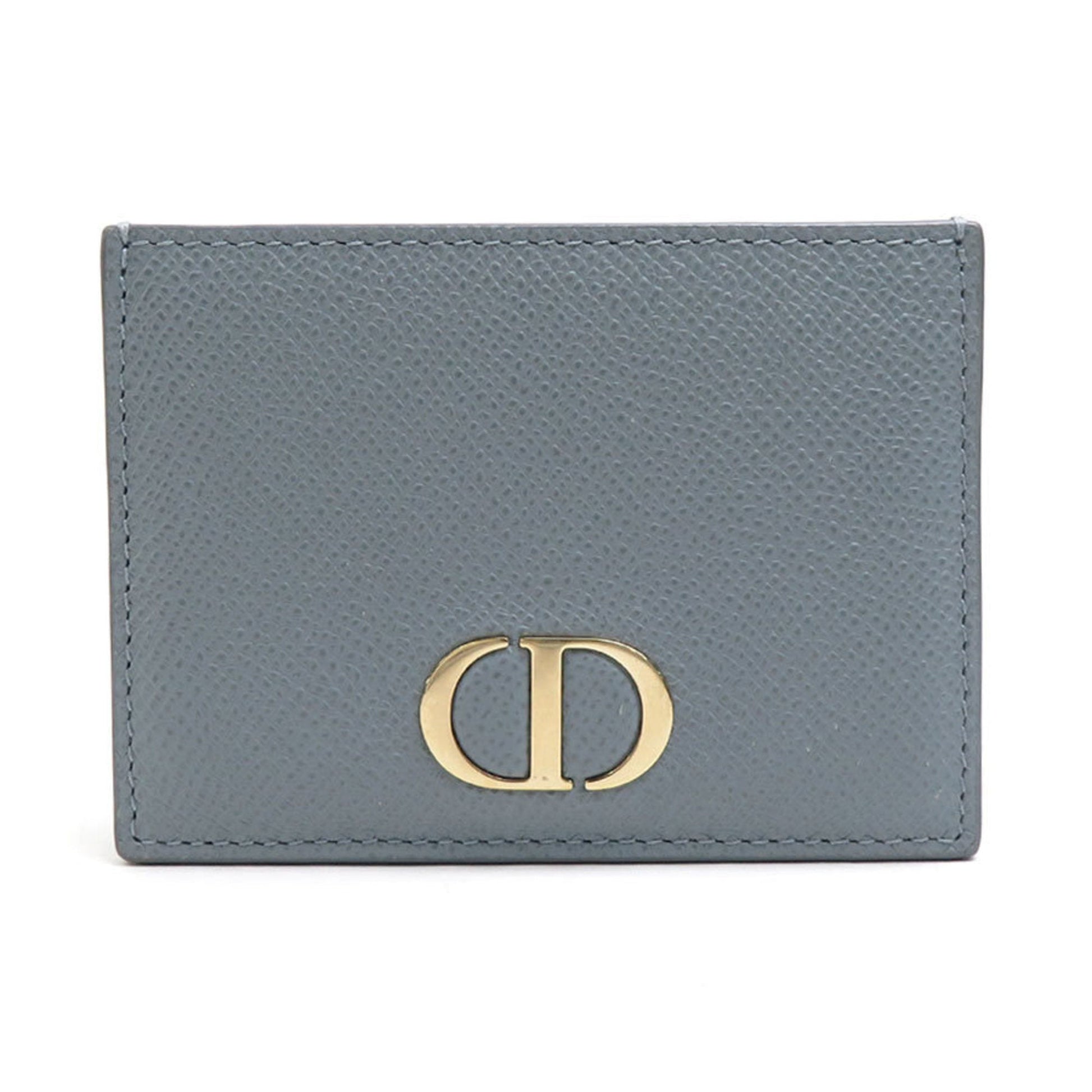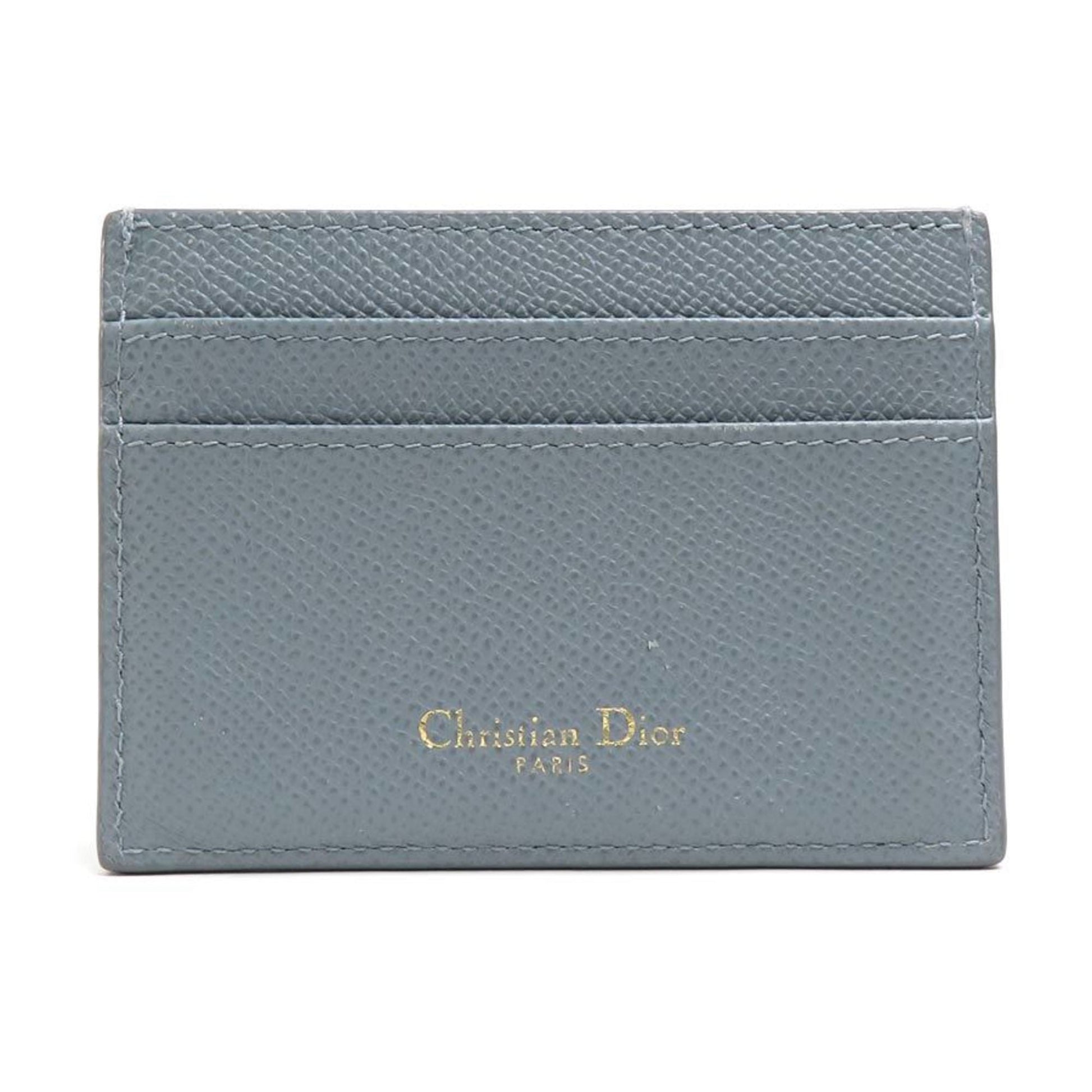 Christian Dior Card Case Pass Leather Blue Gray Ladies
