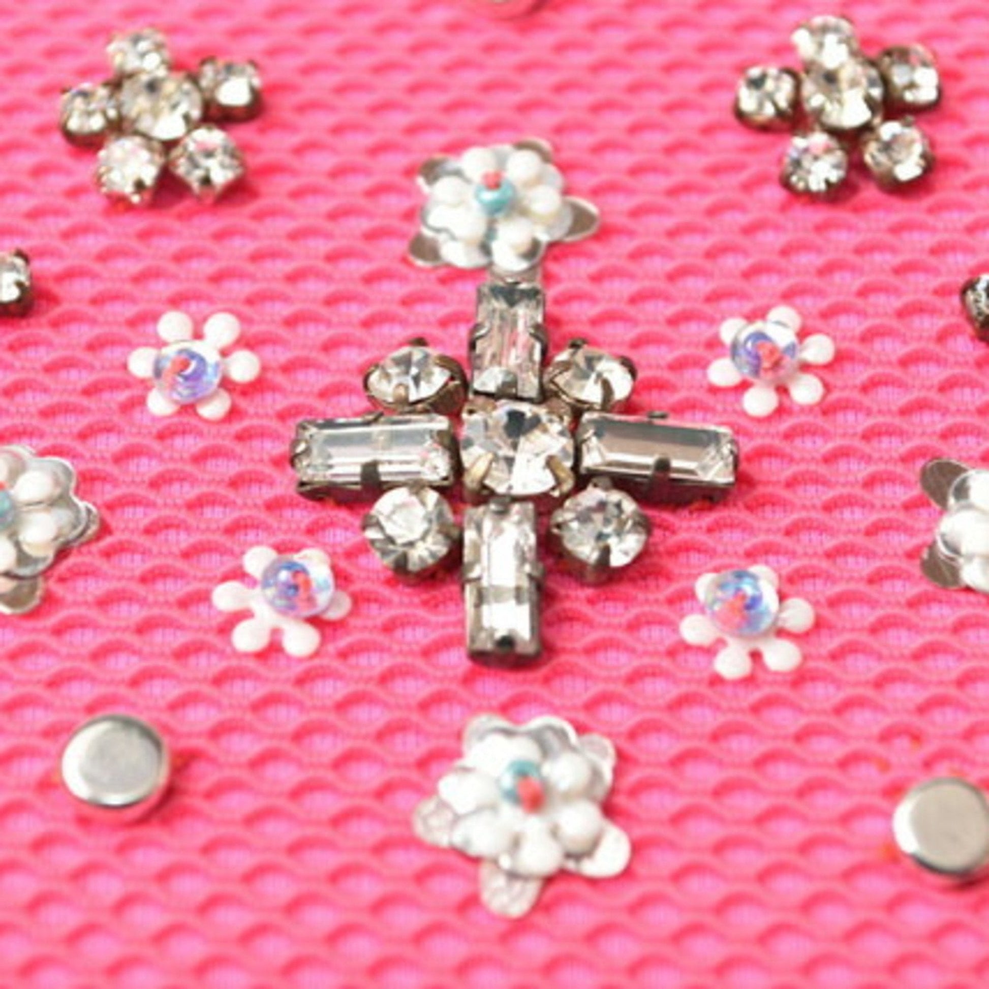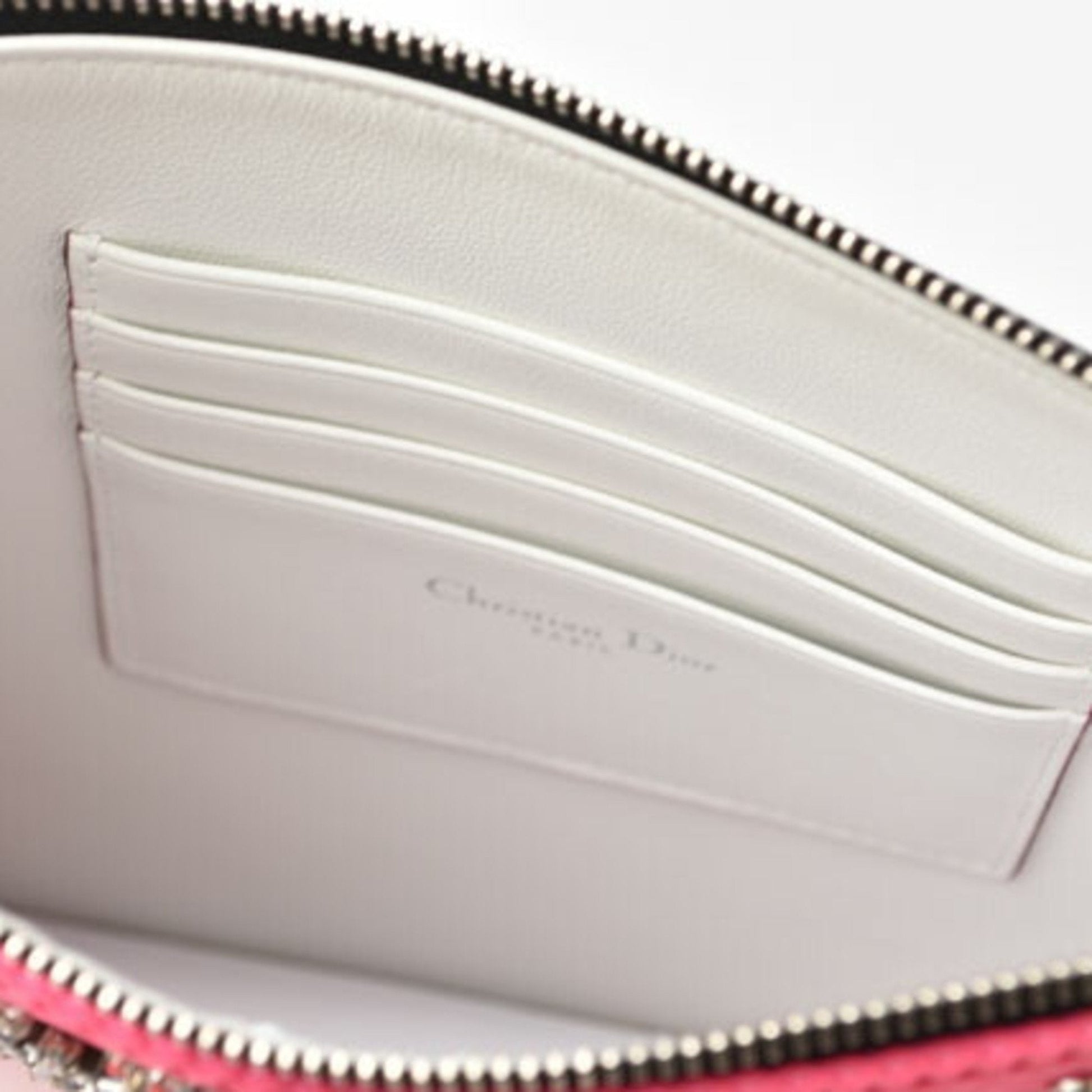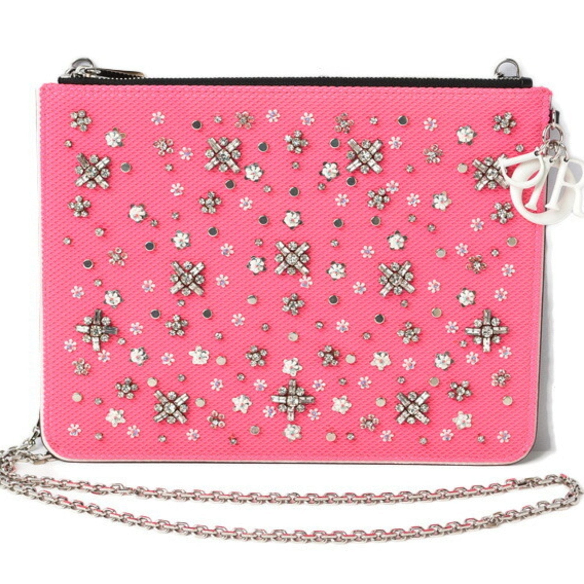Christian Dior Chain Shoulder Bag Clutch Pouch Rhinestone Studs Pink Black
