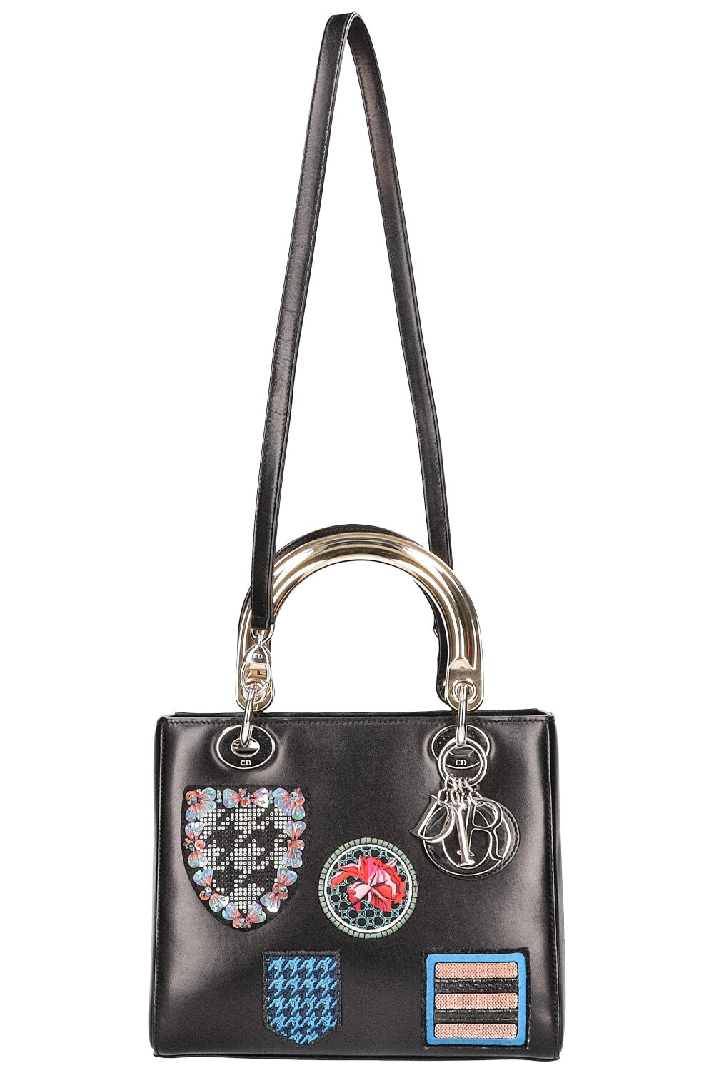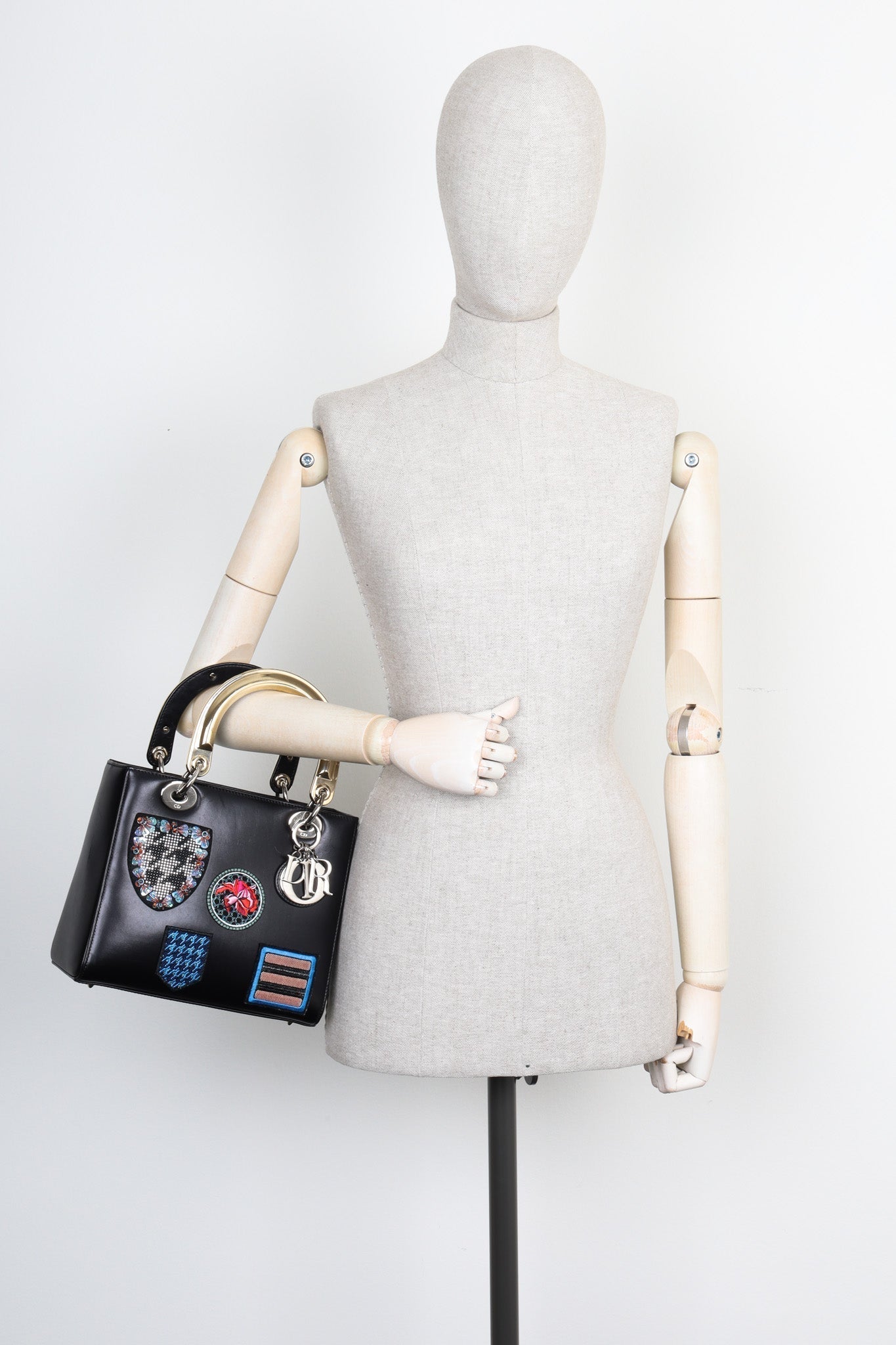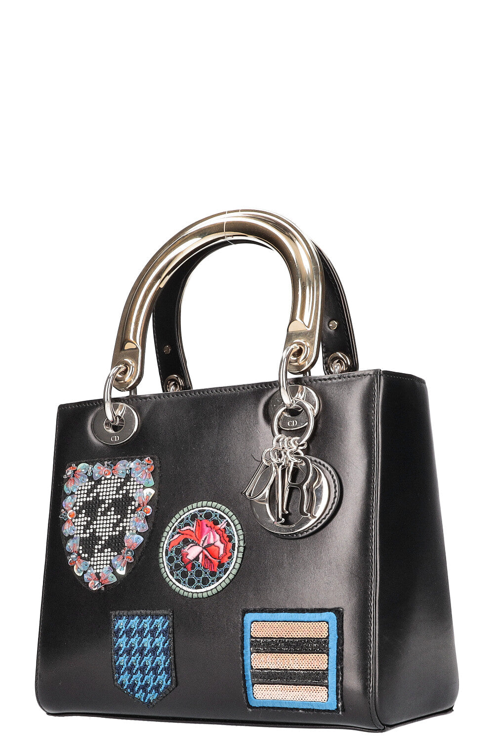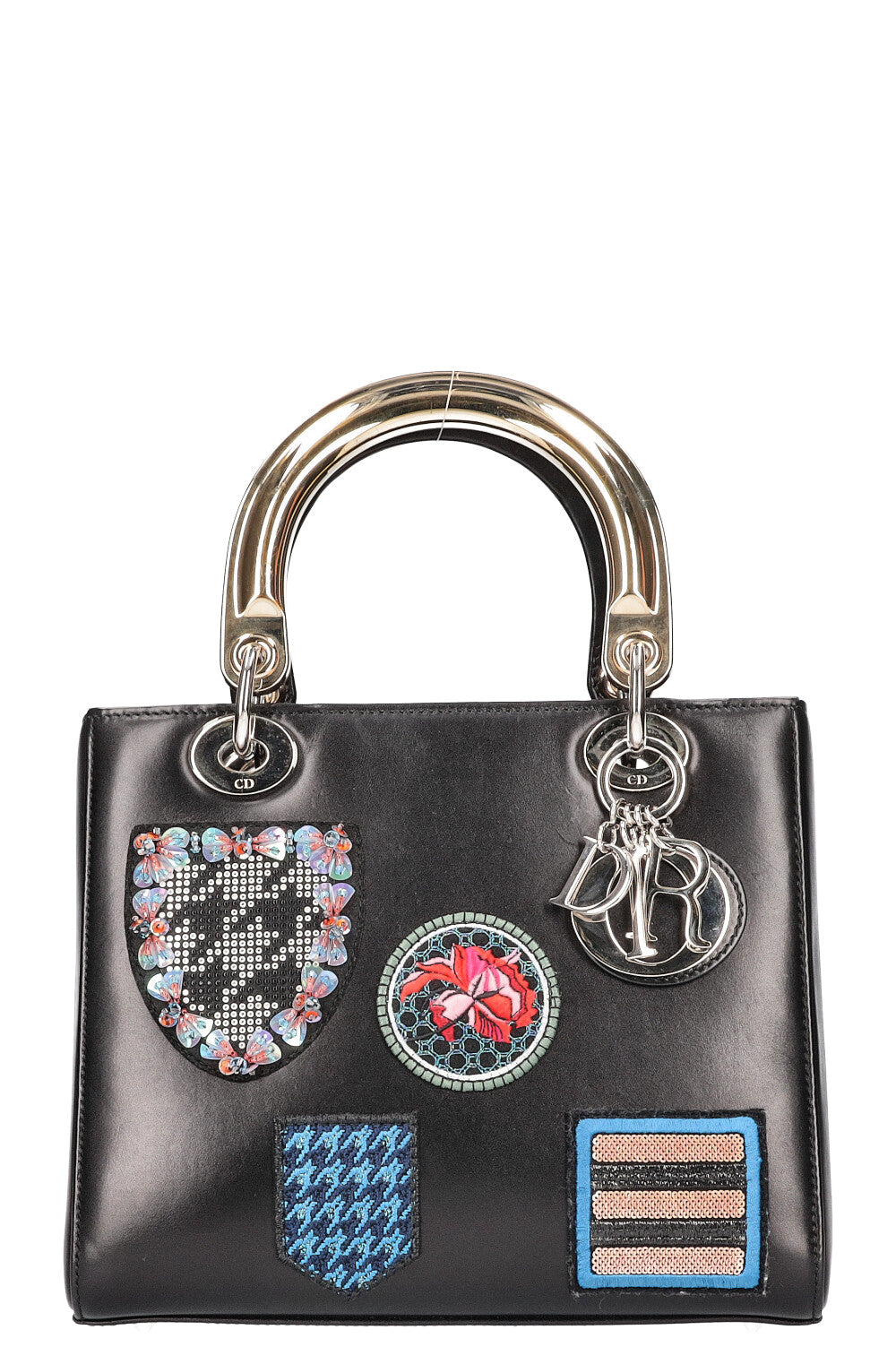 CHRISTIAN DIOR Lady Dior Bag with Embroidery Black